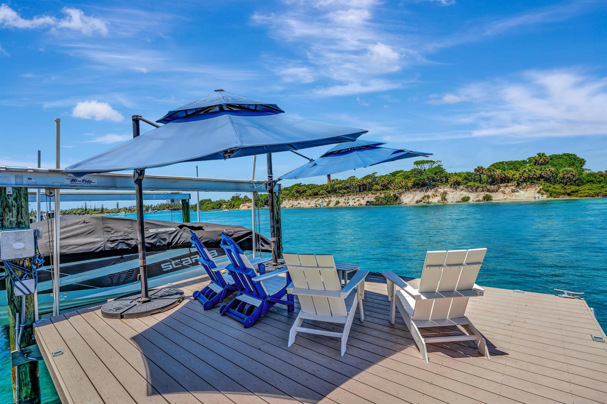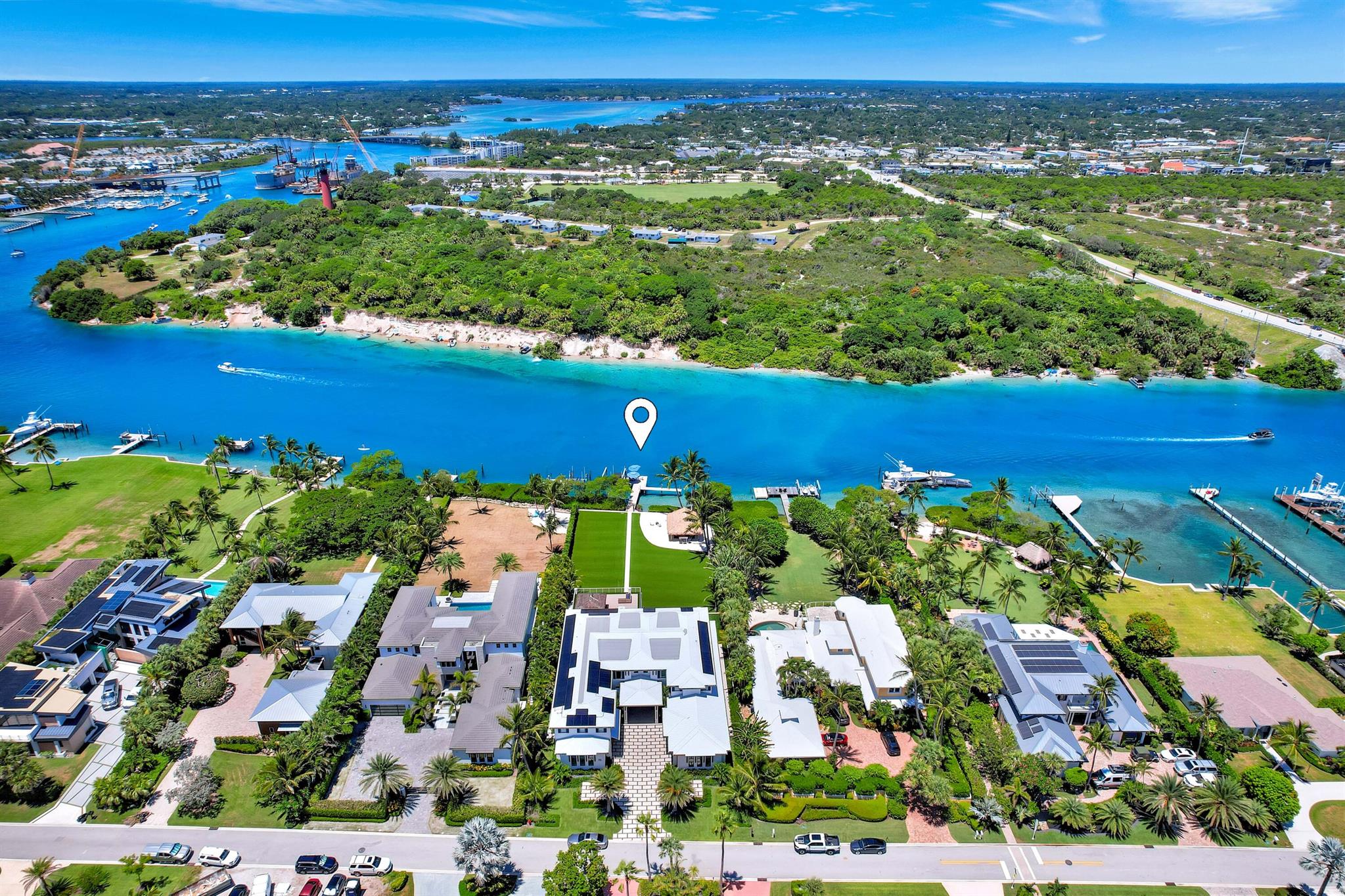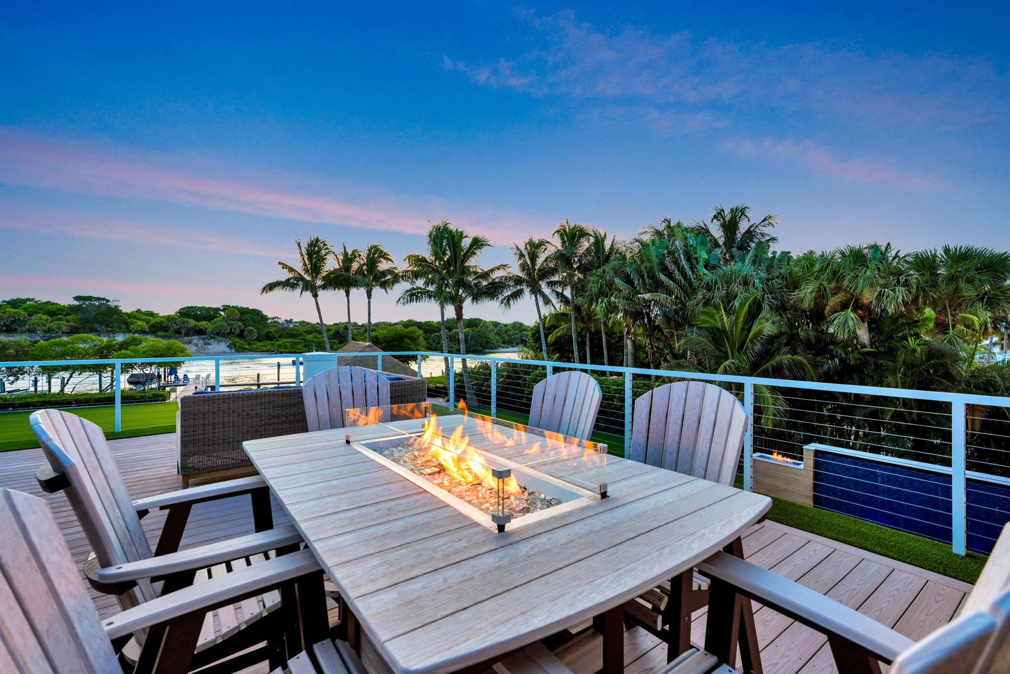 Looking for a waterfront property that checks all the boxes? Welcome to the best of Jupiter Inlet Colony - directly on the crystal clear, blue water of the Intracoastal Waterway, just a few hundred yards from the Jupiter Inlet. This amazing two-story residence, designed by Dennis Rainho of YRA Design Architects, and built in 2023 by Tony Hernandez of High Tide Waterfront Properties, defines today's ultra-luxury real estate for those with an active lifestyle. In fact, the entire property has a solar power back-up system that eliminates the need for a back-up generator. The 3/4 acre lot provides plenty of space for entertainment and relaxation. The pool and spa have unique features like a waterfall spillway from the 2nd floor deck, custom fire bowls, and a stepping stone bridge to the