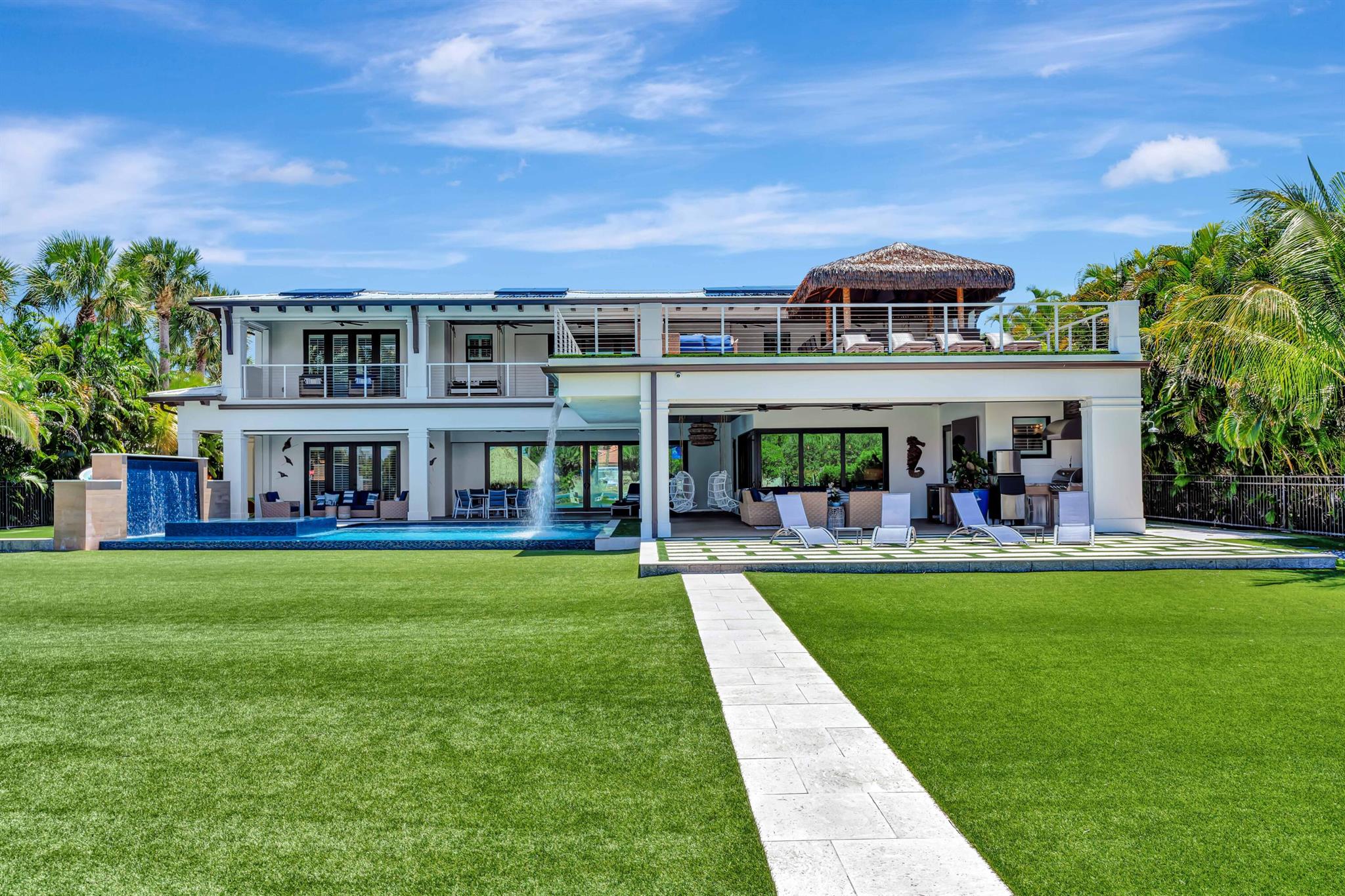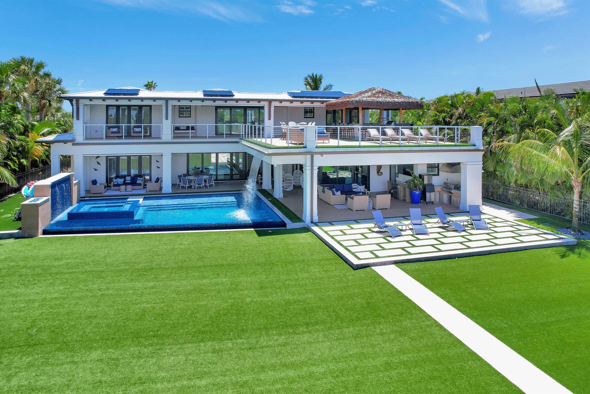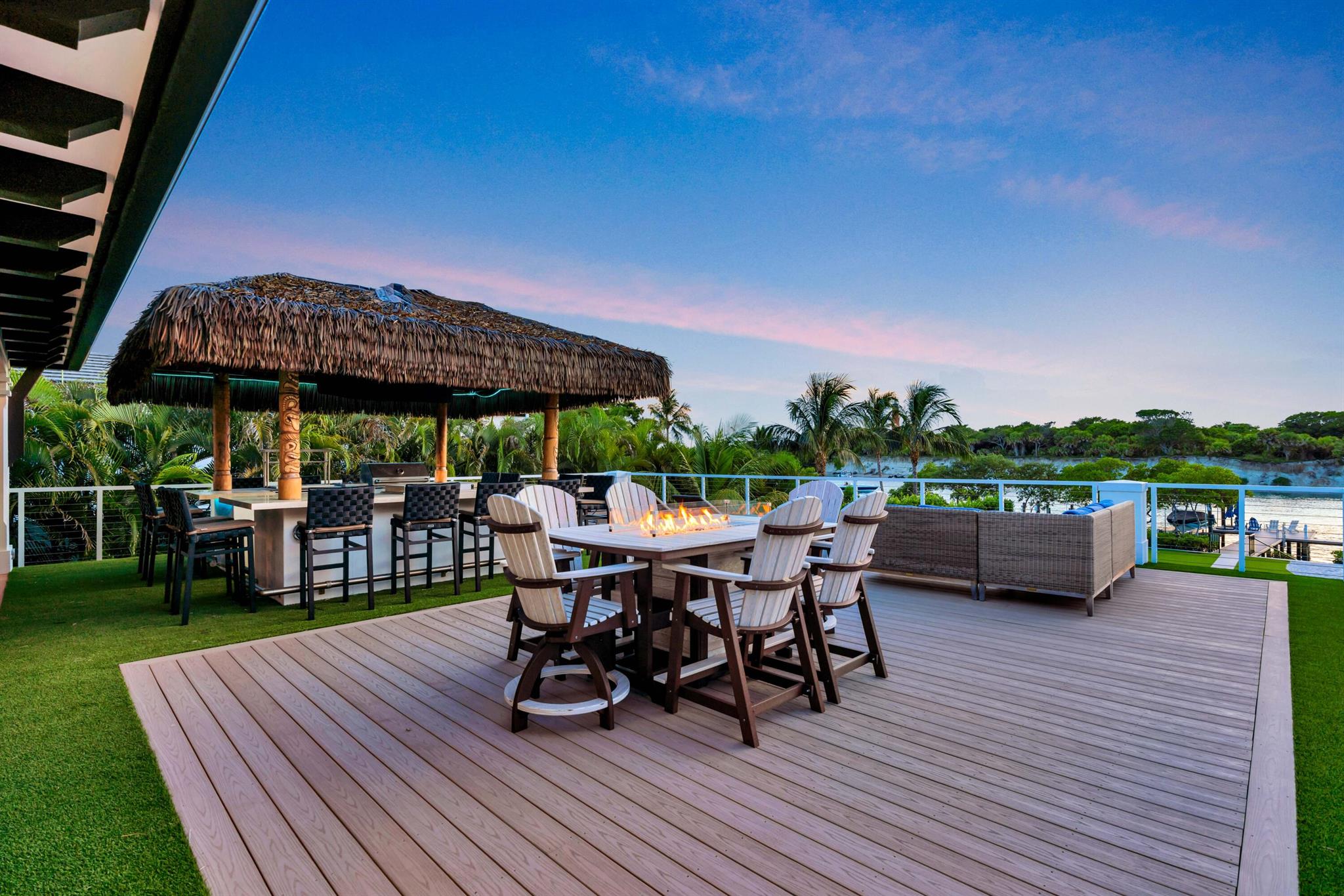 Looking for a waterfront property that checks all the boxes? Welcome to the best of Jupiter Inlet Colony - directly on the crystal clear, blue water of the Intracoastal Waterway, just a few hundred yards from the Jupiter Inlet. This amazing two-story residence, designed by Dennis Rainho of YRA Design Architects, and built in 2023 by Tony Hernandez of High Tide Waterfront Properties, defines today's ultra-luxury real estate for those with an active lifestyle. In fact, the entire property has a solar power back-up system that eliminates the need for a back-up generator. The 3/4 acre lot provides plenty of space for entertainment and relaxation. The pool and spa have unique features like a waterfall spillway from the 2nd floor deck, custom fire bowls, and a stepping stone bridge to the