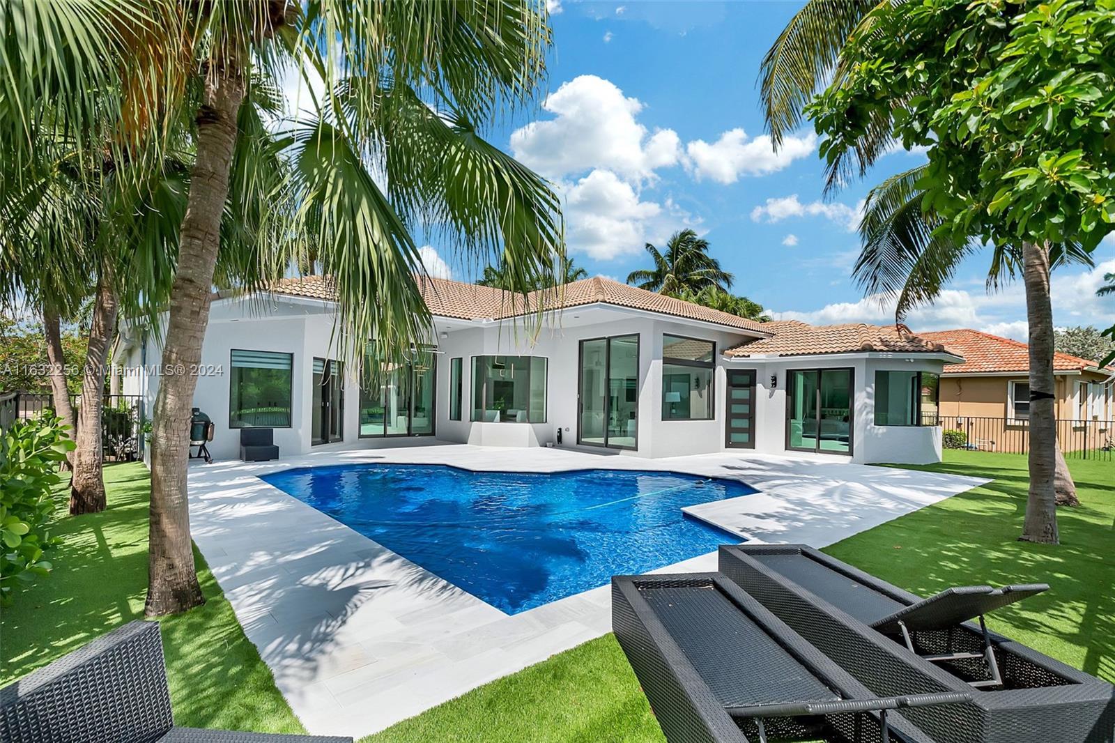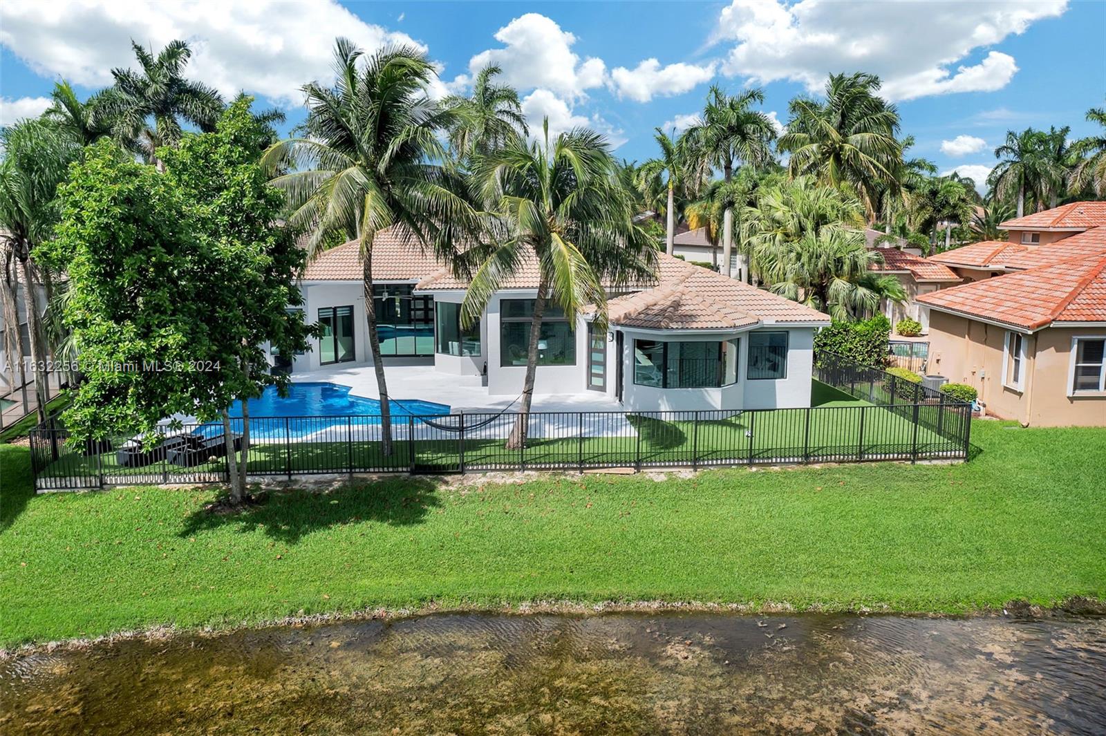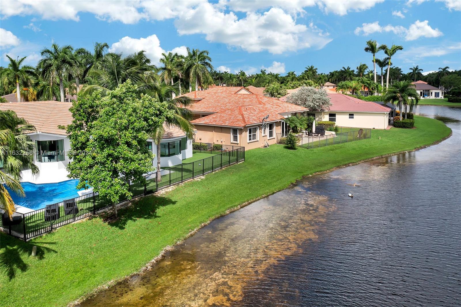 Welcome to your dream home in Weston Hills! This luxurious 6-bedroom, 5-bathroom residence, including 2 opulent master suites, with over $500,000 in upgrades, an open floorplan, and 48x48 Italian porcelain tiles. The chef's kitchen, equipped with Sub-Zero, Wolf and Cove appliances, and Dekton countertops, flows seamlessly into the living spaces. Enjoy serene lake views from your newly remodeled heated pool with a salt chlorinator, and the highest quality materials. New air conditioners and vents ensure optimal comfort year-round. All IMPACT windows and doors add security and style. ROOF 2008. With 8-foot door thresholds, High-end ceiling fans and other premium touches elevate the elegant ambiance. This home is perfect for families seeking luxury and functionality.