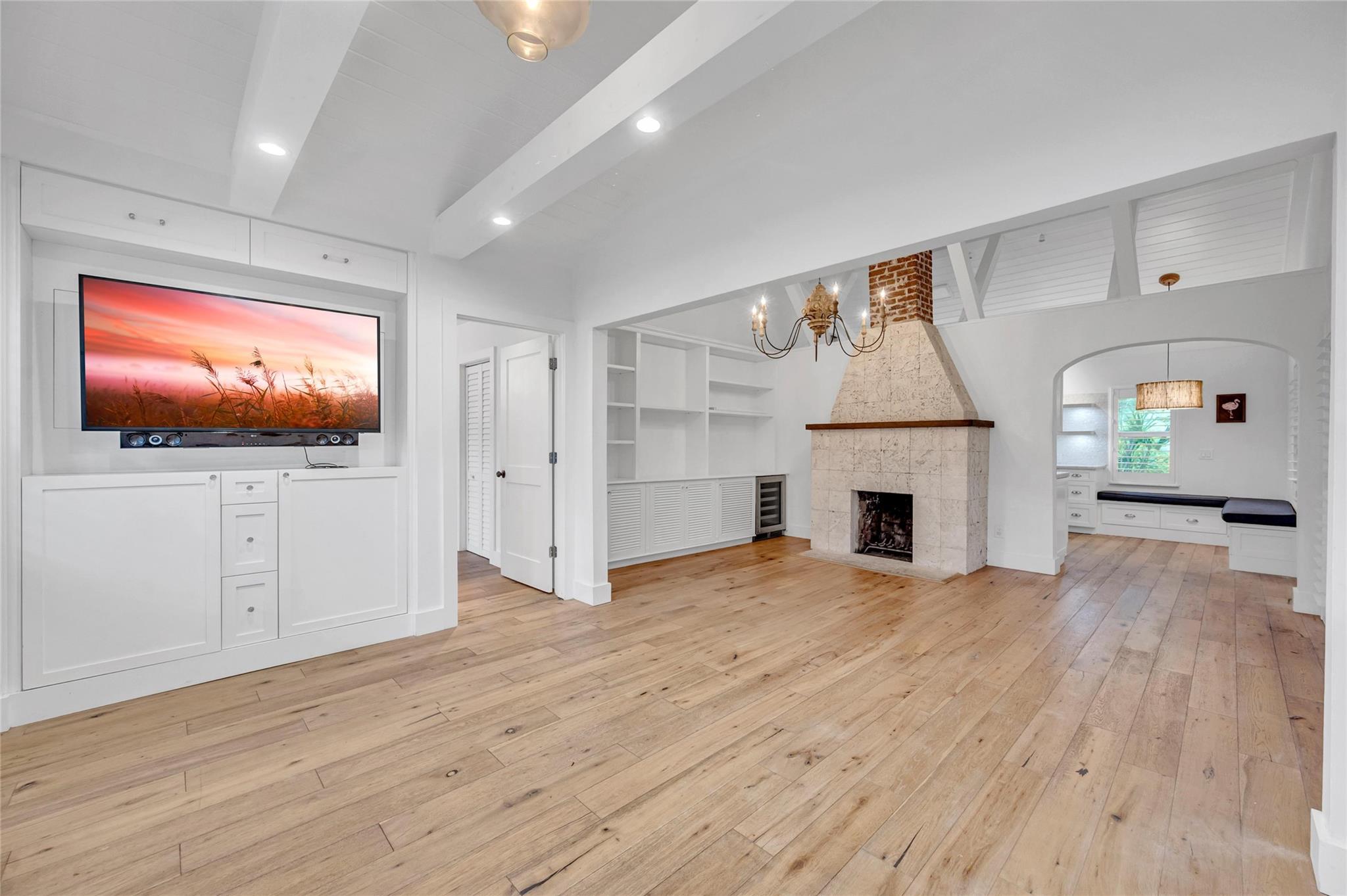 Renovated and extremely private Victoria Park pool home will have you feeling as if you are constantly on vacation in a tropical urban Utopia! Acutely-designed, split bedroom floor plan maximizes functionality by offering: a family room with an abundance of natural light and windows overlooking a chilled & heated salt-water pool; a den/sitting room w/amazing ambiance (and future amazing conversations!) thanks to a wood burning fireplace and impressive built-in bookcase; and a modern kitchen w/SS appliances, quartzite counters, cabinetry w/multiple pull-outs and a corner banquette for dining! Impact glass throughout and a metal roof provide additional peace of mind during storm season. But wait...there's more! An air-conditioned attic large enough to stand up and move around!