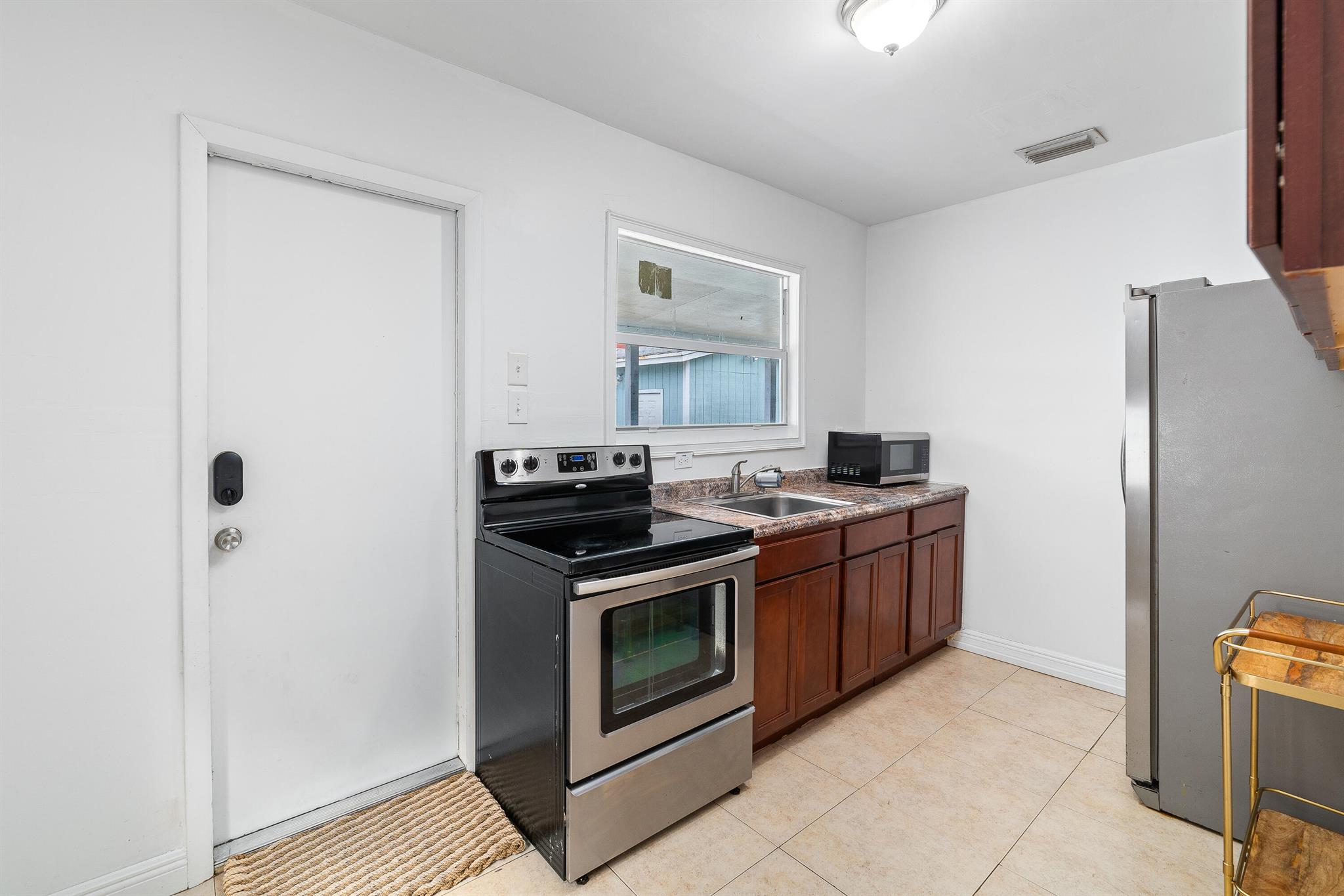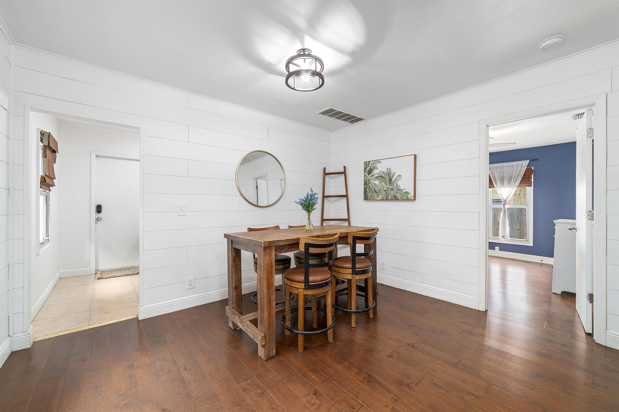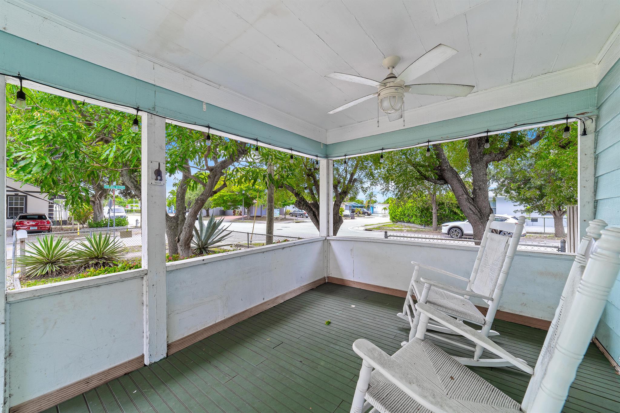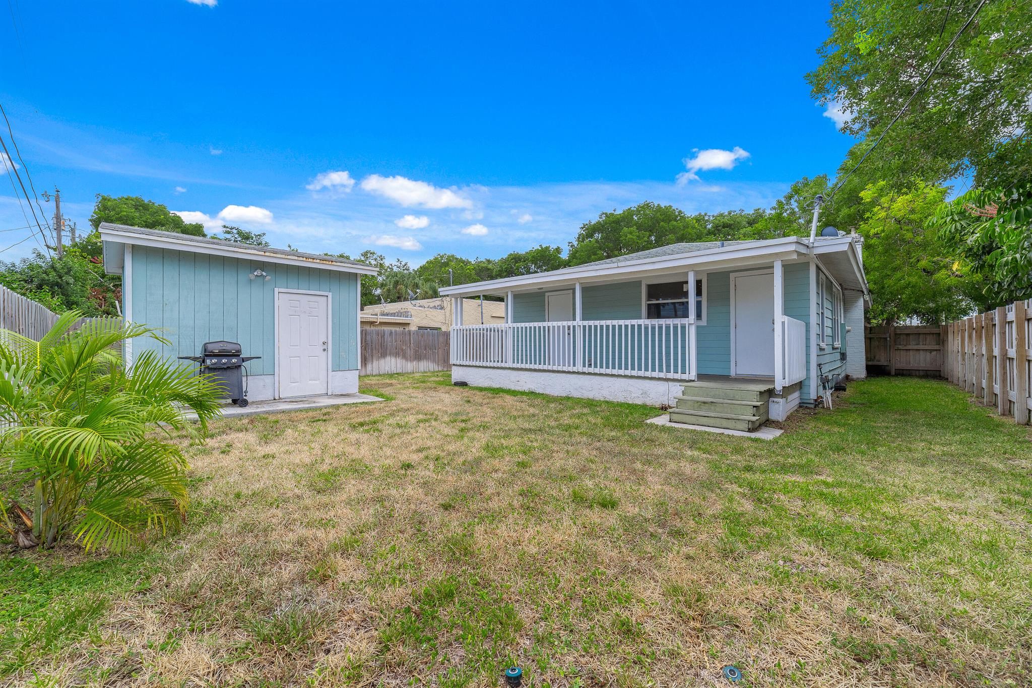 Experience the charm of this delightful 2-bedroom, 1-bathroom Key West-style home, ideally situated between Flamingo Park, El Cid, Prospect Park, and north of SoSo, with no HOA fees! Relax on the inviting front porch, complete with a swing, or enjoy the open, modern interior featuring shiplap accents, a newly remodeled bathroom, and a generous mudroom. The expansive wooden back porch and fully fenced yard offer plenty of space, including a bonus storage shed. The side yard includes a car gate, providing convenient parking for a boat or RV. Located within walking distance of Antique Row and the Intracoastal, and just minutes from Downtown West Palm and the beach, this home is perfect for all ages or investors seeking a blend of modern amenities and prime location in West Palm Beach.