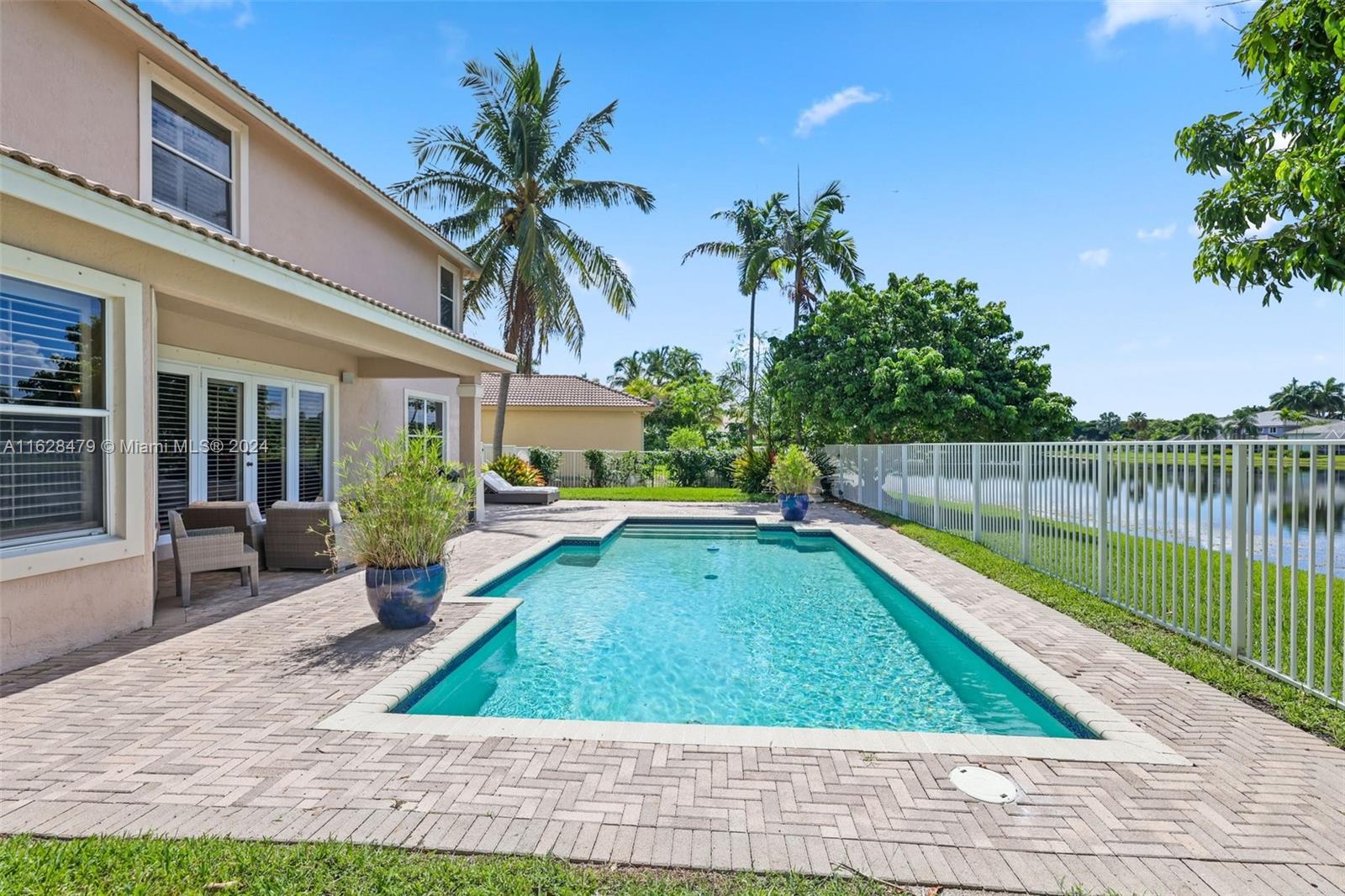 This elegant two-story home in the prestigious Weston Hills Country Club features 6 bedrooms Plus den, 5 bathrooms, and a 2-car garage. The residence includes a living room, separate dining area, breakfast nook, and a first-floor bedroom. Enjoy a spacious private garden with a pool and lake view, perfect for entertaining. Situated in a gated community with two golf courses and several parks. The neighborhood is served by top-rated schools. Club membership is optional.