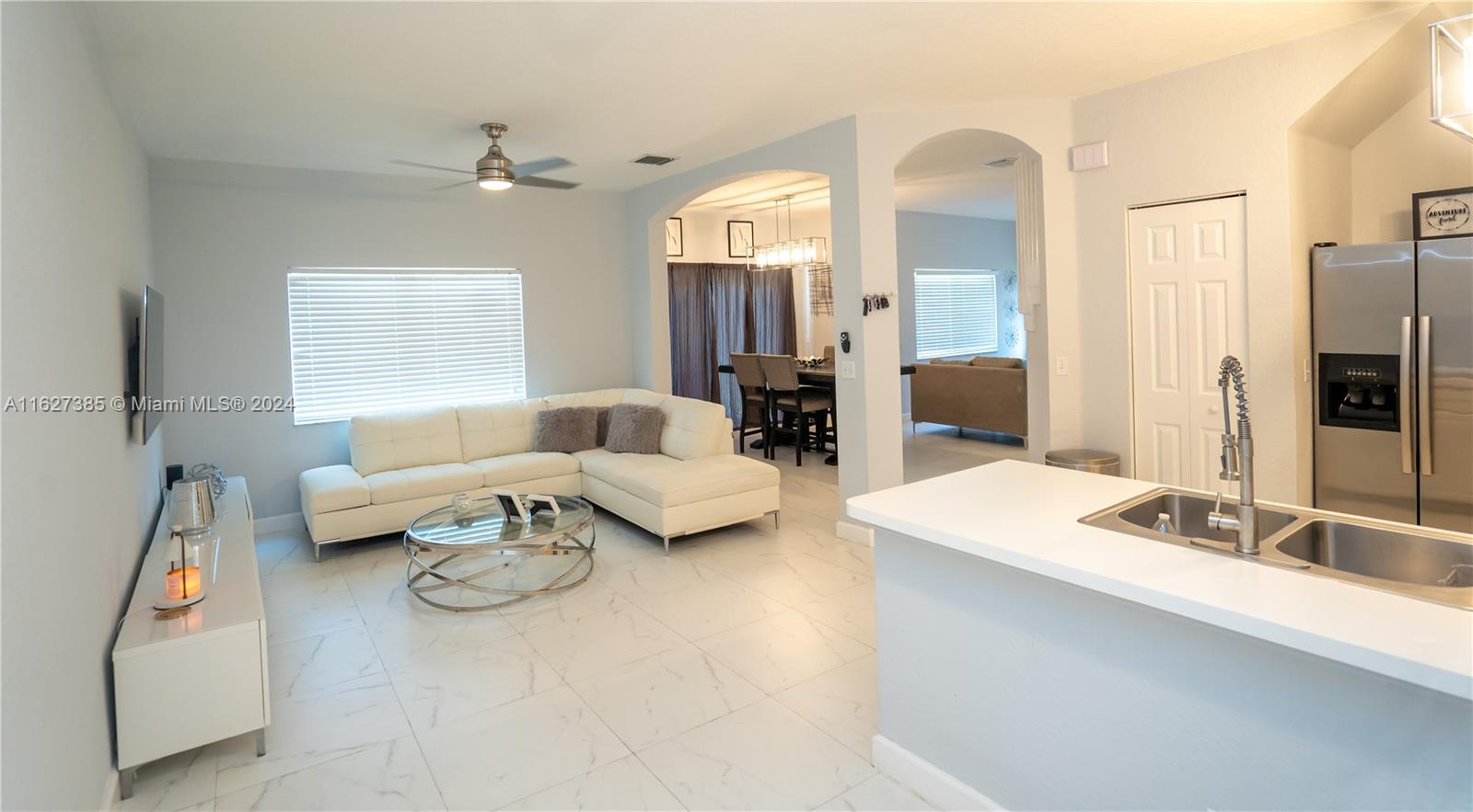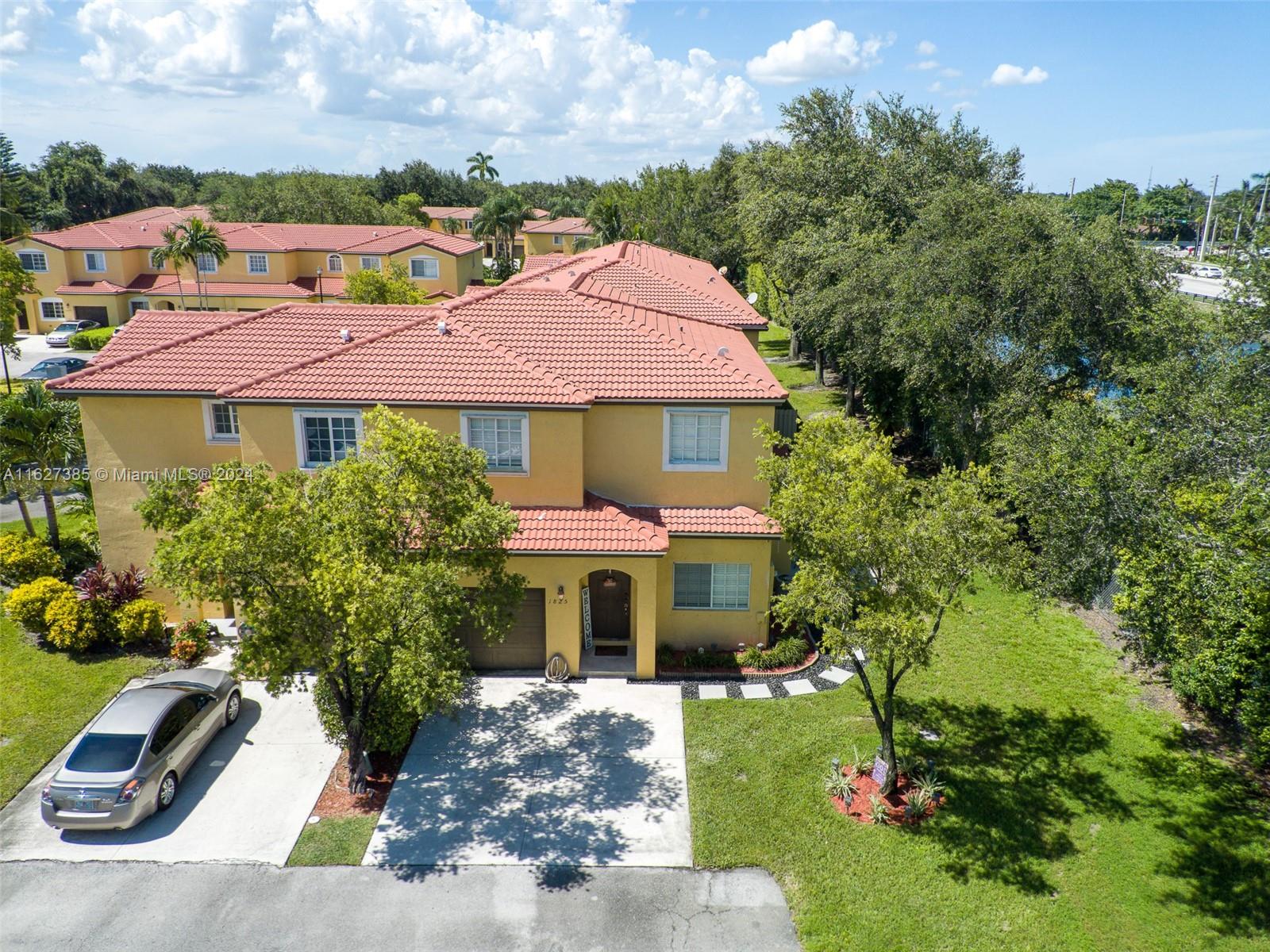 Welcome Home!!.. Corner lot townhouse in the desirable community of Avalon in Miramar. This property offers 3 bedrooms, 2.5 bathrooms and a loft, upgraded bathrooms, new tile floors installed throughout, inside A/C unit was replaced in 2023, tankless water heater replaced in 2024, two pantries, 1 car garage plus extra parking space, concrete patio added for convenience, LOW HOA fees, this is a pet friendly gated community with 24 hours security. Close to shopping centers, parks, major highways for easy commuting, schools and so much more.