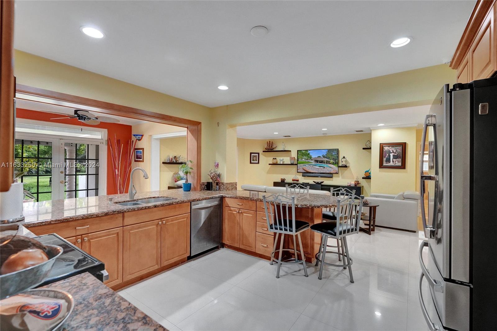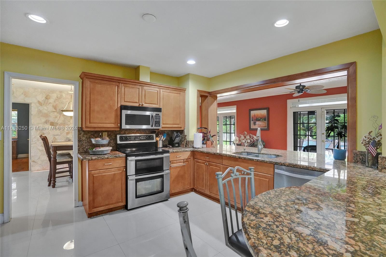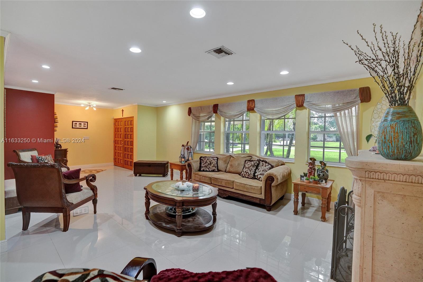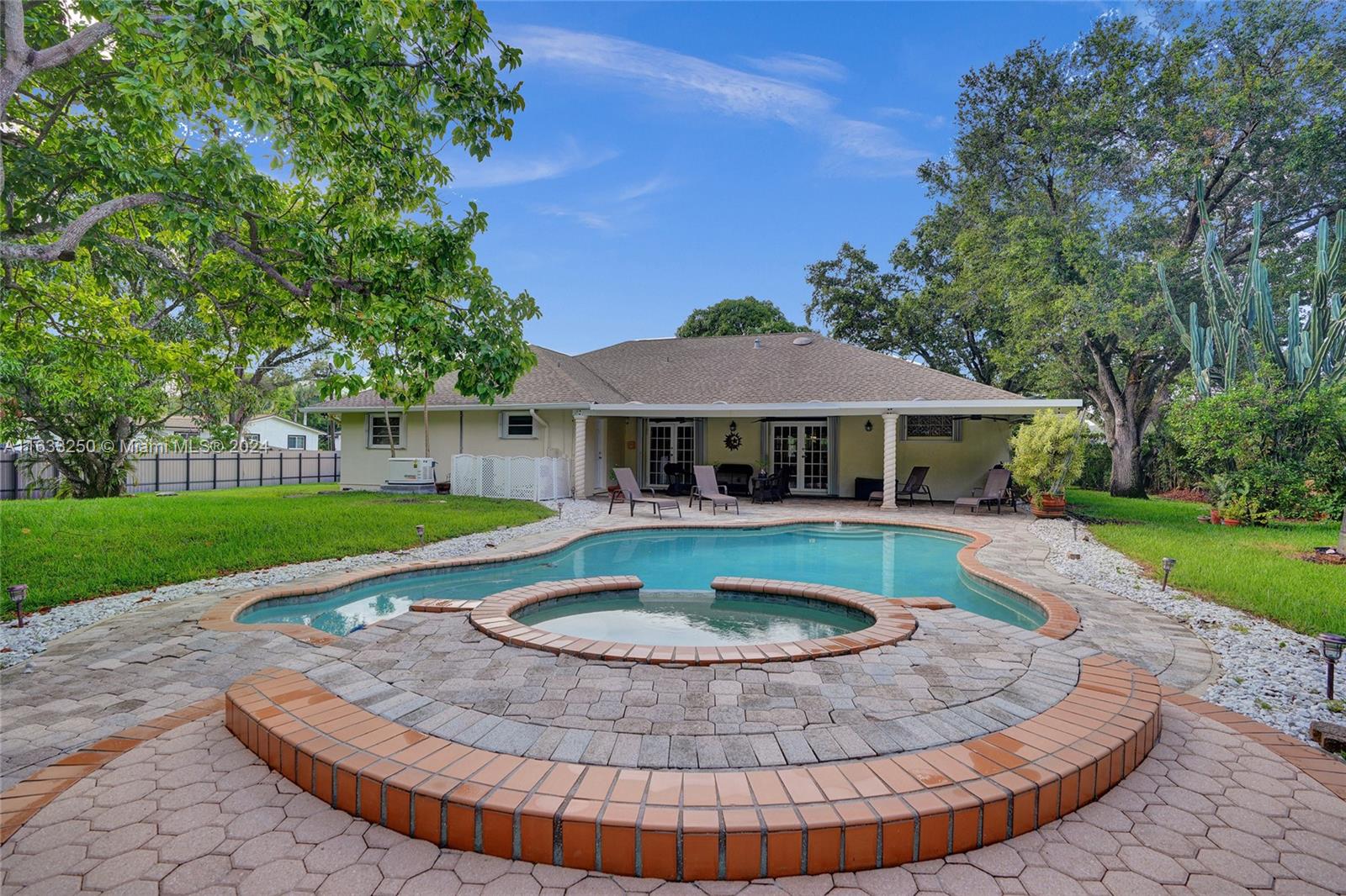 Paradise in Southwest Ranches! Magnificent 3bed/3bath+office pool home, 4 CAR GARAGE on a private road now available! This tropical oasis sits on an acre of land with fruit trees, a Koi pond, and lush landscaping. This stylish home offers an open-concept kitchen complete with top-of-the-line S/S appliances. Floors are of Porcelain throughout, classic design, with a split floor plan. Sprawling entertaining space flows outside the sunroom to reveal a stunning pool and tranquil living. Hurricane accordion shutters throughout the house. Some recent updates are: new garage doors, a water heater, water filtration system, a home generator, recent exterior painting completed, and plumbing for the pool See it now before it's gone! HORSES WELCOME! THIS IS A DRY LOT.