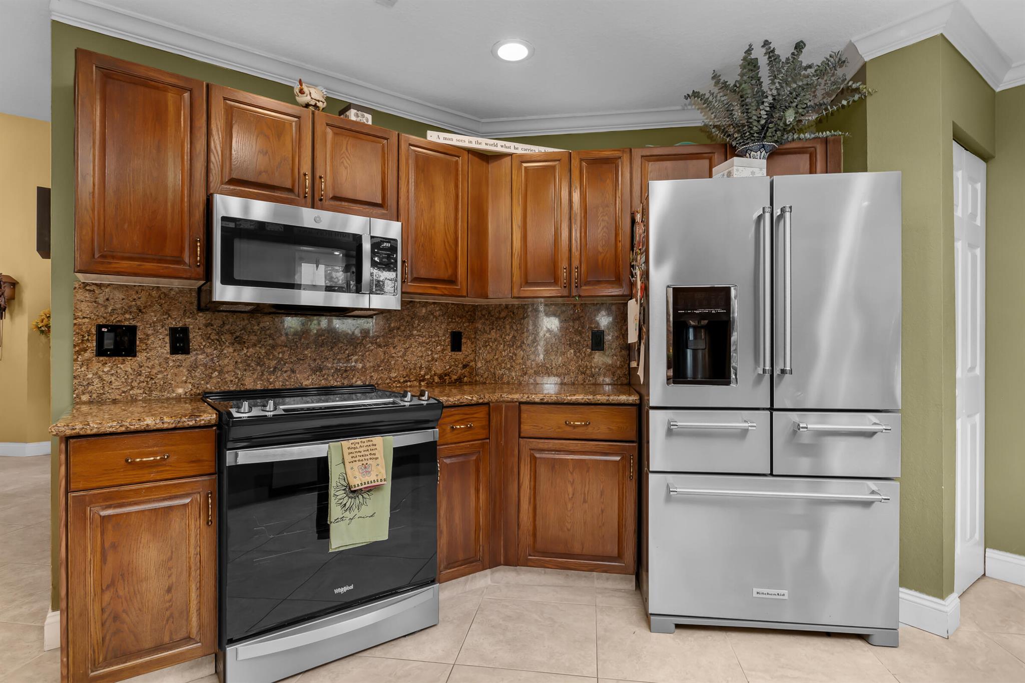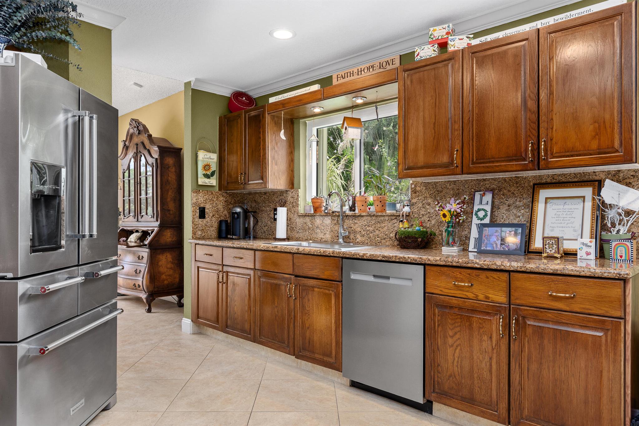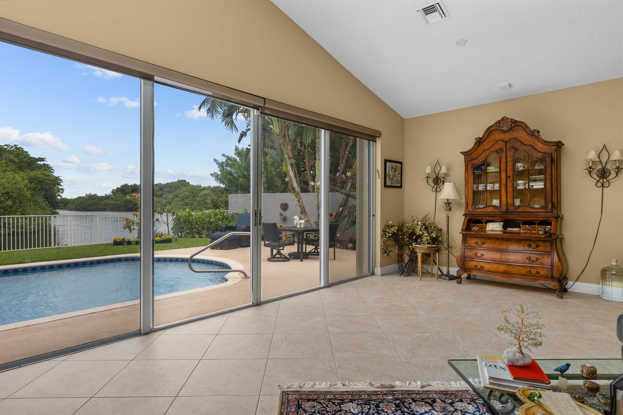 Nature lovers look no further - Exquisite mature landscaping is the front drop to a magnificent natural unspoiled lakeview in Mission Bay. This single owner home has been remarkably cared for. Walk into the home and you are immediately confronted with the view of the pool, creative landscapes, the lake and nature preserves. Vaulted ceilings and many windows create this light and bright home with electric window treatments. AC replaced 2024, all new deluxe appliances including washer and dryer, pool pump. Partial impact windows with accordions on the remaining windows. Primary suite is on the first floor with a generous bath suite & walk-in closet. Upstairs combined 2 bedrooms to establish a grand size suite with limitless uses along with another bedroom and loft. (see more) i