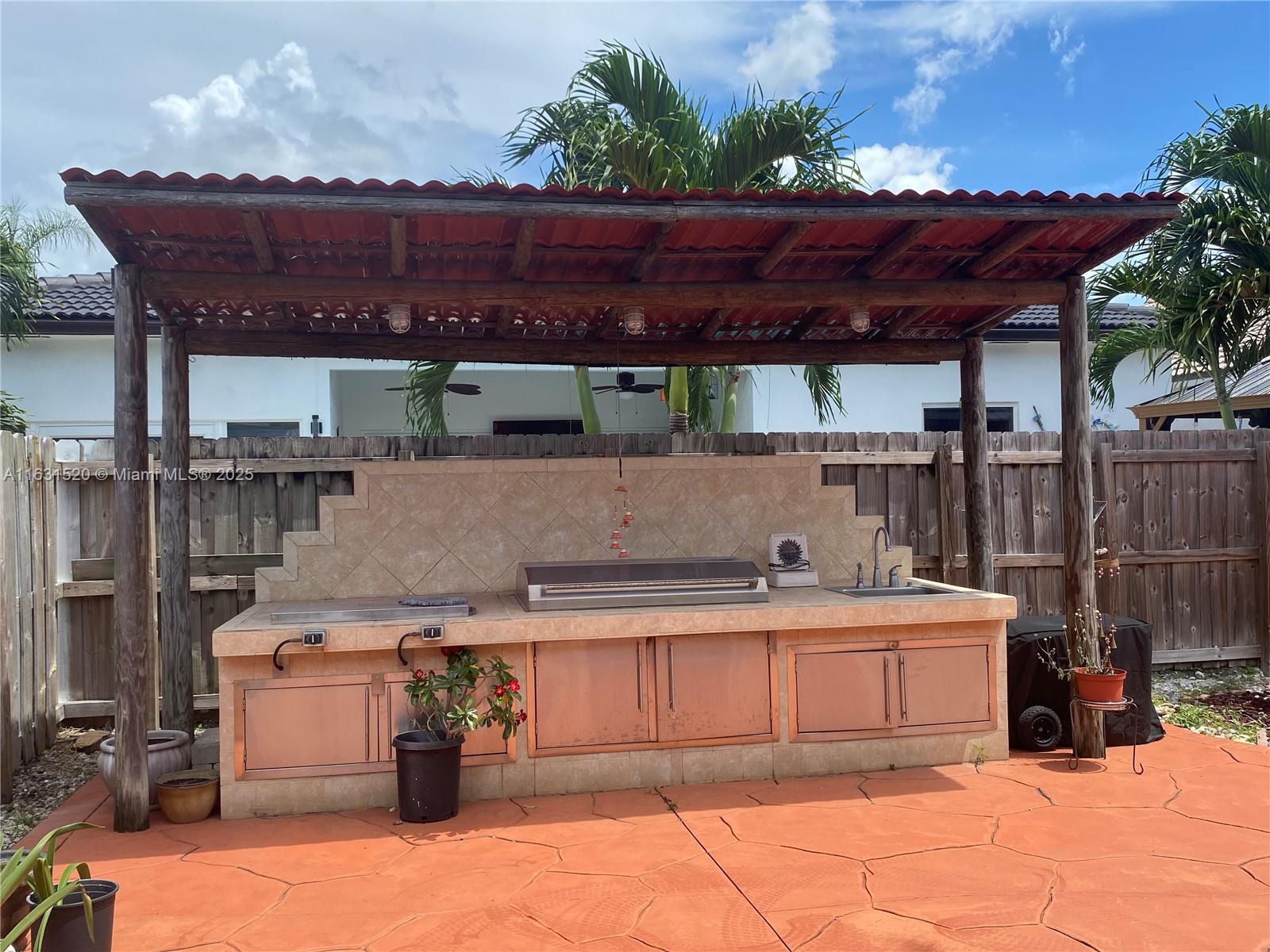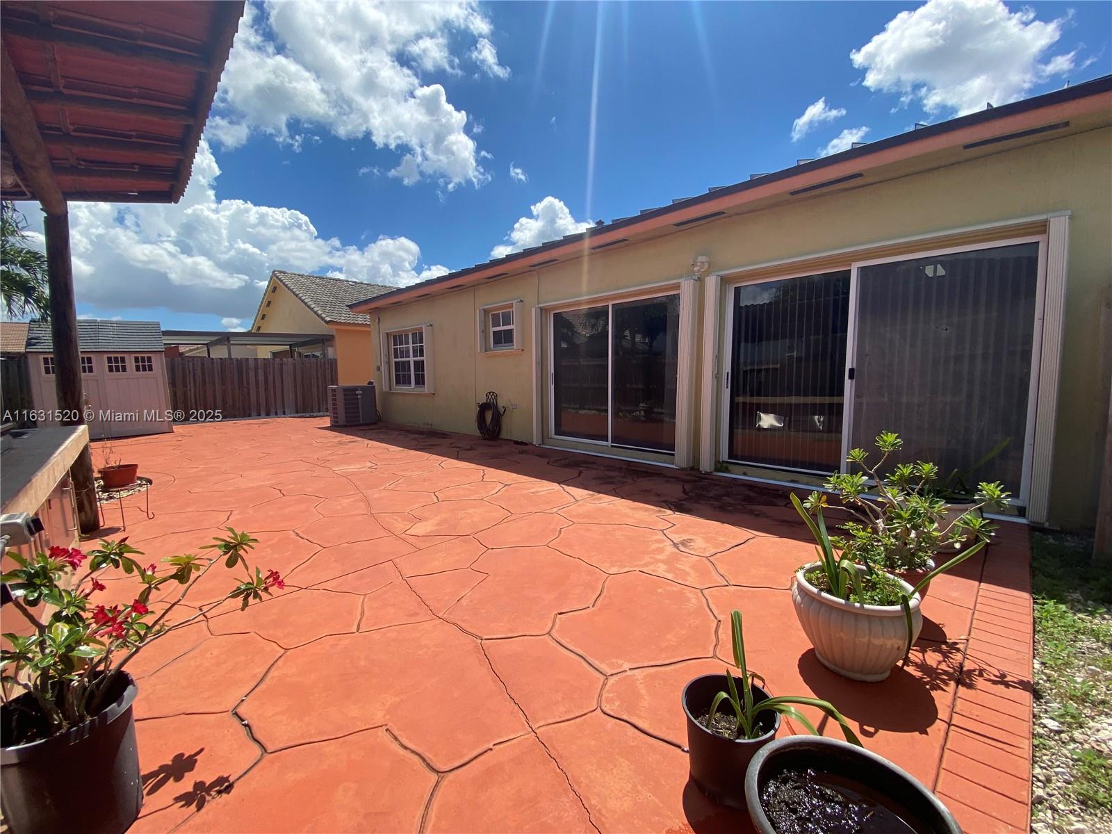 Excellent property.. and.. your opportunity to Own it!! This pristine home offers 3 good size bedrooms, 2 baths, 1 car gar., fam. room, formal living & dining plus that dream backyard for entertaining; all stamped concrete and outdoor grill station, burners, sink & caja china (roasting box). Home features porcelain tile throughout, double pantry in kitchen, granite countertops w/eat in counter and open to a spacious family room filled with natural light - wall to wall sliding glass doors lead to your fenced-in backyard retreat. Extended driveway has double gate, ample parking & vehicle side access. Metal roof is apprx.3 yrs. new - complete set of accordion shutters. Close to shopping, restaurants, banks, schools, I-75 & turnpike. No HOA! Reasonable offers are welcome!
