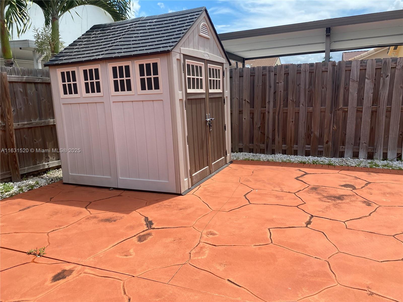 • Característica exterior:Fence, Lighting, OutdoorGrill, Porch, Patio, Shed, StormSecurityShutters