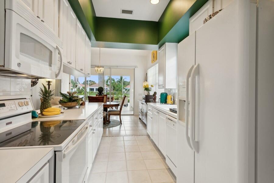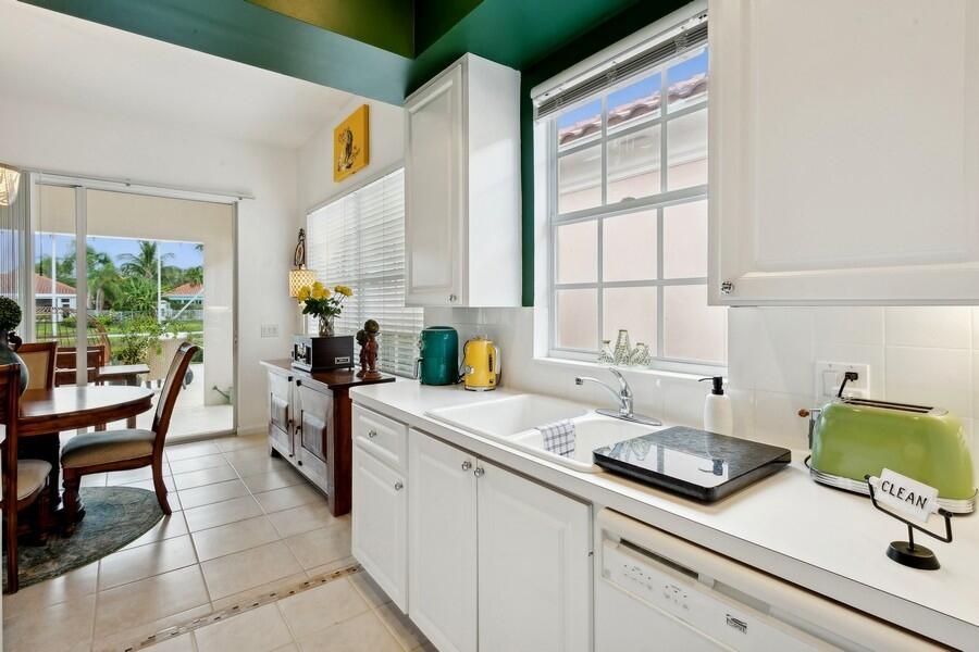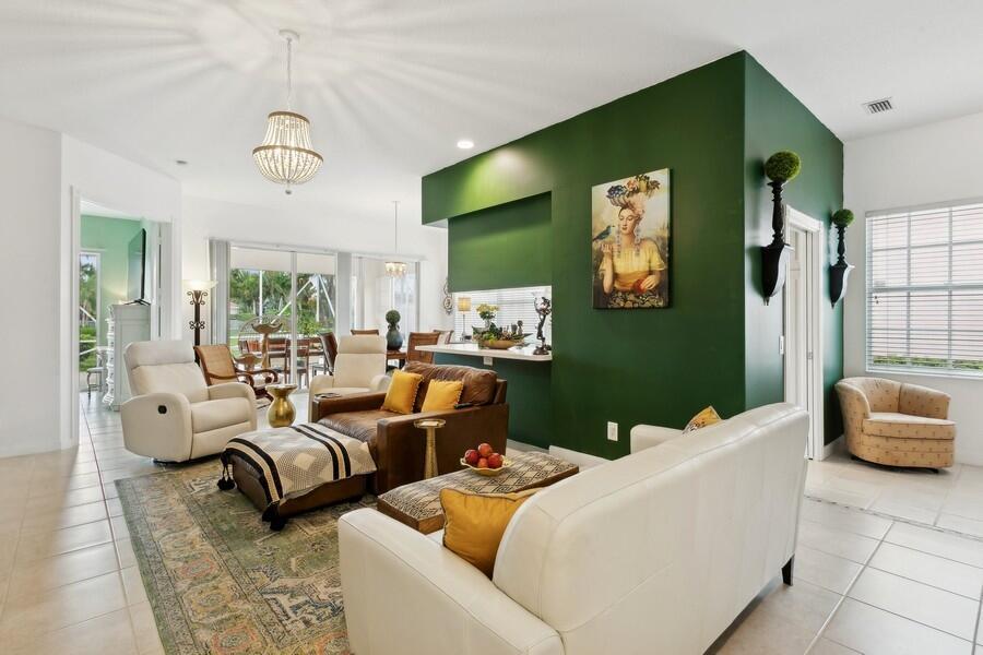 This Sparkling Gem is Set on an Extra Wide & Deep Lakeside Parcel & that's Just one Aspect of this 2 Bath, 3 Bedroom Freshly Painted Glenwood Model (a single family home) that makes it a must See! In Riverwalk a 5 Star Resort Style Community, Located in the Heart of Palm Beach County, close to Everything, including the Ocean which makes it a Fantastic Place to Live! The Excitement begins with a Tropically Planted Lawn leading to an Inviting Screened Entry that Opens to the Gracious, Large Foyer with a Ceramic Tile Floor (as do the Great Room, Dining Area, the Kitchen, the 3 Bedrooms & the Entire Rest of the Residence!)with a Sun Drenched Window that leads to the Spacious Great Room with a Gorgeous Designer Chandelier & the Dining Area with a 2nd Matching Chandelier, a Large Window & Wall