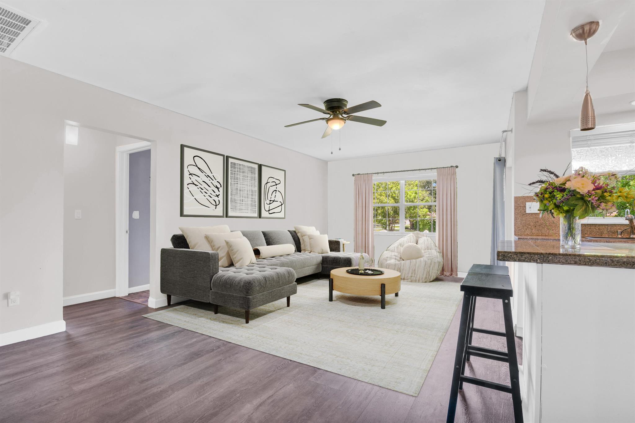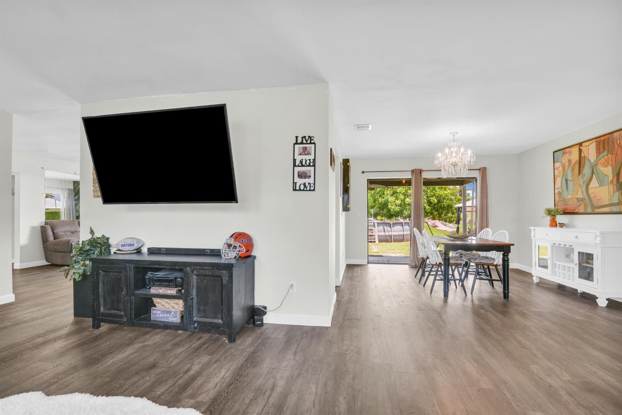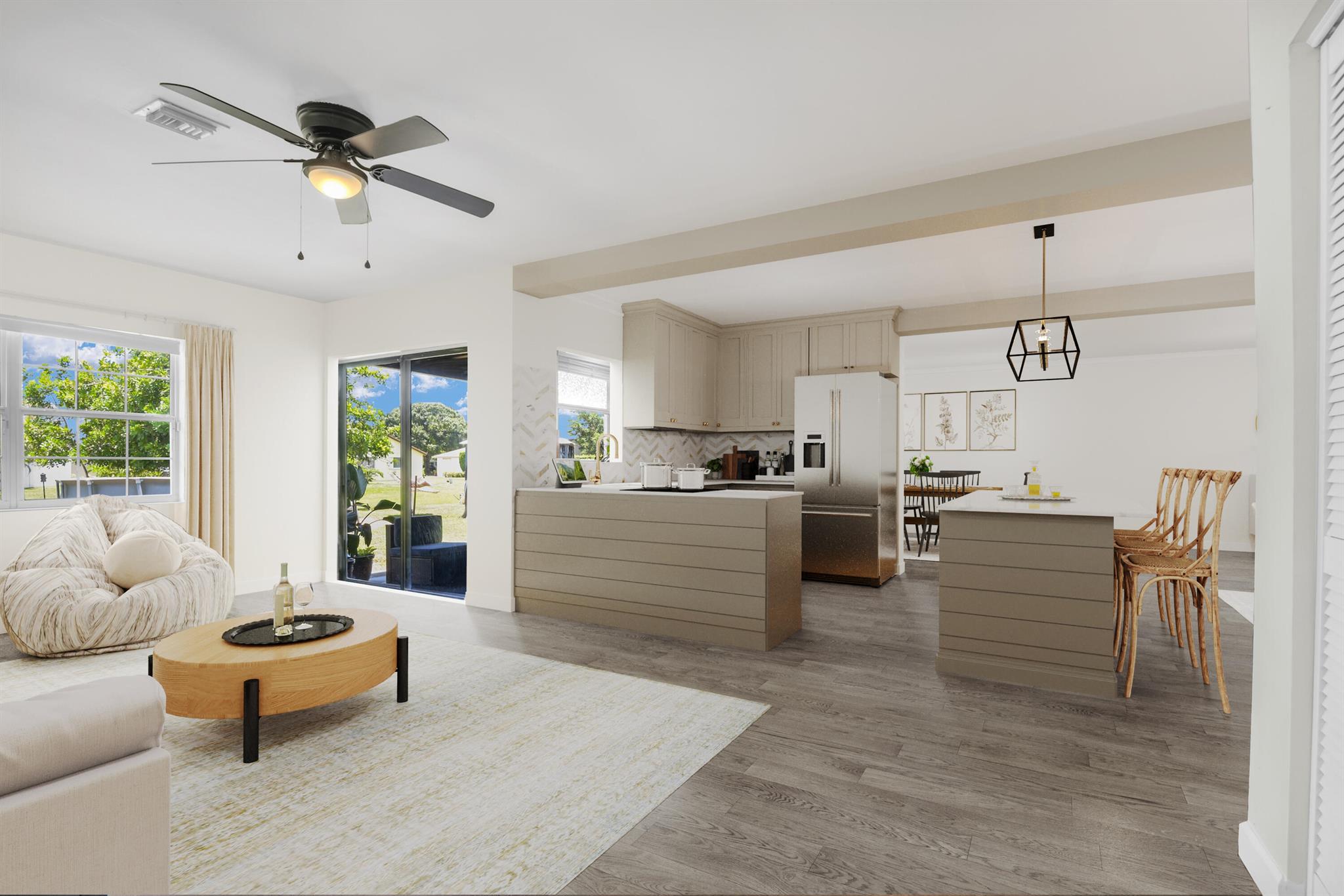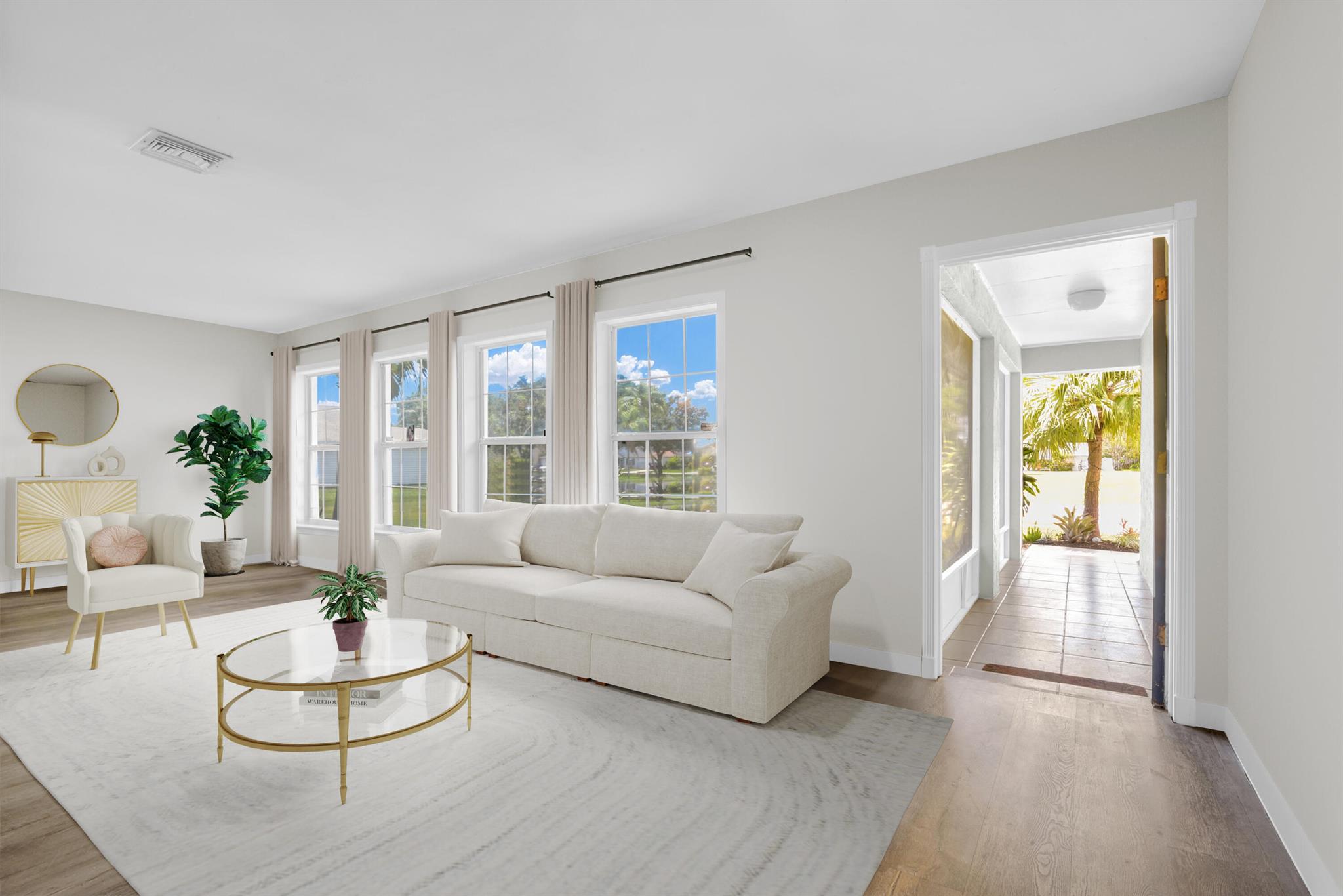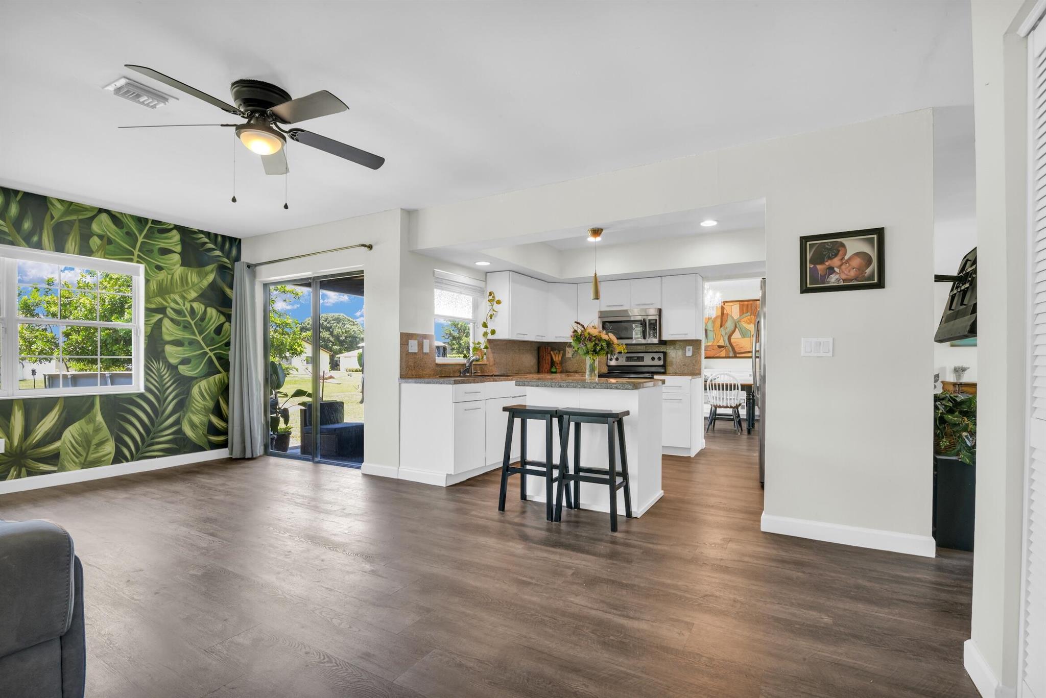 This recently remodeled, beautiful 3/2 ranch home with brand new luxury vinyl floors throughout has it all: gorgeous long lake views, a light filled floor plan, tons of outdoor space (oversized CORNER lot with +17,000 sf and firepit) to entertain, play, swim, fish, park your boat or your RV. Enjoy peace and tranquility at the end of a cul-de-sac street, with lots of privacy and peace! If you're looking for a professionally designed, sweet escape just minutes from the beach and downtown West Palm - then this could be it! Make this your dream home.