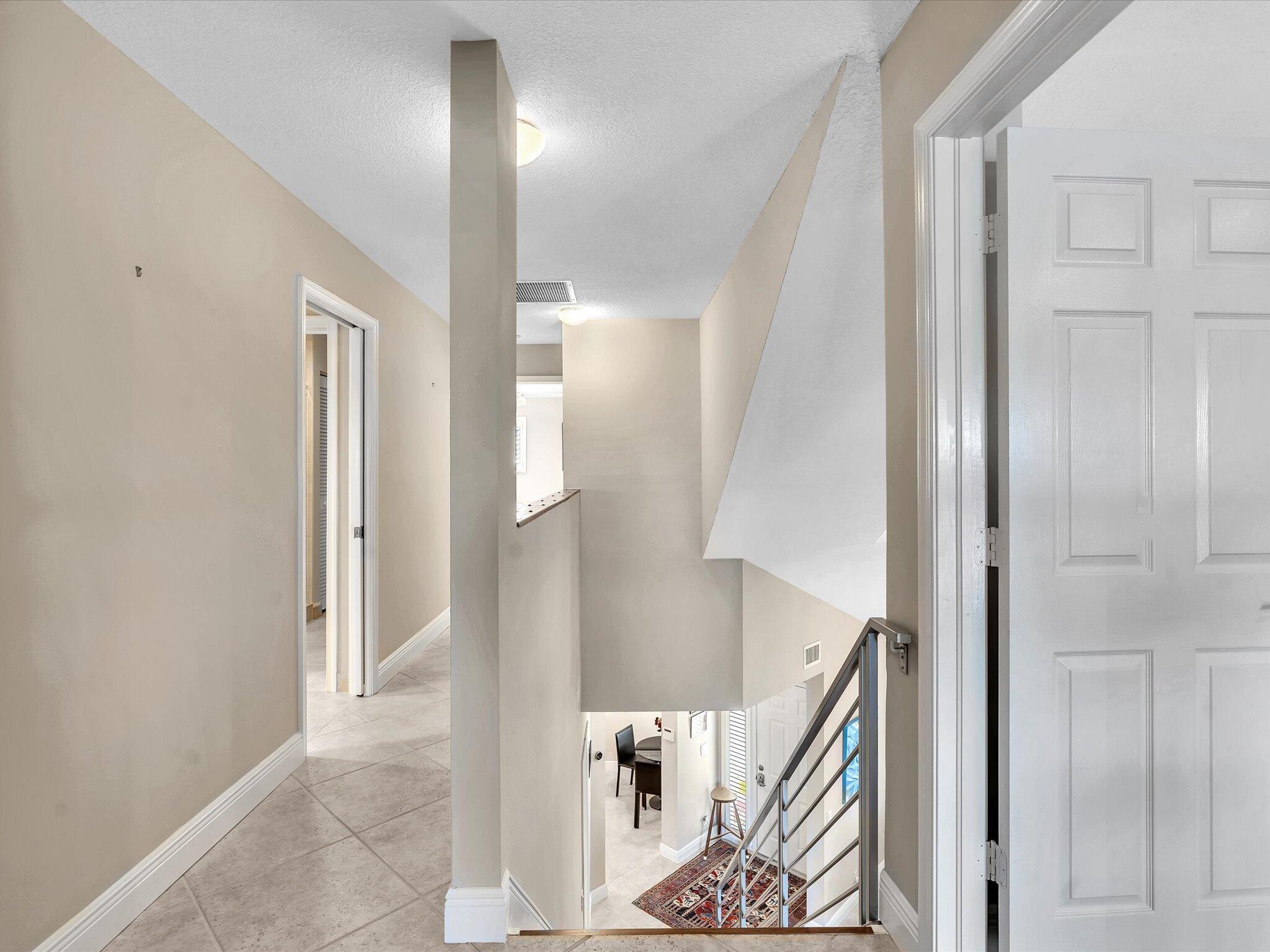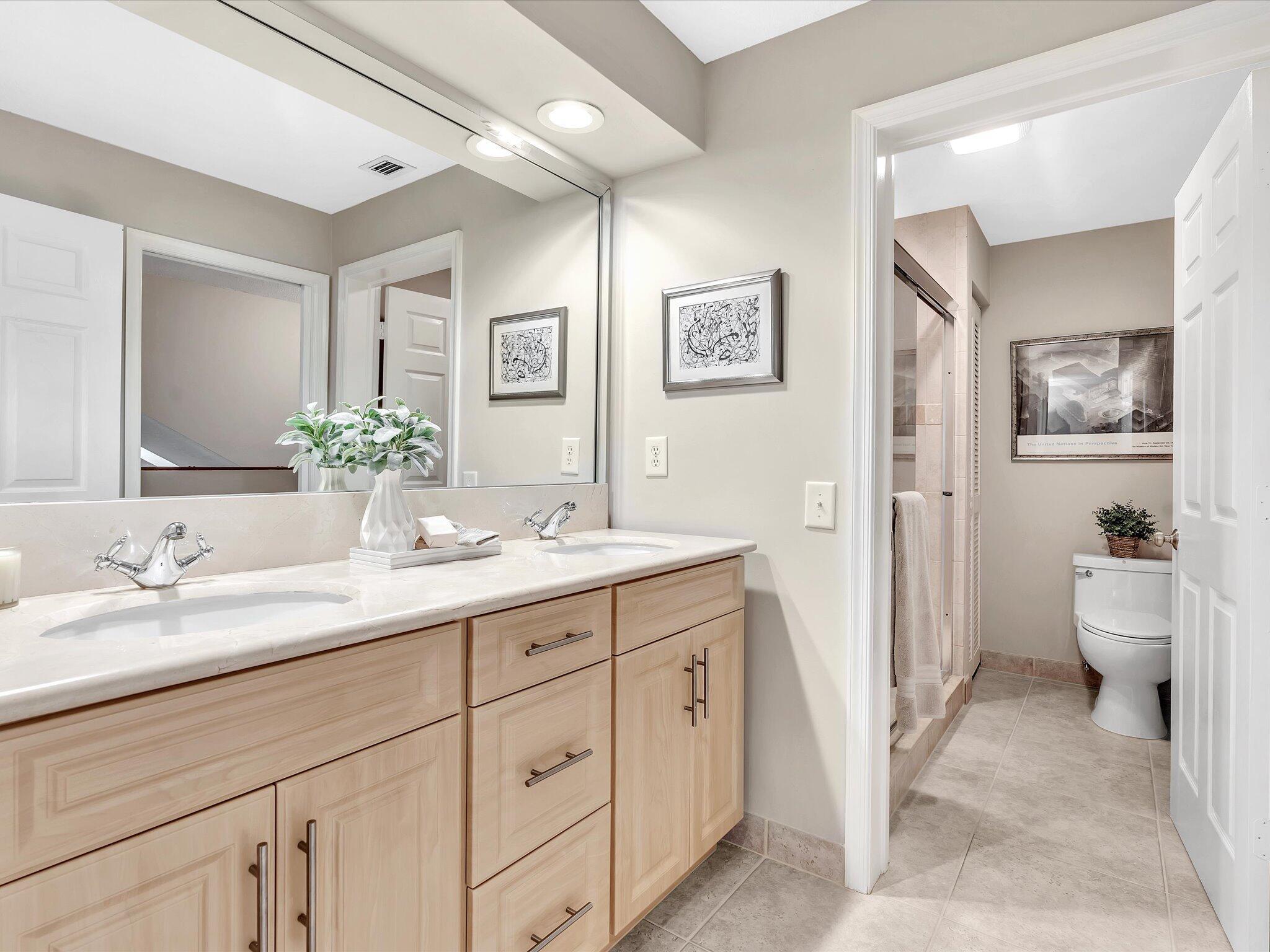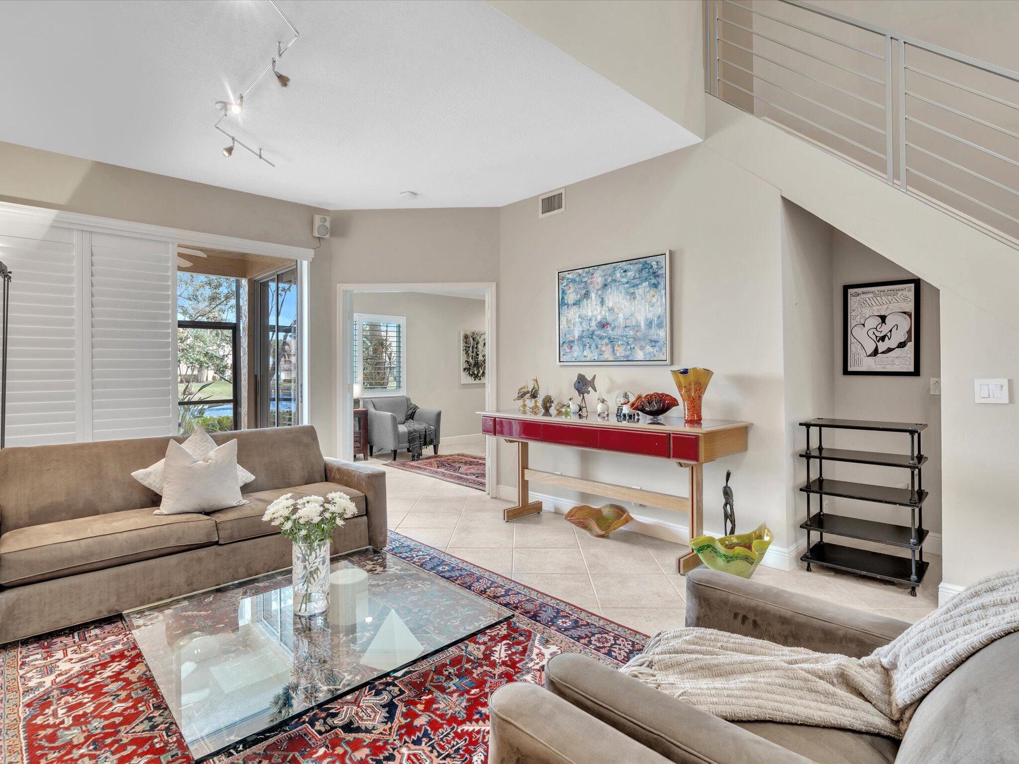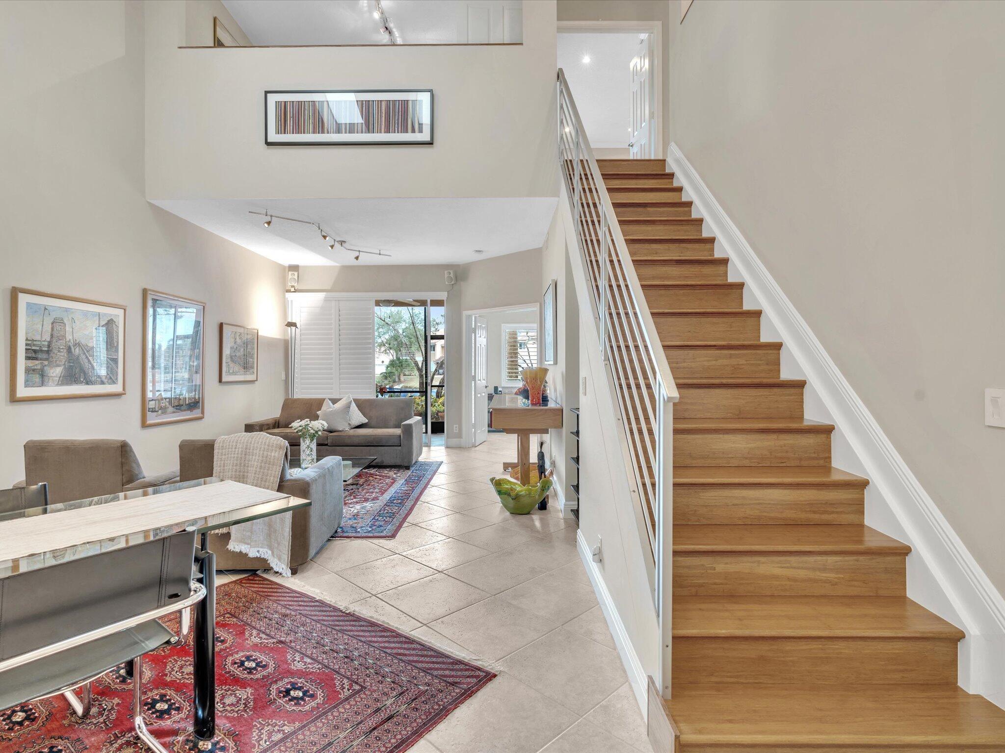 Gorgeous 3bdr/2 ba PLUS LOFT Townhome in central Boca. Immaculate & tastefully updated throughout with neutral tile downstairs, wood flooring upstairs. Modern kitchen, SS appliances, granite counters & eat in breakfast nook. Spacious living/dining area with lovely screened & tiled patio overlooking the lake. Primary bedroom sits off the main living area on ground floor with double door entry & a large walk in closet. Main bath is beautifully remodeled, double sinks, large tub & oversized walk in shower. Laundry conveniently situated inside the 1/2 bath. Upstairs consists of split bedrooms & open loft which is perfect for office/ play area. Enjoy the view from the 2nd floor screened in lanai. ''Windows ''on 1st floor are impact (not sliders),AC 2019, Plantation shutters. Fantastic location