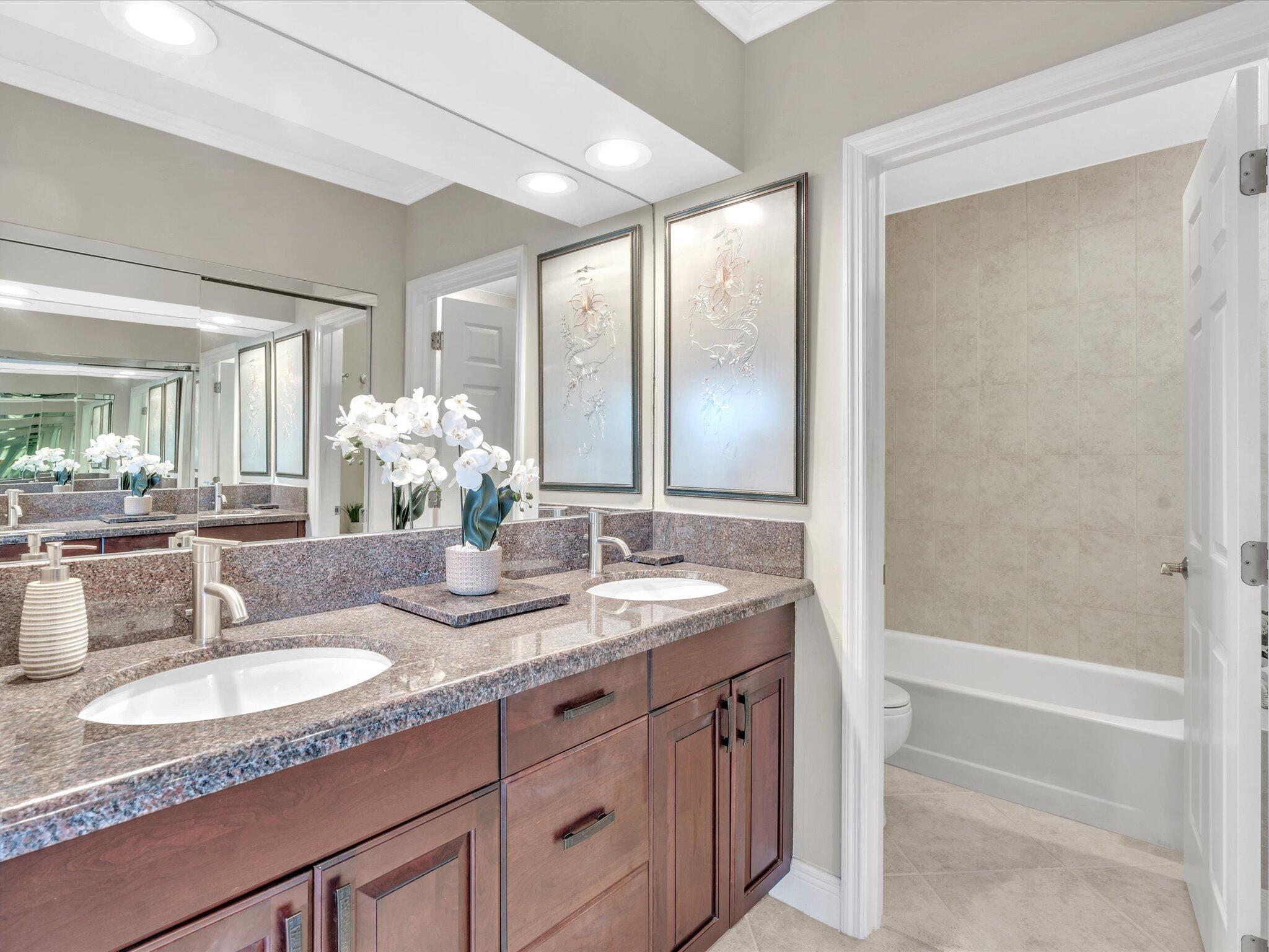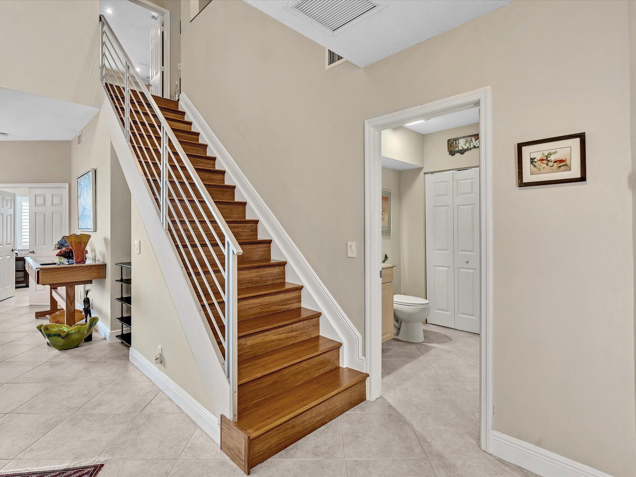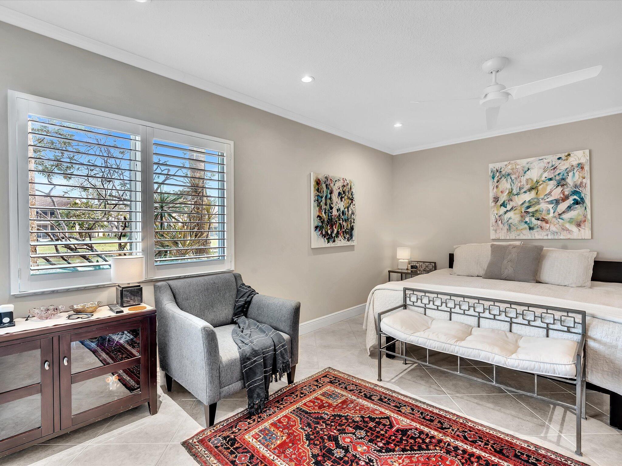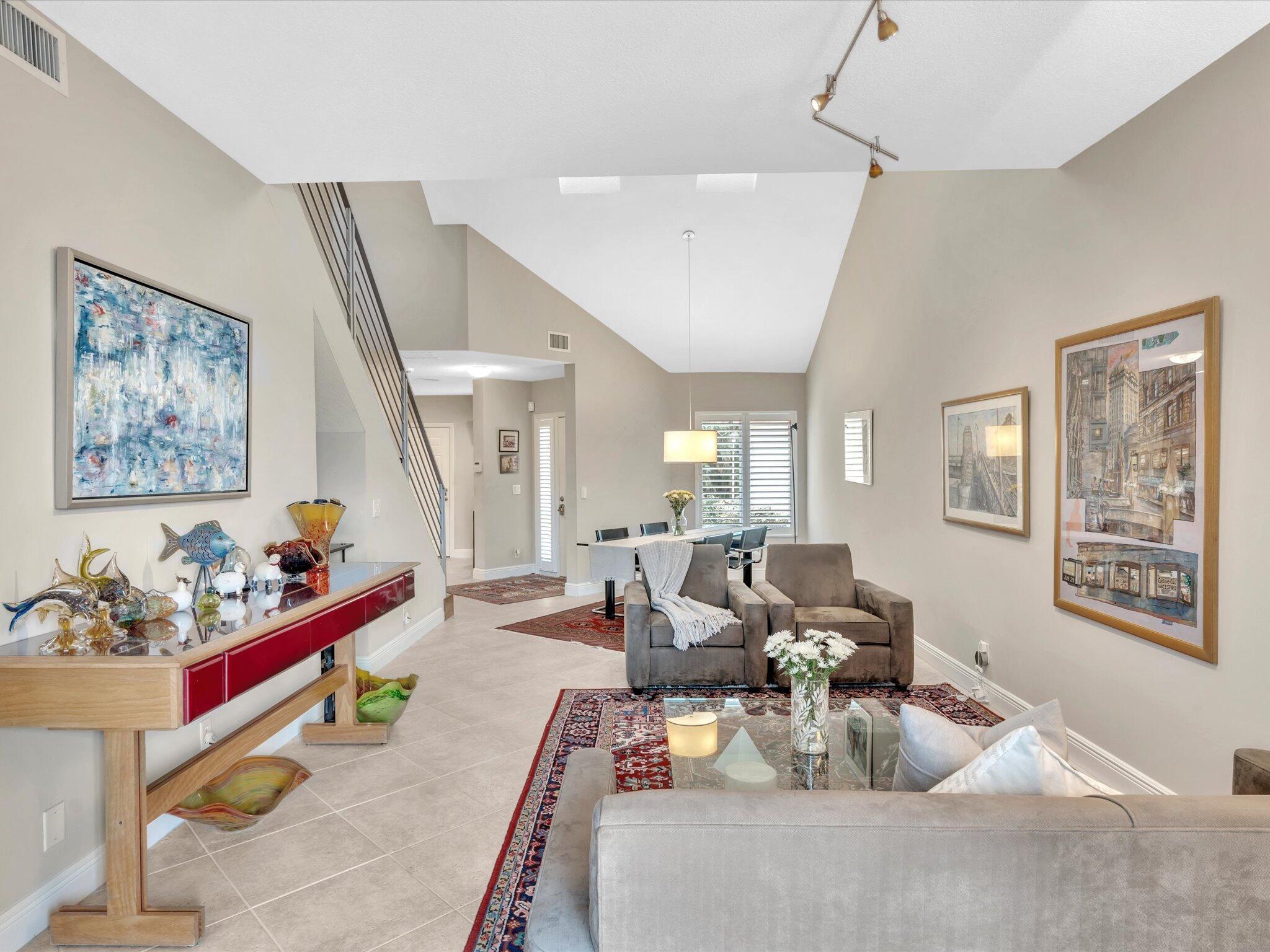 Gorgeous 3bdr/2 ba PLUS LOFT Townhome in central Boca. Immaculate & tastefully updated throughout with neutral tile downstairs, wood flooring upstairs. Modern kitchen, SS appliances, granite counters & eat in breakfast nook. Spacious living/dining area with lovely screened & tiled patio overlooking the lake. Primary bedroom sits off the main living area on ground floor with double door entry & a large walk in closet. Main bath is beautifully remodeled, double sinks, large tub & oversized walk in shower. Laundry conveniently situated inside the 1/2 bath. Upstairs consists of split bedrooms & open loft which is perfect for office/ play area. Enjoy the view from the 2nd floor screened in lanai. ''Windows ''on 1st floor are impact (not sliders),AC 2019, Plantation shutters. Fantastic location