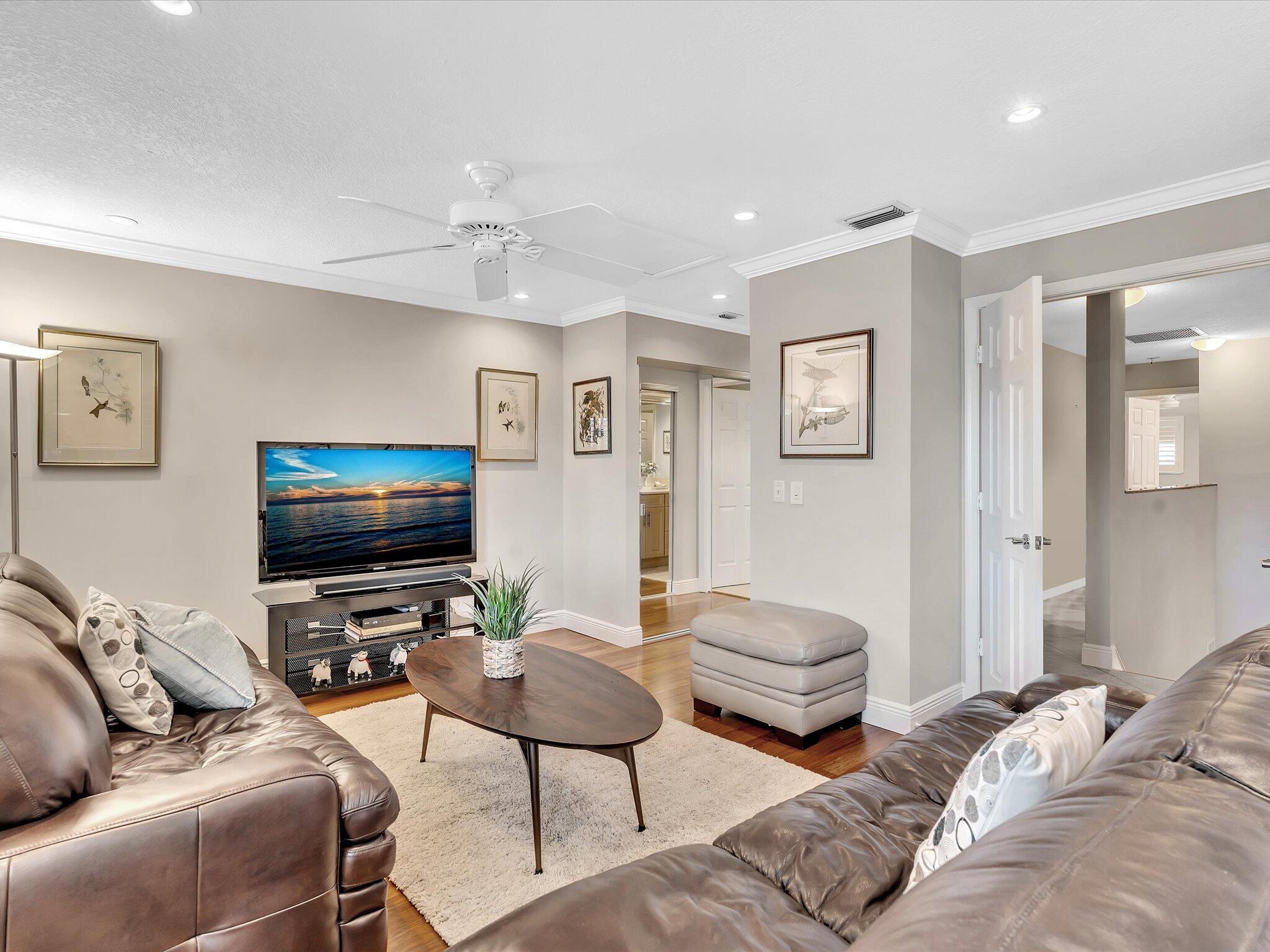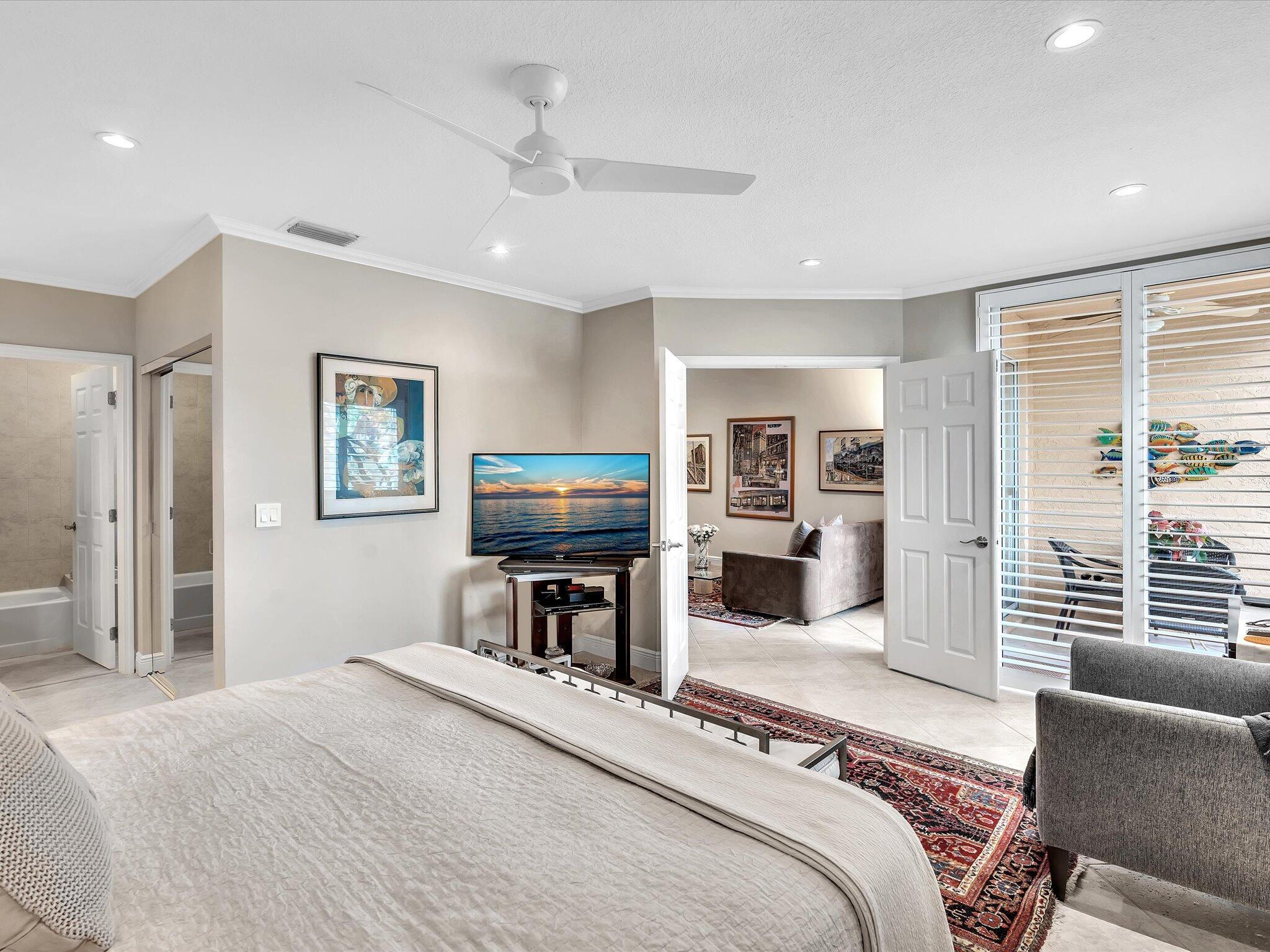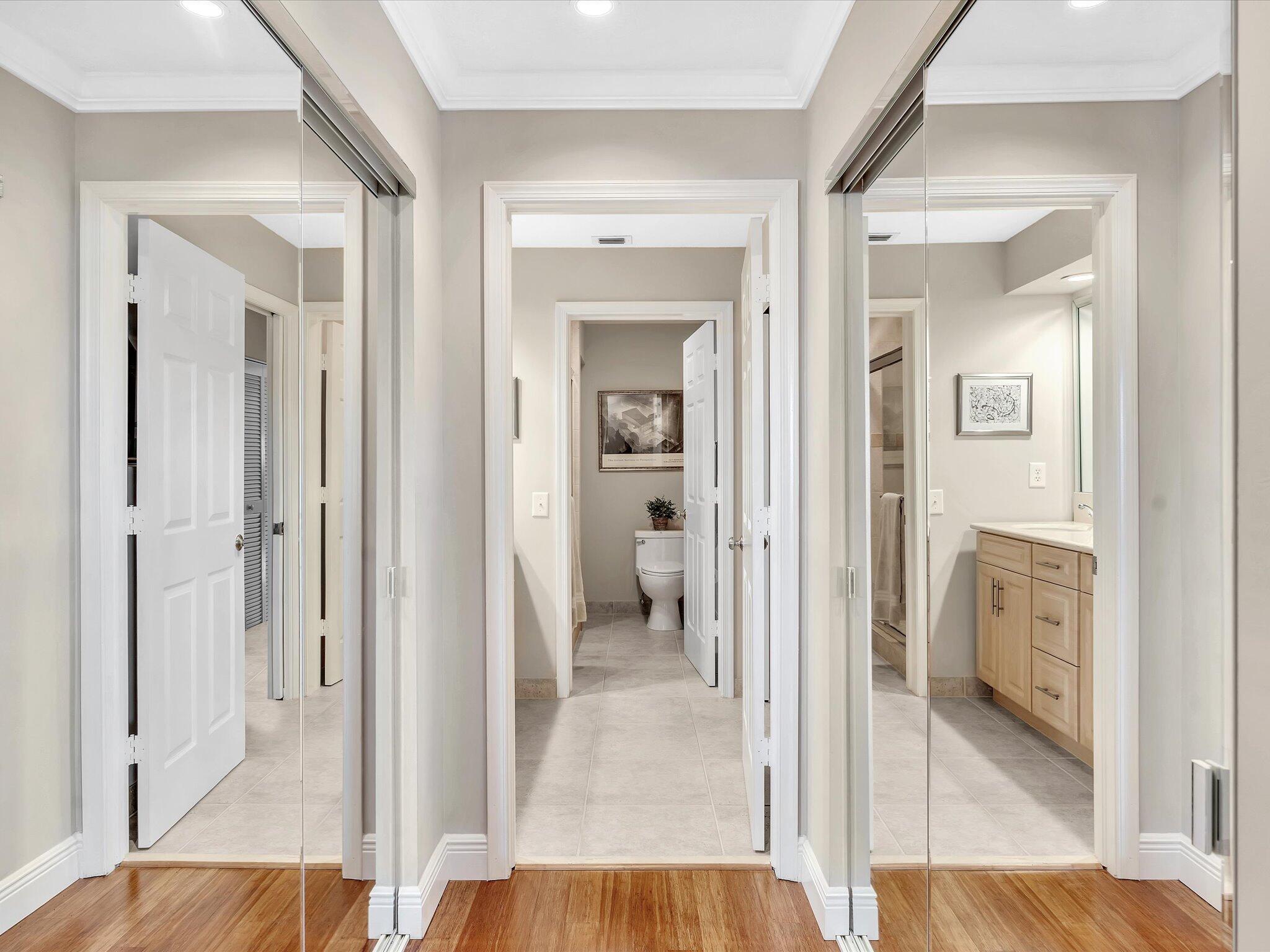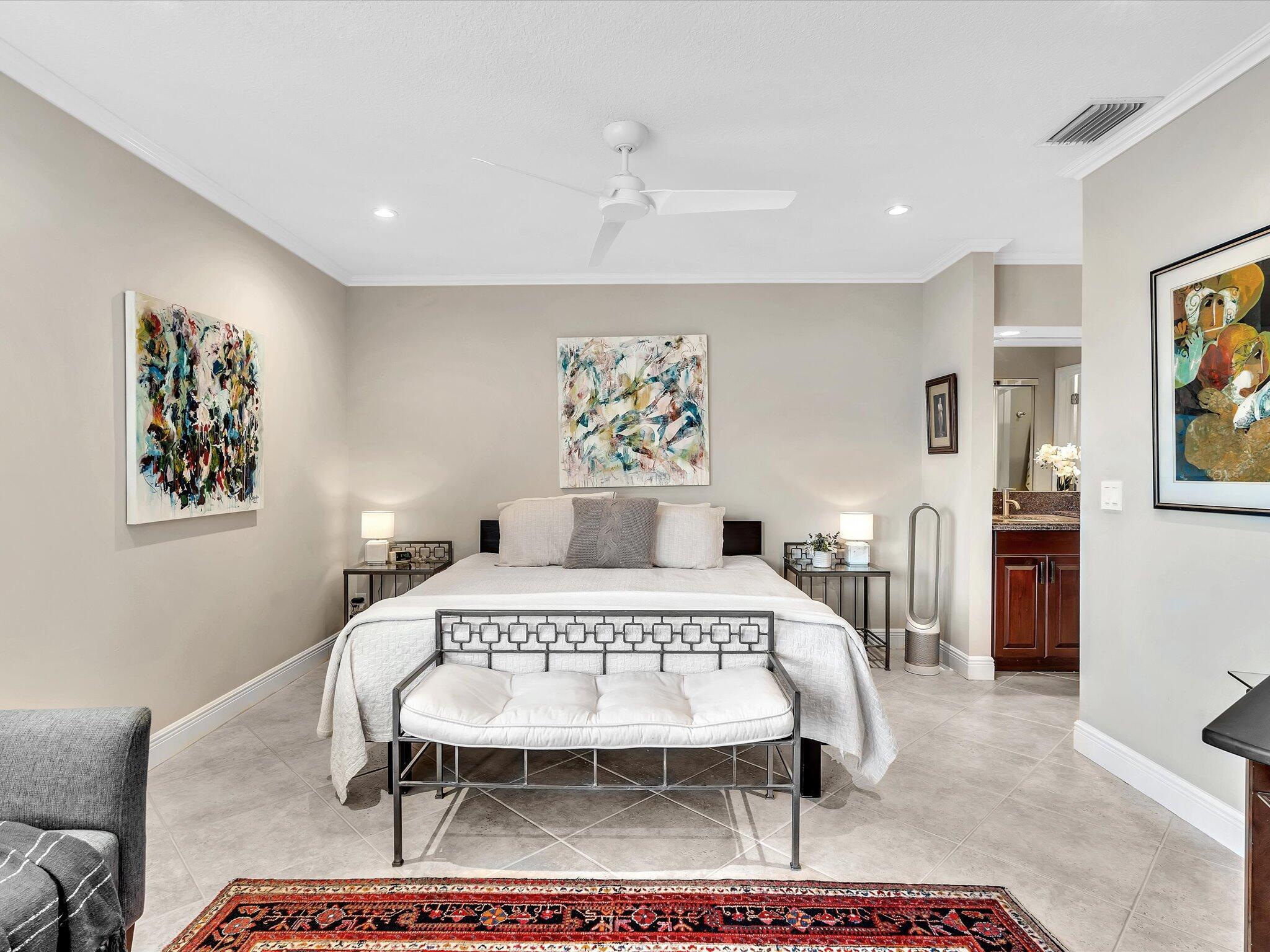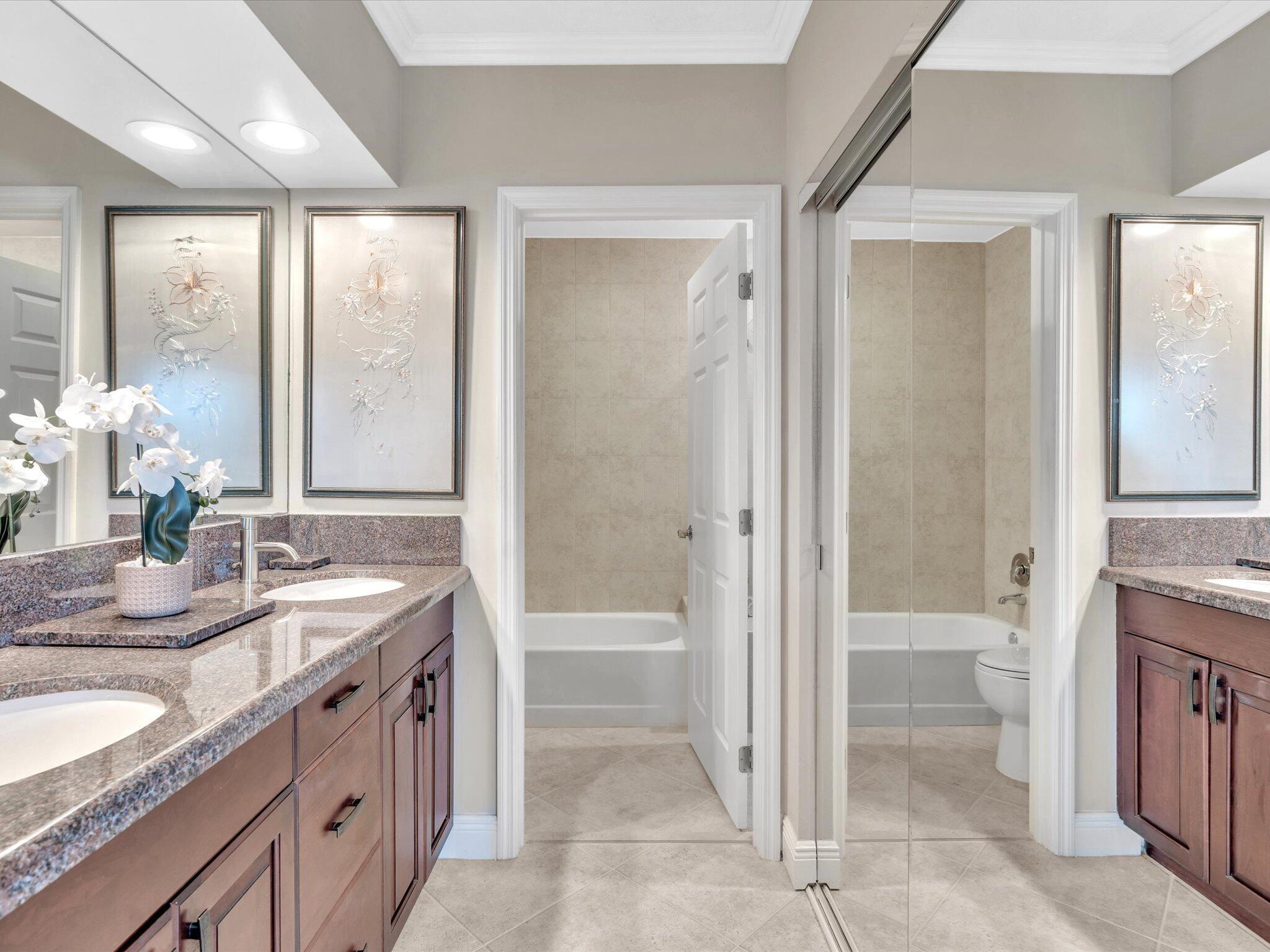 Gorgeous 3bdr/2 ba PLUS LOFT Townhome in central Boca. Immaculate & tastefully updated throughout with neutral tile downstairs, wood flooring upstairs. Modern kitchen, SS appliances, granite counters & eat in breakfast nook. Spacious living/dining area with lovely screened & tiled patio overlooking the lake. Primary bedroom sits off the main living area on ground floor with double door entry & a large walk in closet. Main bath is beautifully remodeled, double sinks, large tub & oversized walk in shower. Laundry conveniently situated inside the 1/2 bath. Upstairs consists of split bedrooms & open loft which is perfect for office/ play area. Enjoy the view from the 2nd floor screened in lanai. ''Windows ''on 1st floor are impact (not sliders),AC 2019, Plantation shutters. Fantastic location