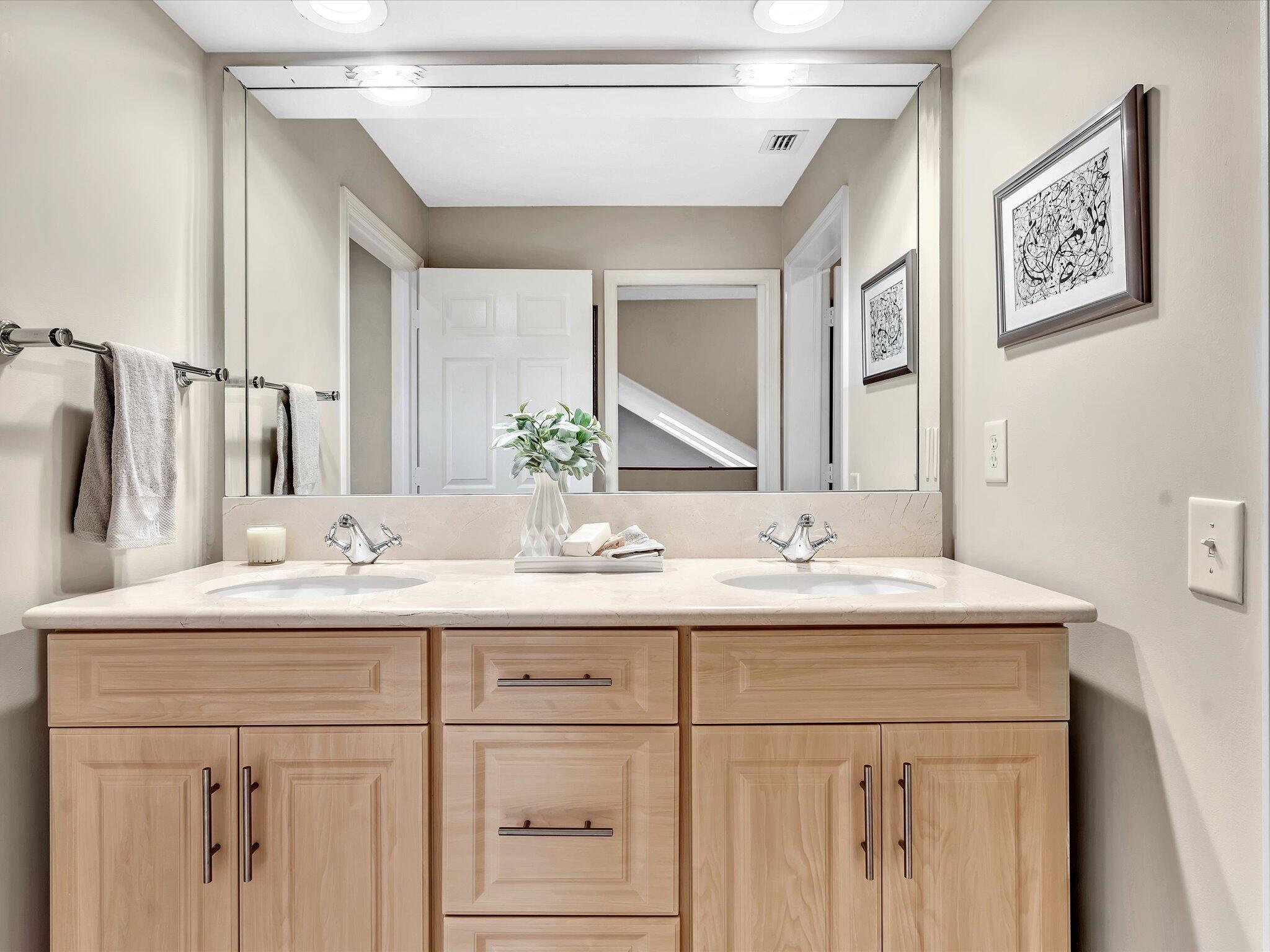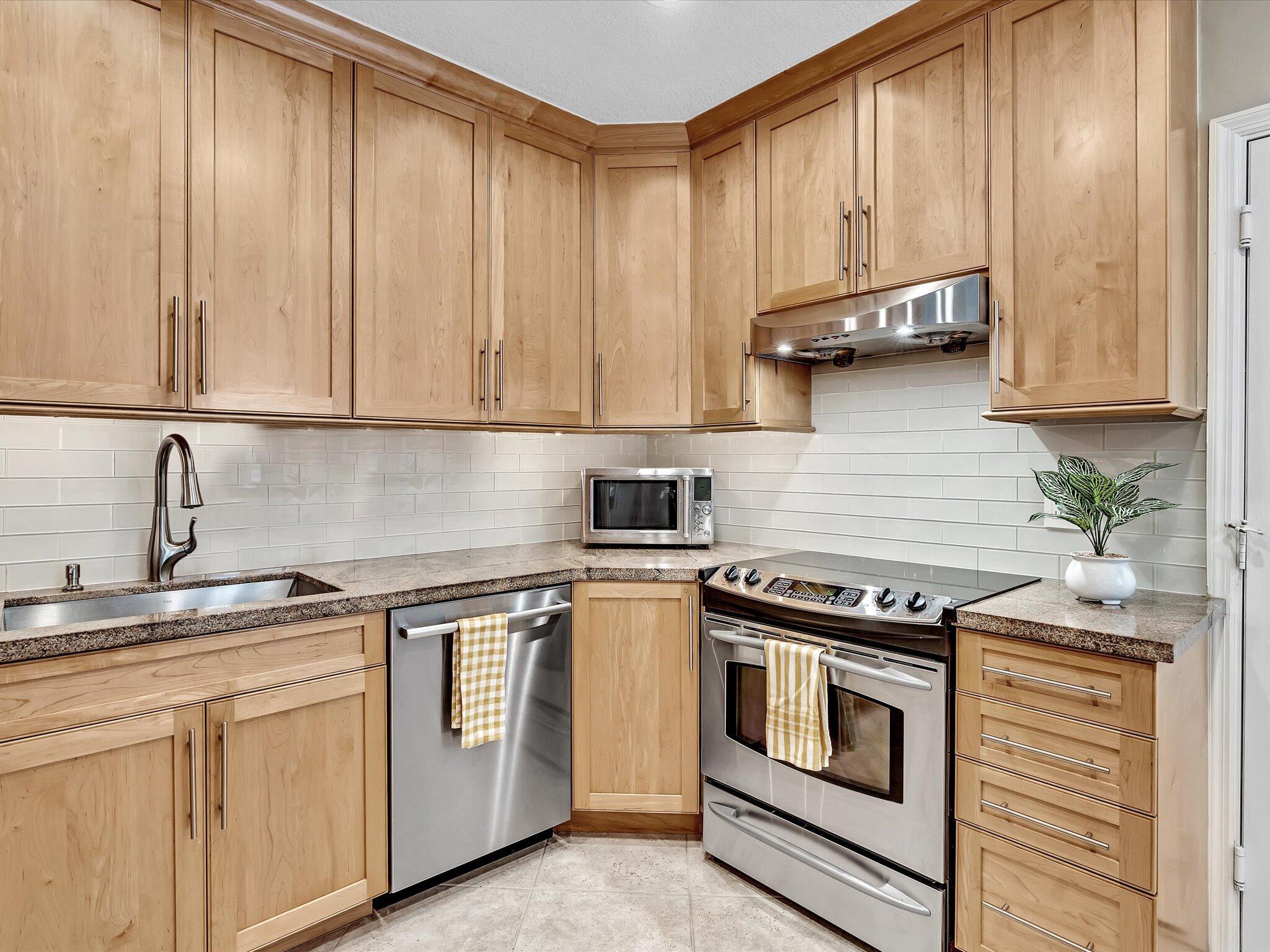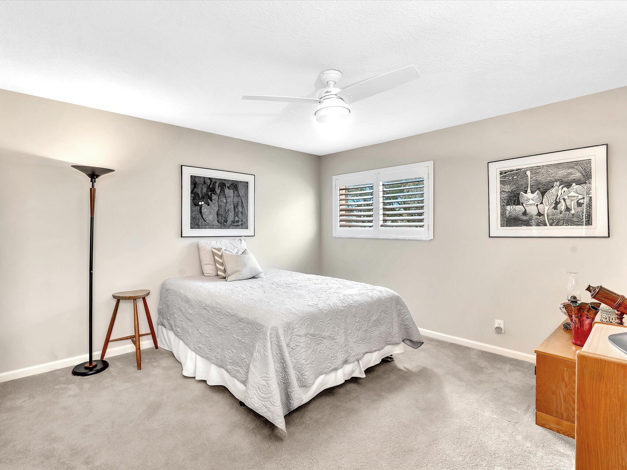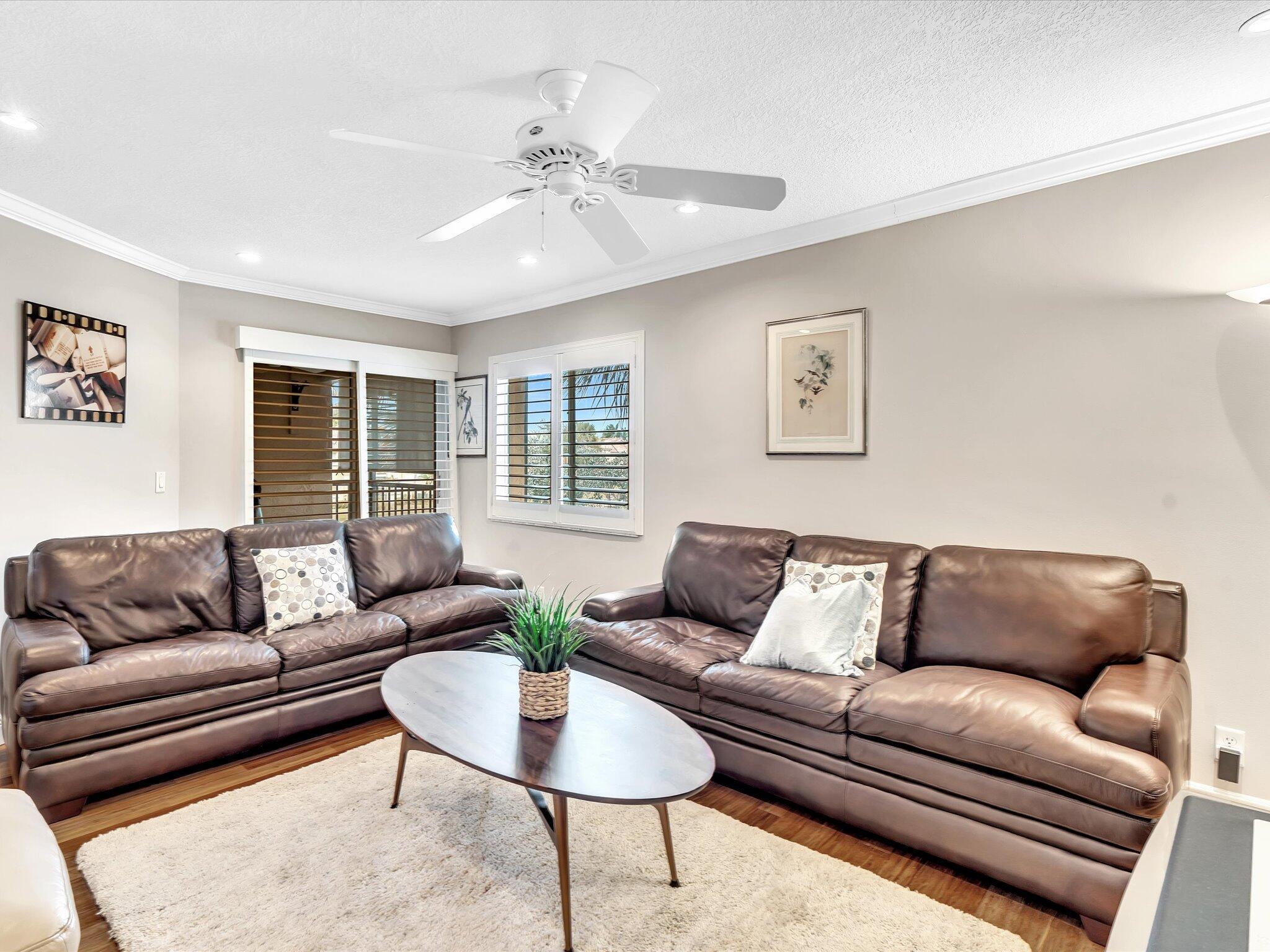 Gorgeous 3bdr/2 ba PLUS LOFT Townhome in central Boca. Immaculate & tastefully updated throughout with neutral tile downstairs, wood flooring upstairs. Modern kitchen, SS appliances, granite counters & eat in breakfast nook. Spacious living/dining area with lovely screened & tiled patio overlooking the lake. Primary bedroom sits off the main living area on ground floor with double door entry & a large walk in closet. Main bath is beautifully remodeled, double sinks, large tub & oversized walk in shower. Laundry conveniently situated inside the 1/2 bath. Upstairs consists of split bedrooms & open loft which is perfect for office/ play area. Enjoy the view from the 2nd floor screened in lanai. ''Windows ''on 1st floor are impact (not sliders),AC 2019, Plantation shutters. Fantastic location