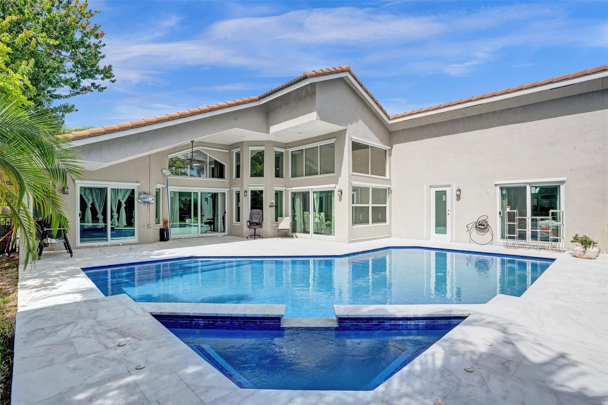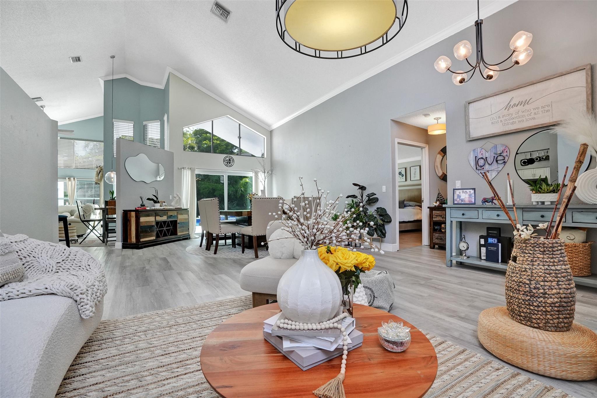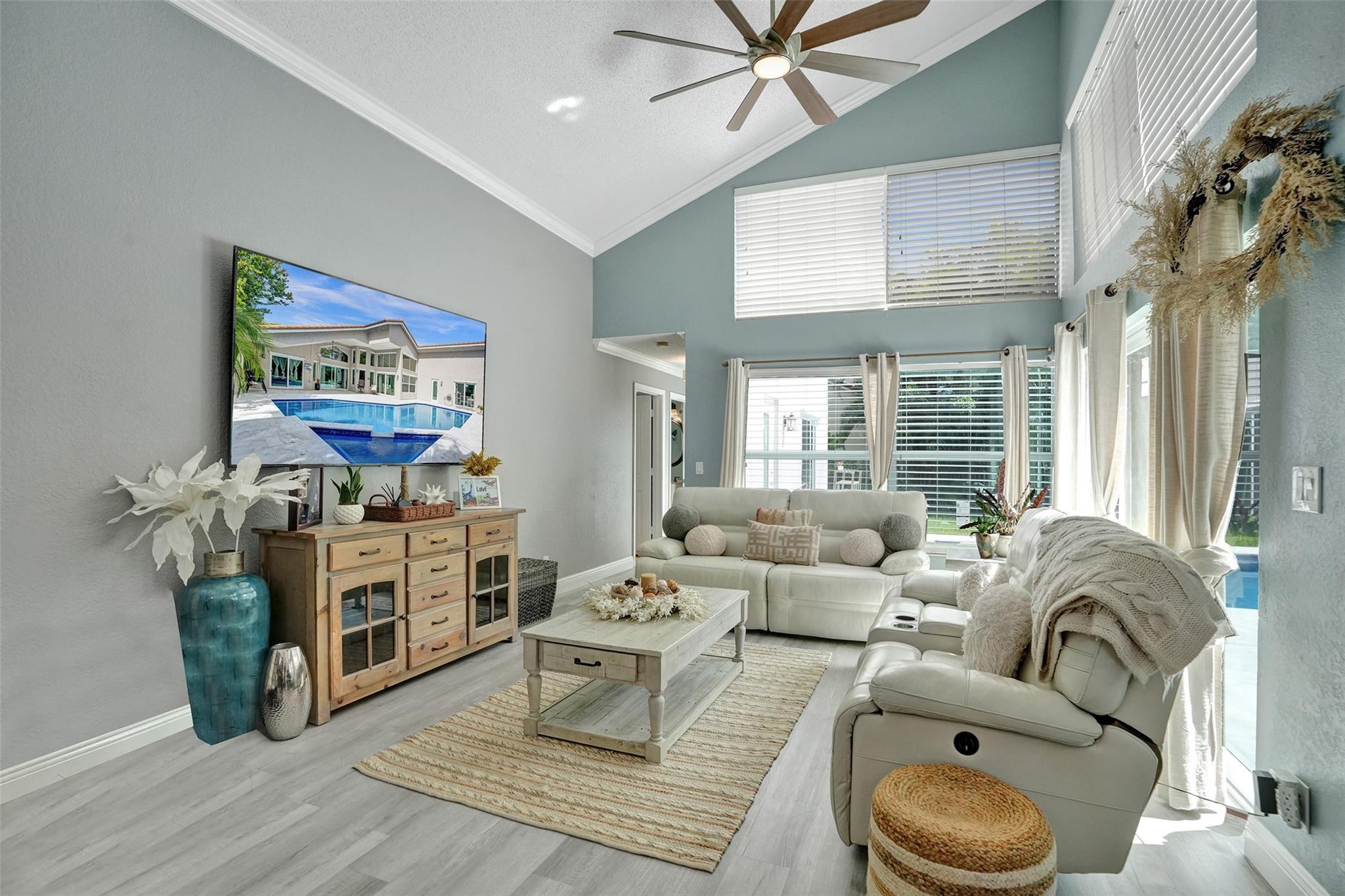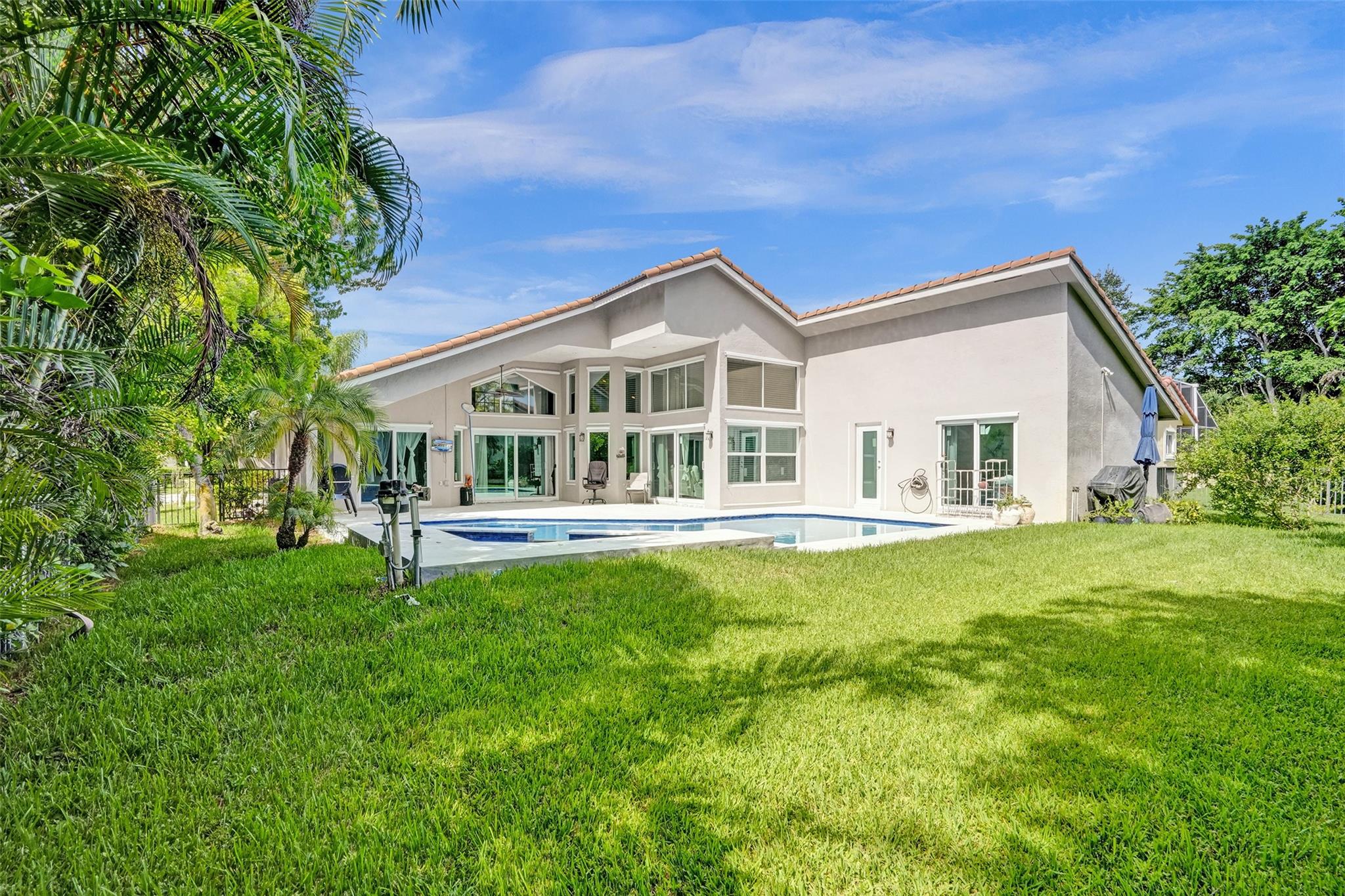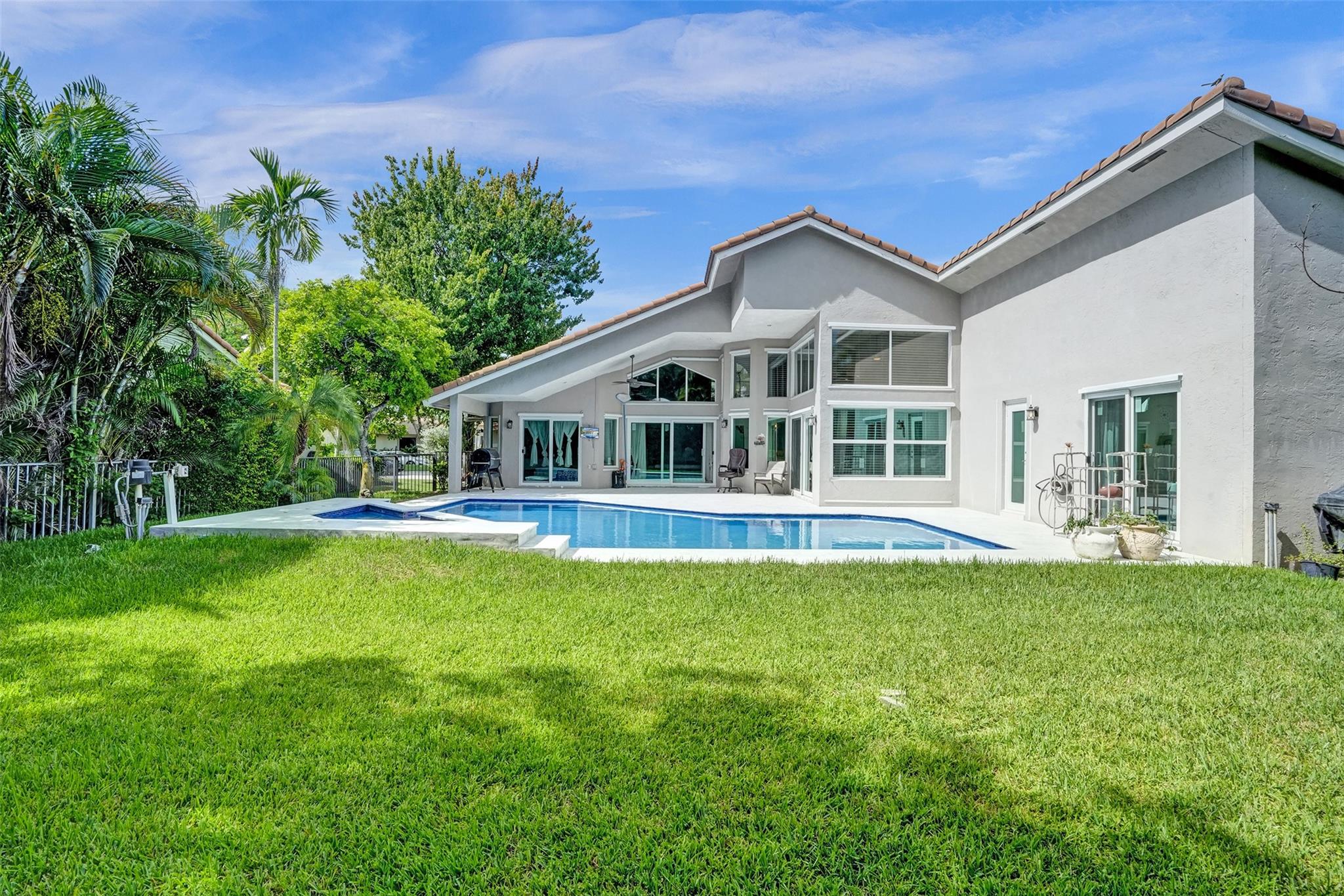Discover luxury living at its best in Eagle Trace. This stunning 5 bedroom & 3 bath home is set on a spacious 1/4-acre plus lot. It features a luxury pool perfect for entertaining & relaxation. Enjoy an open floor plan with spectacular vaulted ceilings, extra family room & second dining area. Located on a serene cul-de-sac, offering a peaceful retreat. Upgraded granite countertops, stainless steel appliances, and high-quality flooring throughout. The backyard is a private fenced in oasis. Eagle Trace provides gated and manned security, low HOA fees, and no application or approval. The community is highly sought-after, offering amenities such as a clubhouse, tennis courts, and more. Don't miss out on this exceptional opportunity to own a home in Coral Springs' most coveted neighborhood.
