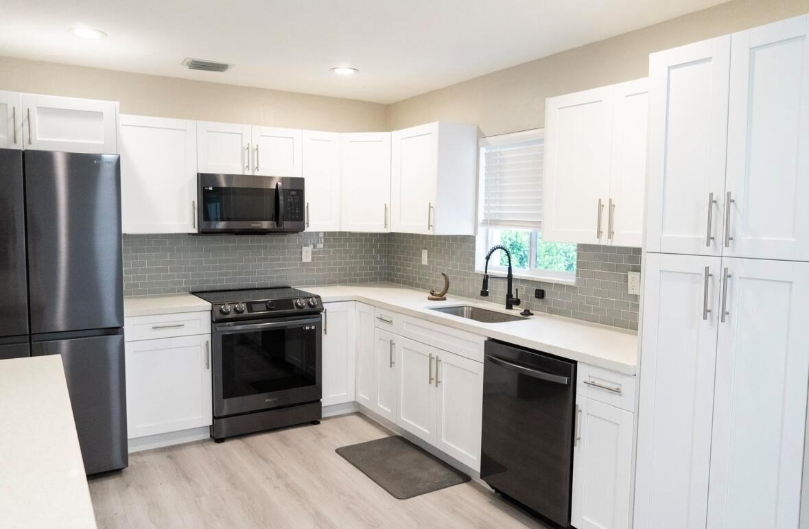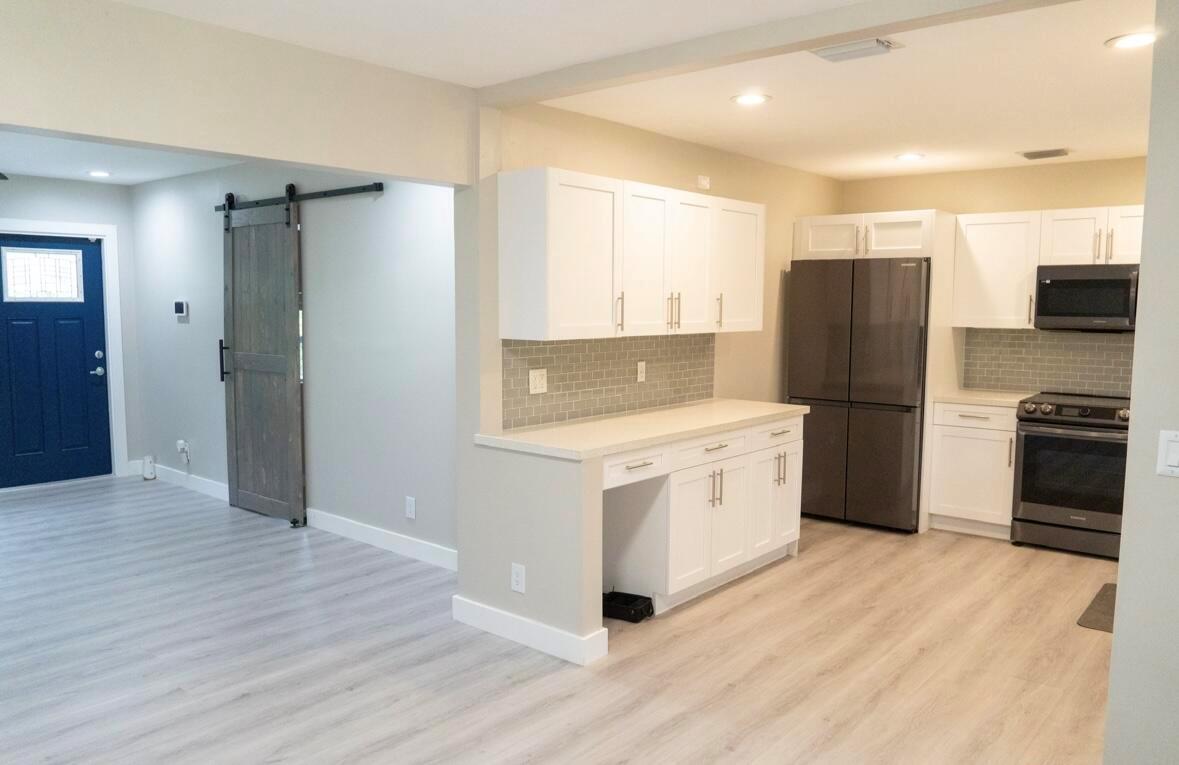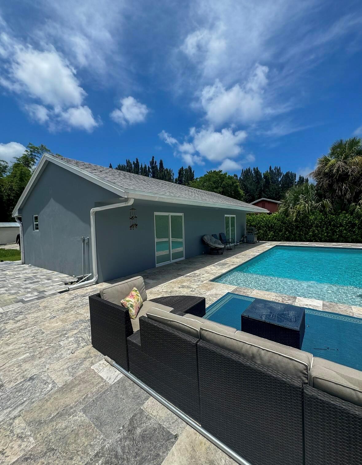 Beautifully redone, this property boasts a spacious 3 bed, 2 bath main home accompanied by a charming 1 bed, 1 bath guest home complete with a fully-equipped kitchen. Both homes feature a 2023 roof and new AC ensuring comfort and peace of mind. Enjoy the luxury of an in-ground pool that has been recently resurfaced, perfect for relaxation and entertainment. The interiors have been updated with fresh paint throughout both homes, highlighting the modern stainless steel appliances and elegant quartz countertops. This move-in ready property offers a blend of comfort, style, and functionality!