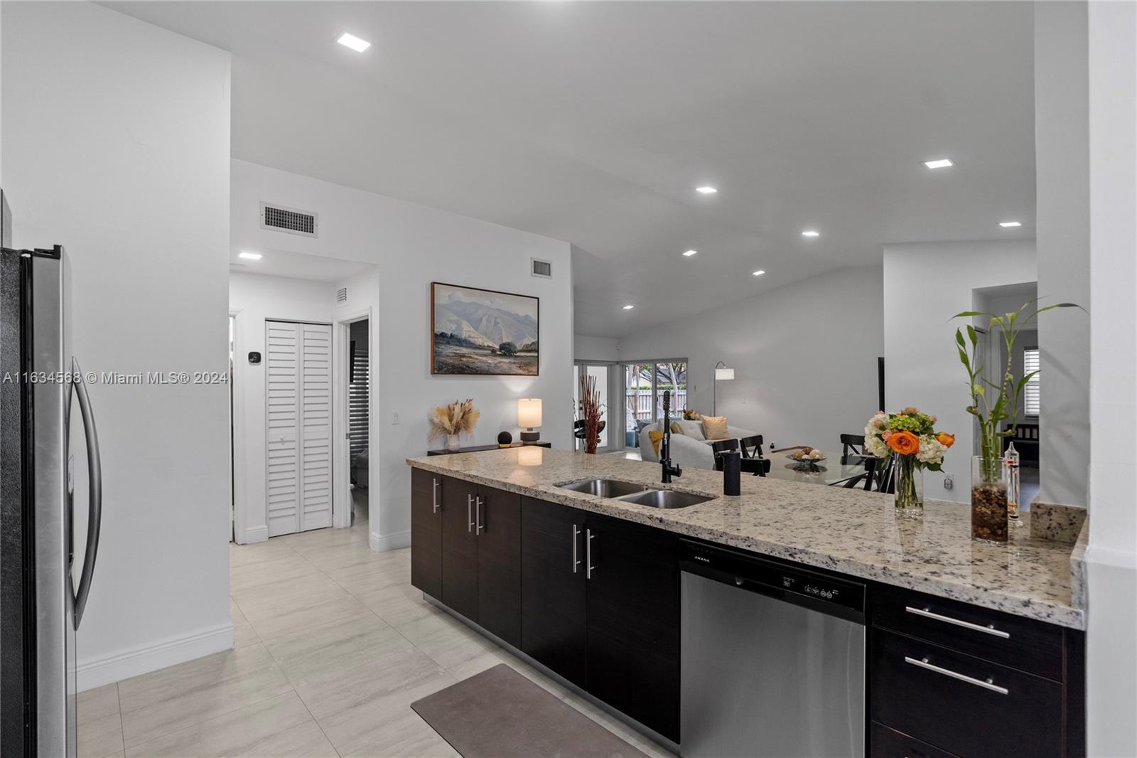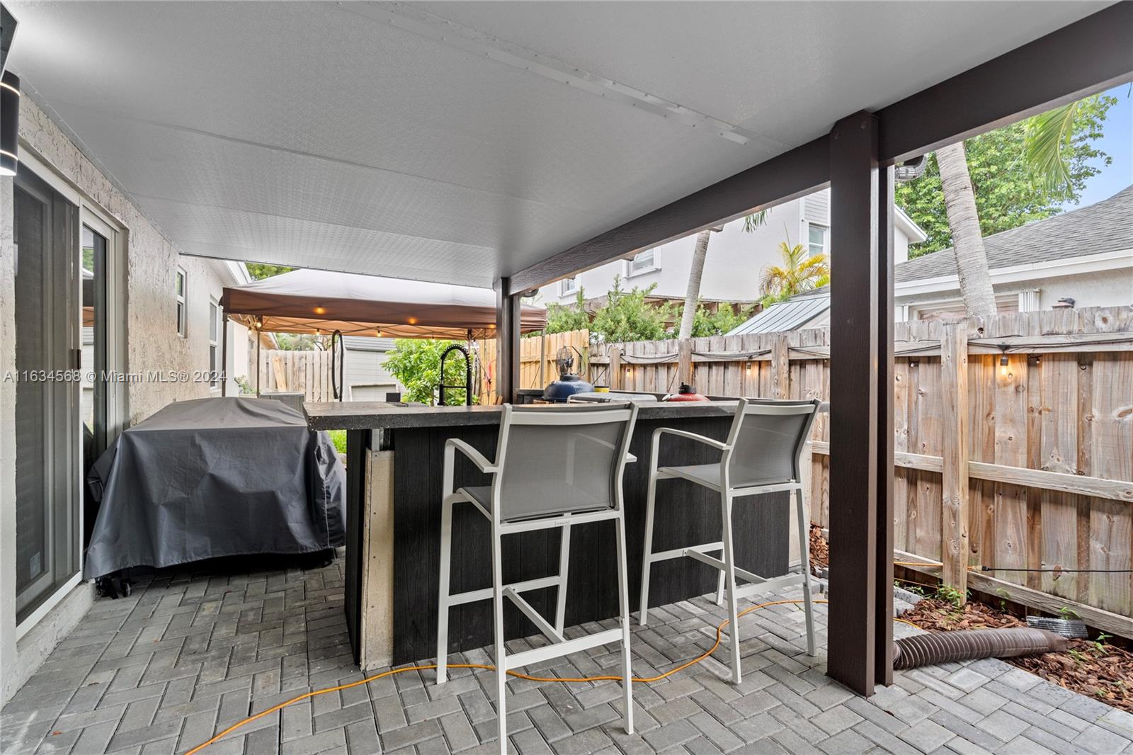 This stunning single-family home boasts 3 beds 2 baths, the fully renovated interior, modern open concept design, granite counters, ss appliances. New roof and A/C, impact windows, impact doors, this home offers peace of mind and comfort for years to come. Located in a gated community, this one-story corner with a 5,022 sq ft lot home offers privacy and security for you and your loved ones. The community itself is a paradise, with a clubhouse, tennis court, Paddle Tennis, Children's Water Park, gym, restaurant, and business center. You'll feel like you're living in a luxurious resort every day! Step outside to the paver patio with an outdoor kitchen, where you can host barbecues and enjoy the beautiful Florida weather. The community pool is perfect for cooling off on hot summer days.