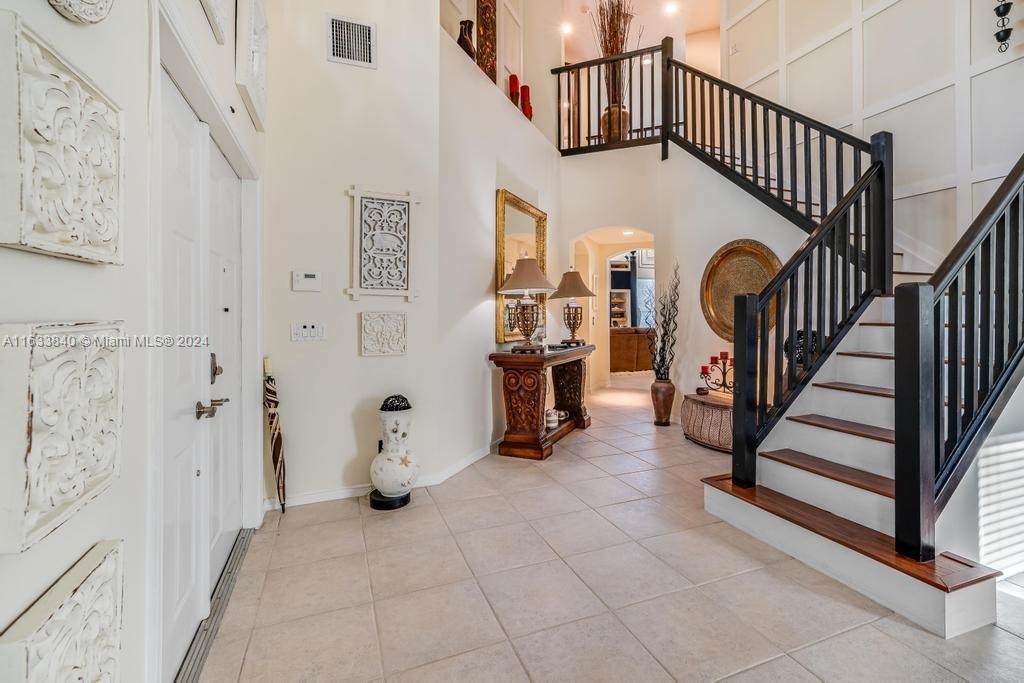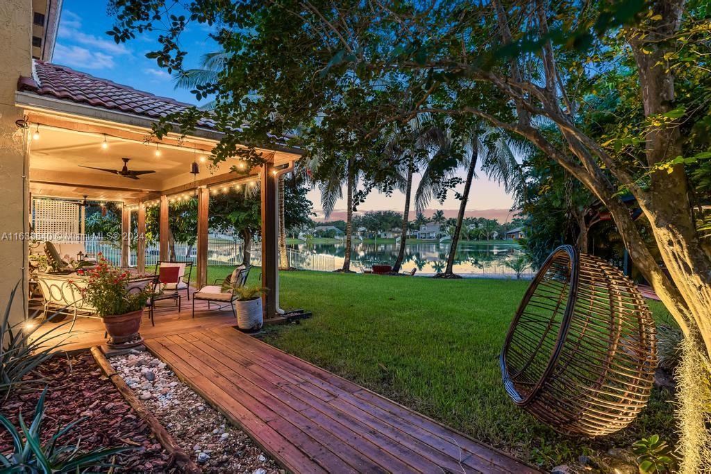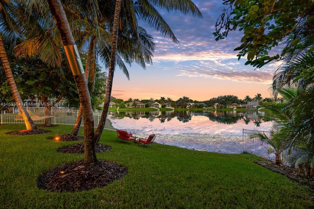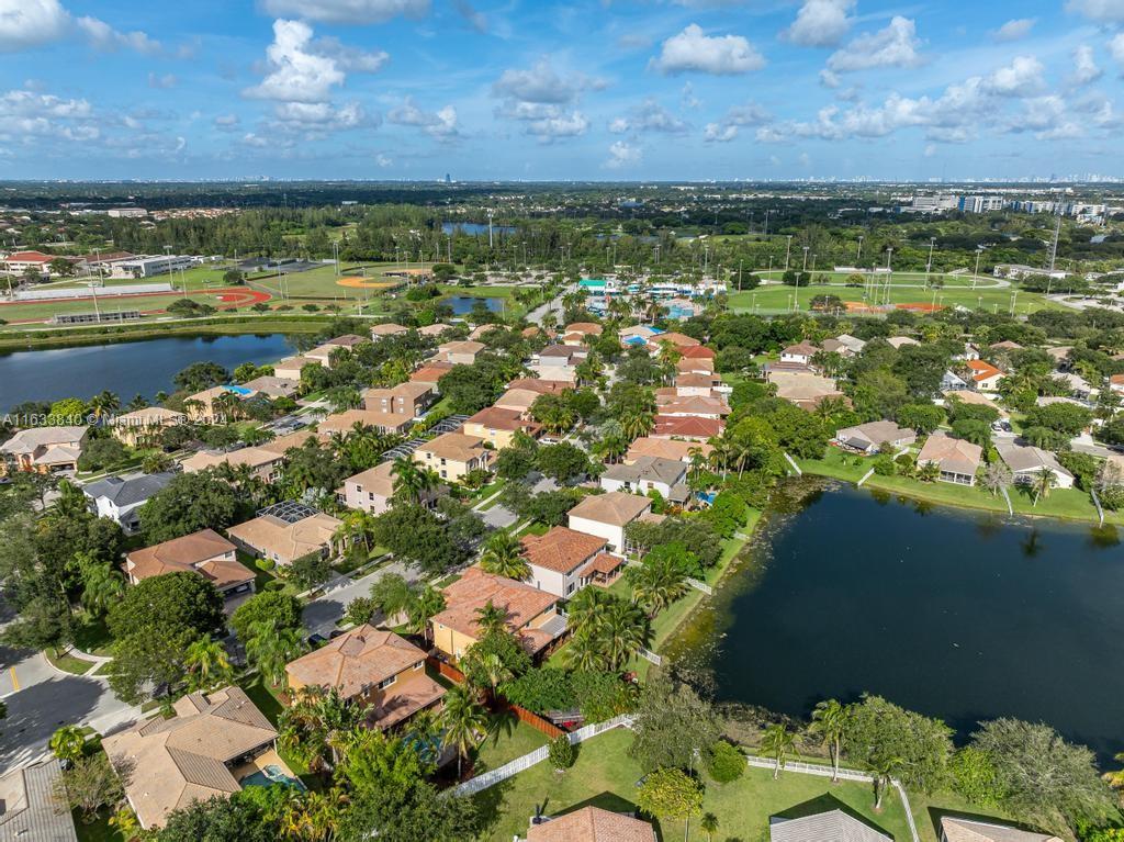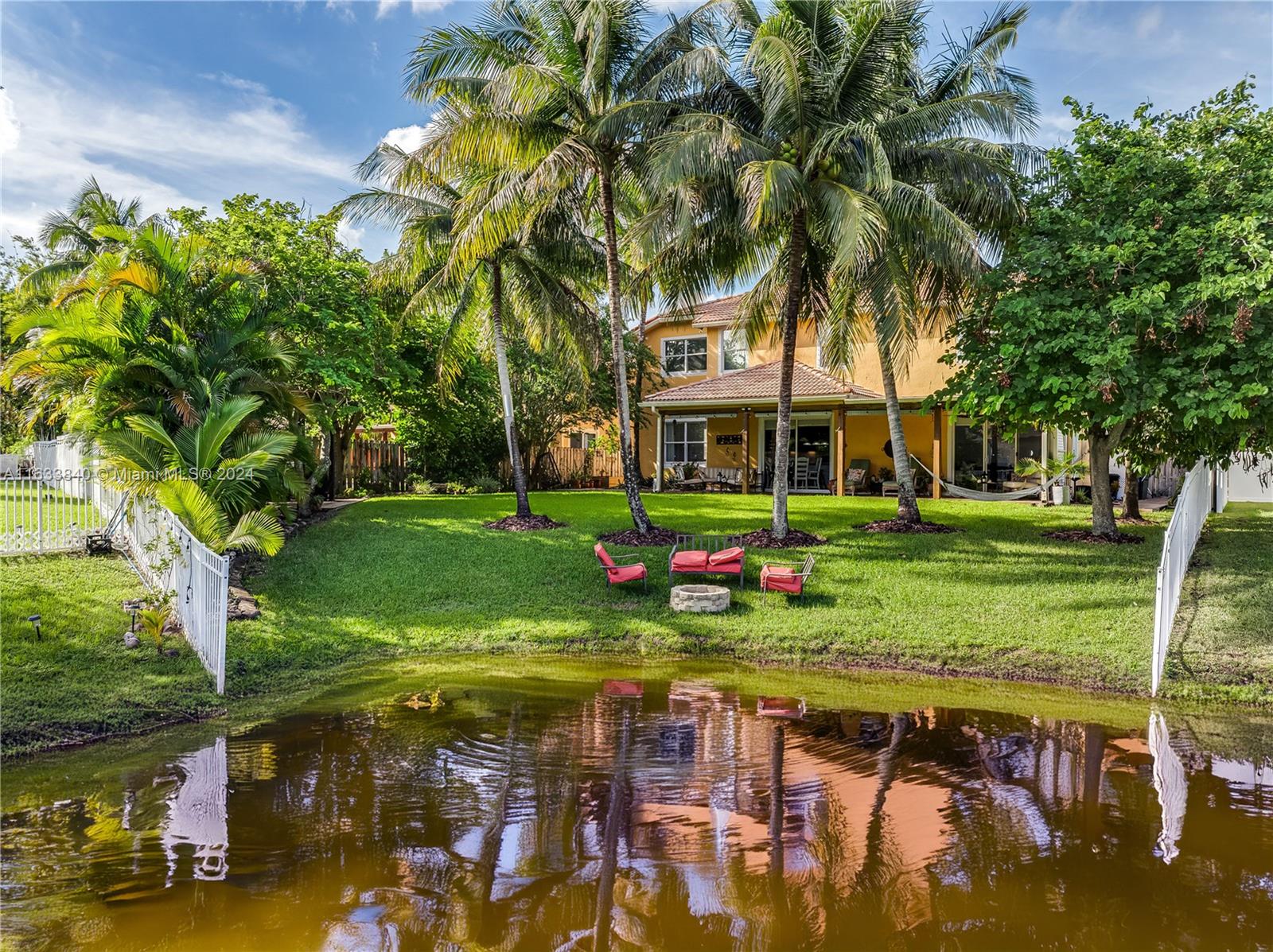 Immaculately kept lakefront property located in sought after gated community of Pembroke Falls. This stunning two-story residence boasts 5 bedrooms, 4 bathrooms, and a 3-car garage. One of the bedrooms with a full bath is on the first floor. The oversize master suite features an inviting sitting area. The kitchen has wood cabinets, granite countertops, and SS appliances. The backyard is an oasis of tranquility with a covered patio, ideal for enjoying relaxing lake views and ample space for a pool. Pembroke Falls offers first-class amenities, including a grand clubhouse, heated pool, gym, and courts for tennis, pickleball, and basketball. Maintenance included services: Cable, 24-hour security, alarm system, and fiber optic internet. This extraordinary home is a rare find, come see it!