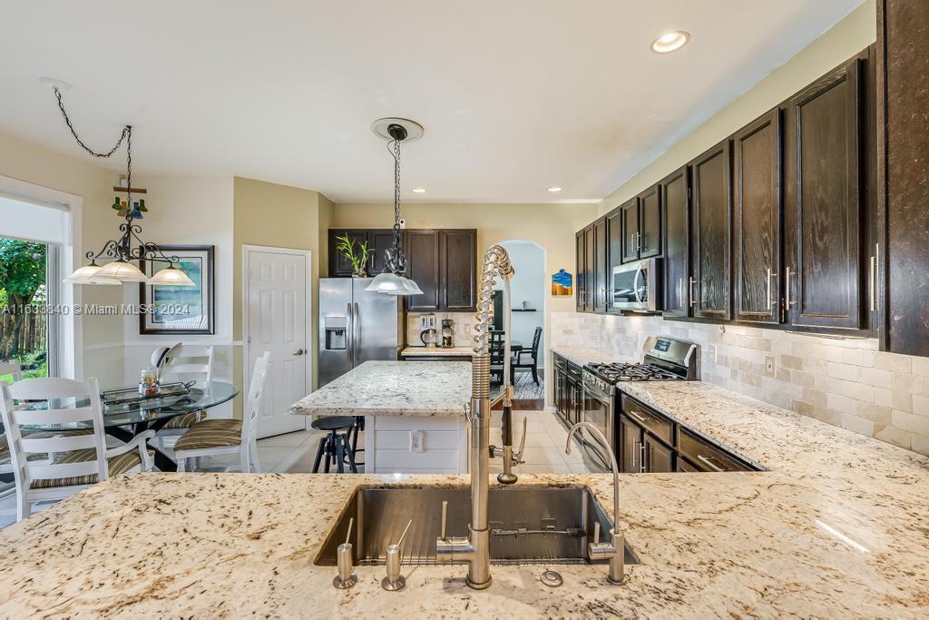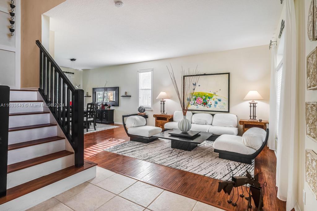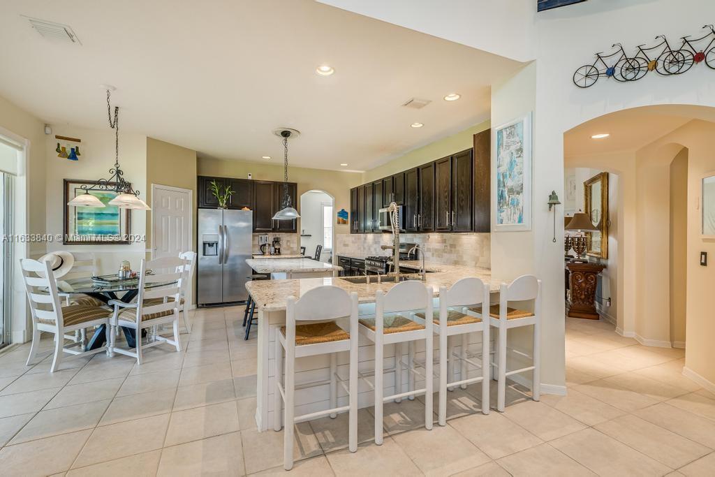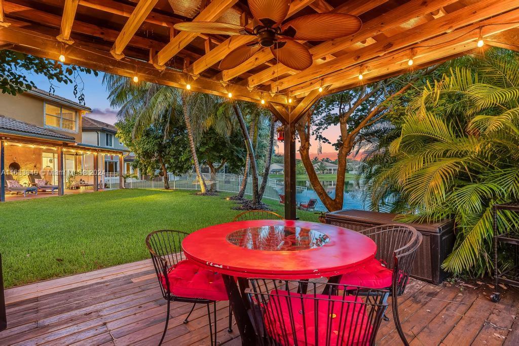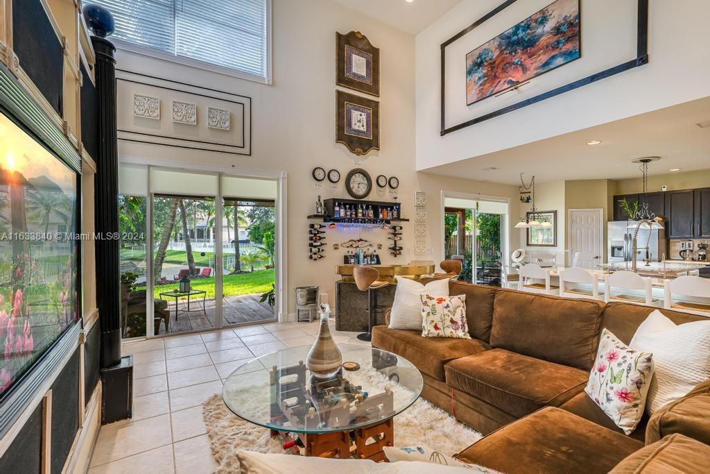 Immaculately kept lakefront property located in sought after gated community of Pembroke Falls. This stunning two-story residence boasts 5 bedrooms, 4 bathrooms, and a 3-car garage. One of the bedrooms with a full bath is on the first floor. The oversize master suite features an inviting sitting area. The kitchen has wood cabinets, granite countertops, and SS appliances. The backyard is an oasis of tranquility with a covered patio, ideal for enjoying relaxing lake views and ample space for a pool. Pembroke Falls offers first-class amenities, including a grand clubhouse, heated pool, gym, and courts for tennis, pickleball, and basketball. Maintenance included services: Cable, 24-hour security, alarm system, and fiber optic internet. This extraordinary home is a rare find, come see it!