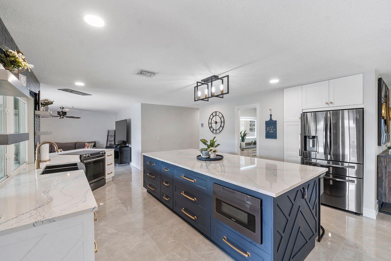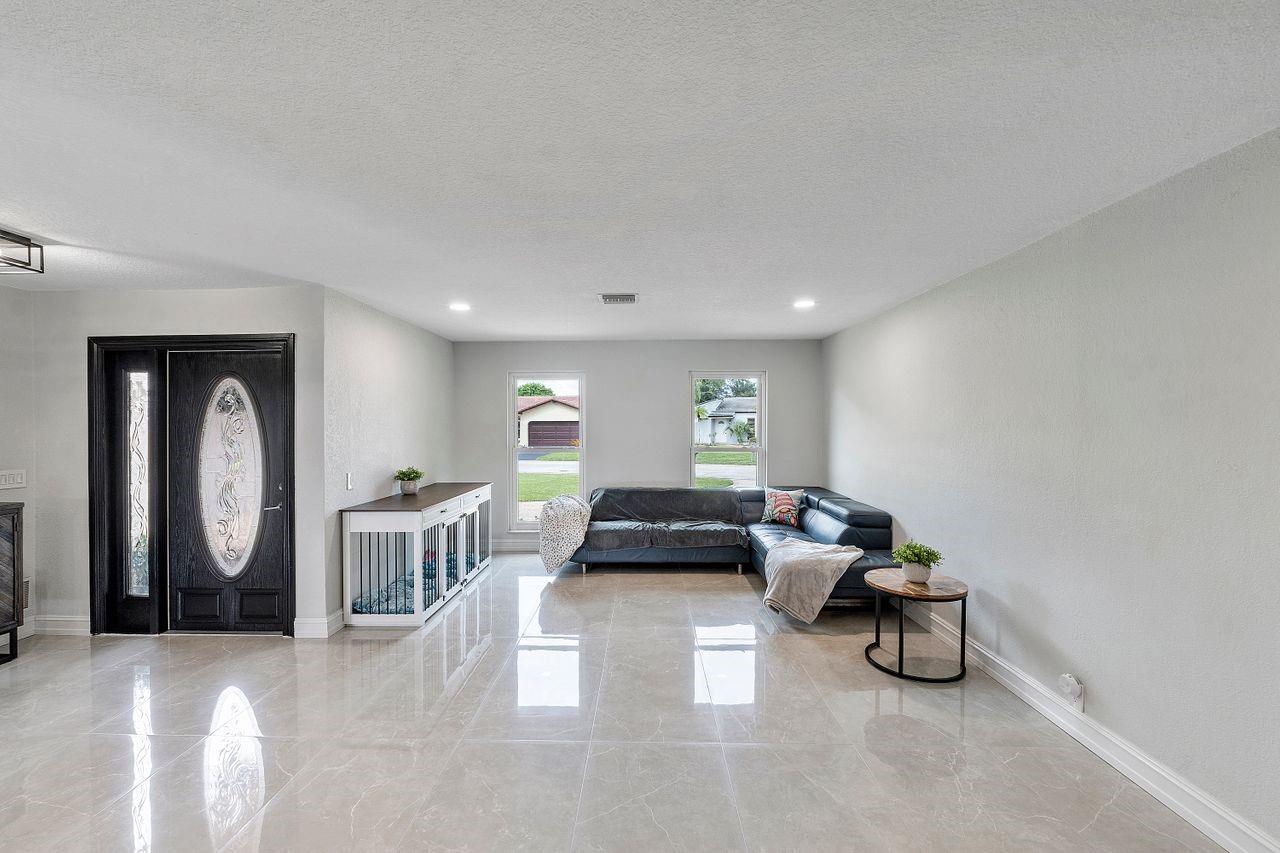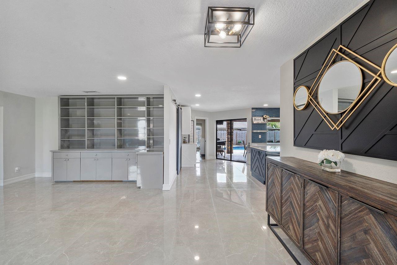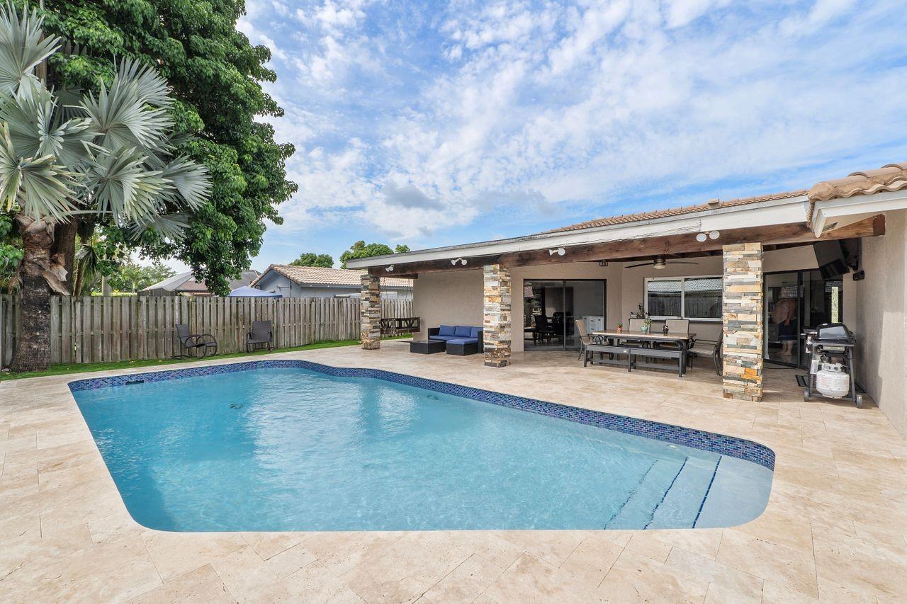 Welcome to your dream oasis. This stunning four bedroom plus office/den boast beautiful open floor plan perfect for modern day living. This large home has a gorgeous custom kitchen with a 10 Foot quartz countertop island, SS appliances, Custom walk-in pantry. New flooring throughout, all new modern bathrooms, tankless water heater, hurricane impact windows, Duel air conditioners, Roof 2013, New electrical panels, Private sparkling swimming pool. The expansive fenced in backyard serves as a private, tranquil retreat for both relaxation and entertainment. NO Homeowners association. Driveway fits up to 8 cars.