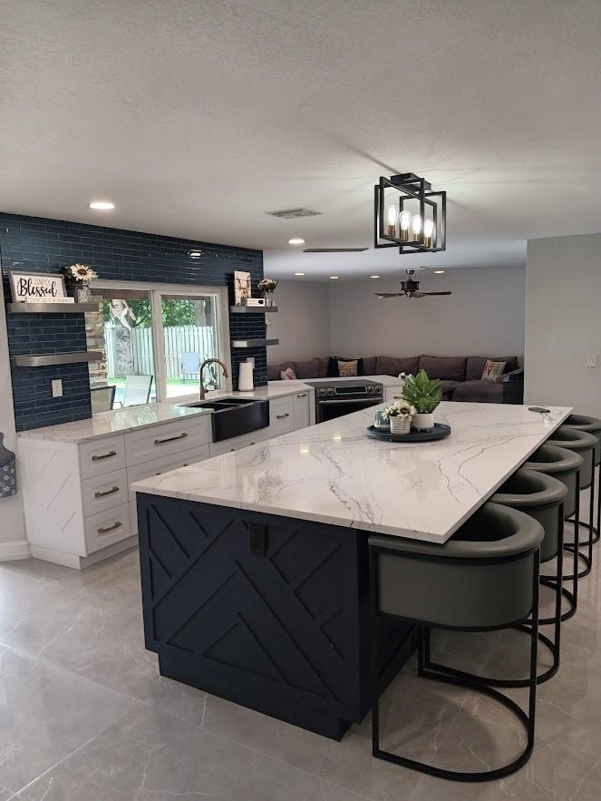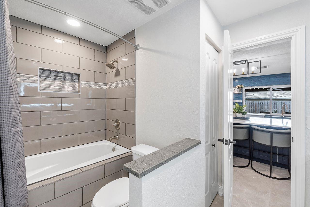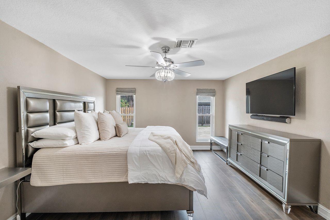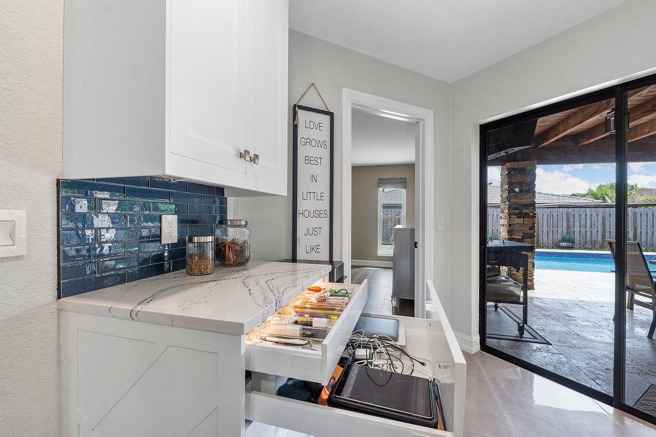 Welcome to your dream oasis. This stunning four bedroom plus office/den boast beautiful open floor plan perfect for modern day living. This large home has a gorgeous custom kitchen with a 10 Foot quartz countertop island, SS appliances, Custom walk-in pantry. New flooring throughout, all new modern bathrooms, tankless water heater, hurricane impact windows, Duel air conditioners, Roof 2013, New electrical panels, Private sparkling swimming pool. The expansive fenced in backyard serves as a private, tranquil retreat for both relaxation and entertainment. NO Homeowners association. Driveway fits up to 8 cars.