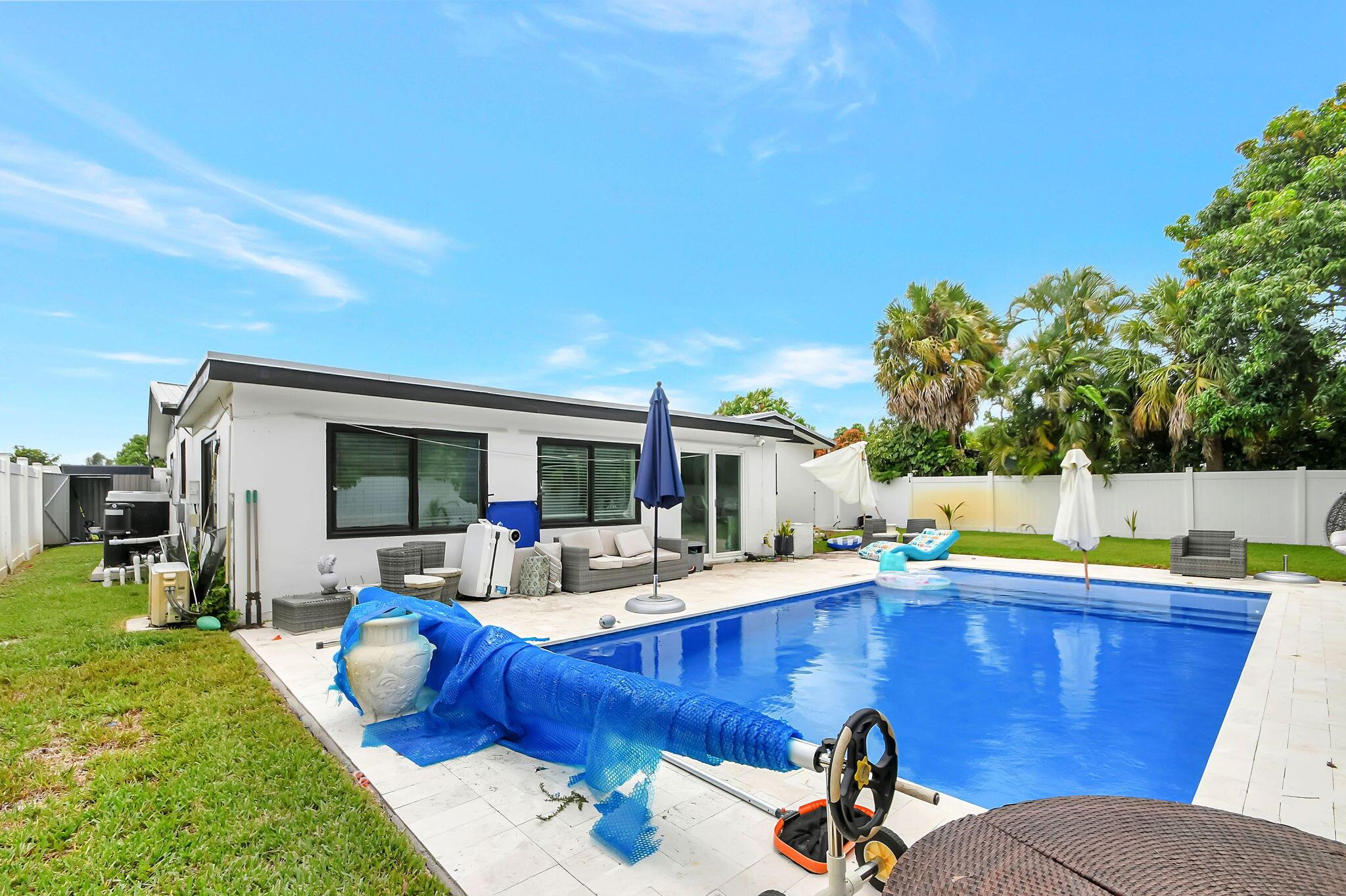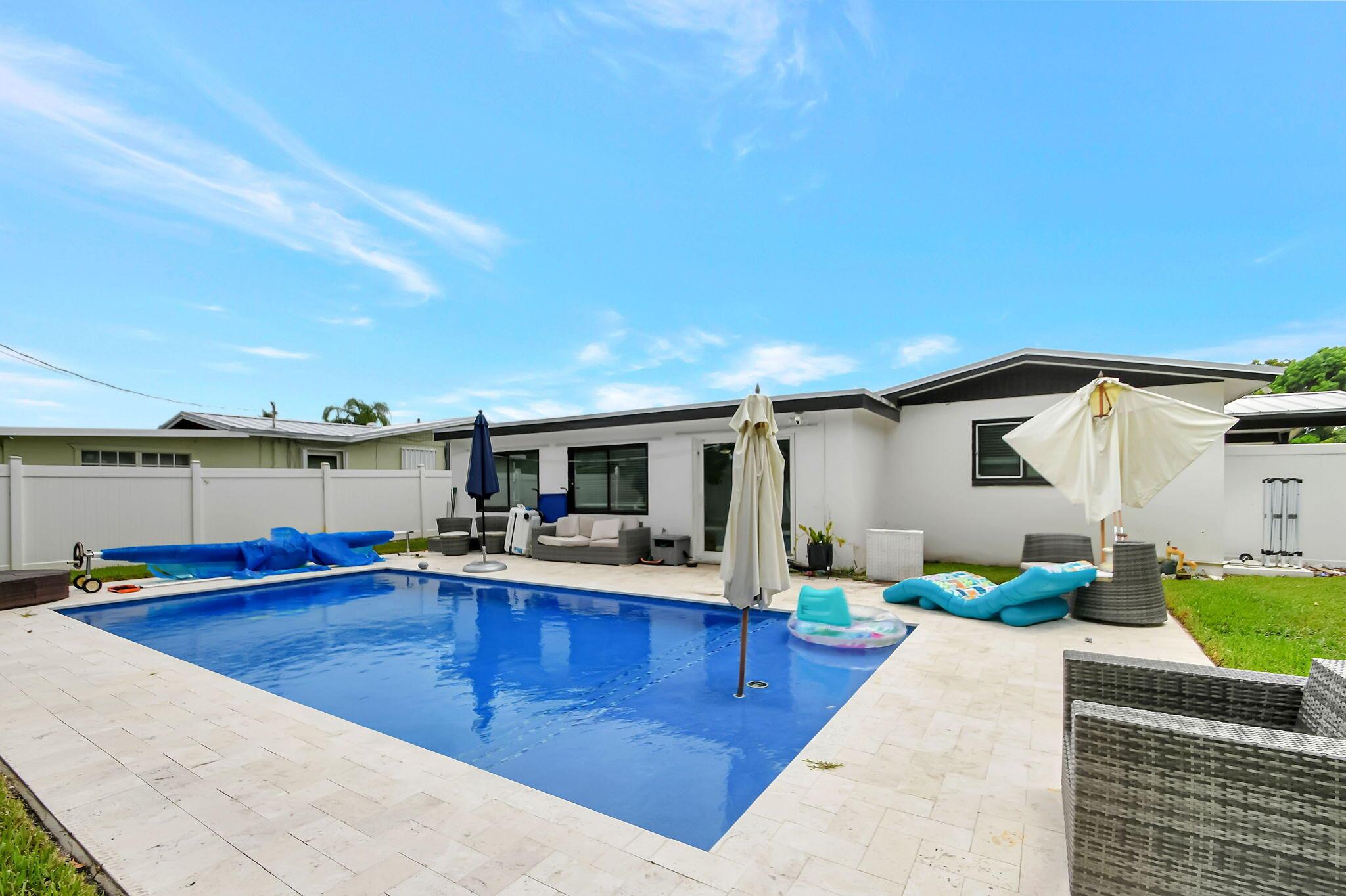 Welcome to your dream home in the heart of western West Palm Beach, FL! This stunning 4 bedroom, 2 bath residence offers the perfect blend of comfort, style, and luxury. Nestled in a serene neighborhood, this property is a true gem for families and individuals alike.As you step inside, you'll be greeted by an open and airy floor plan, featuring a spacious living room filled with natural light. Step outside to your personal paradise - a pristine saltwater pool surrounded by lush landscaping and a spacious patio area. Whether you're lounging in the sun, hosting a barbecue, or taking a refreshing dip in the pool, this backyard is designed for relaxation and enjoyment. Hurricane windows, newer metal roof, new A/C and ducts, new hot water heater, and all newer appliances.