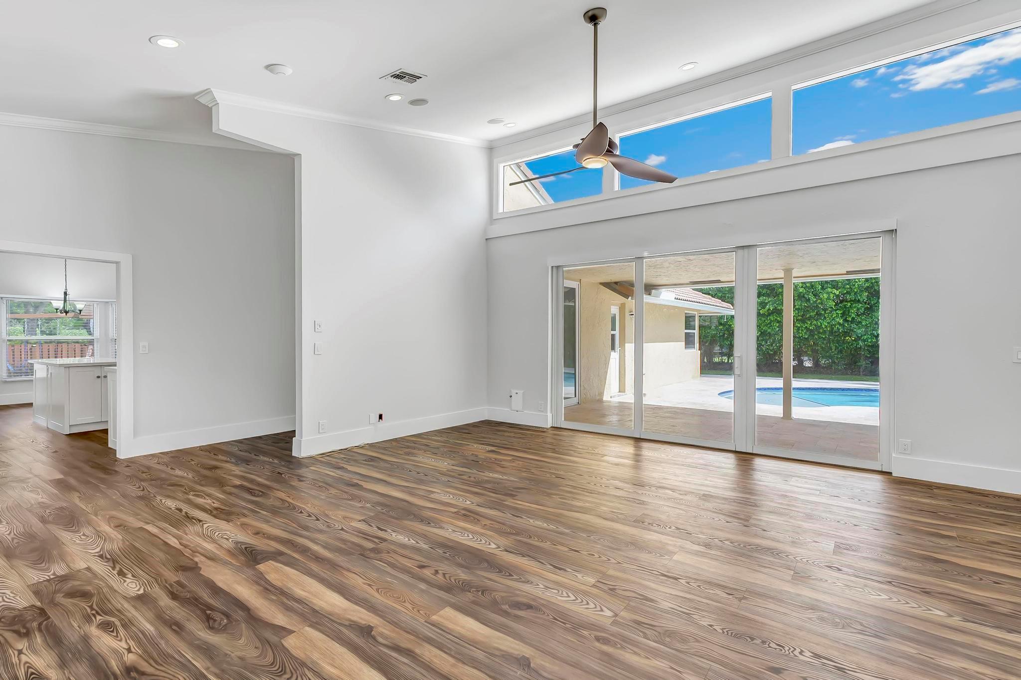Stunning 4-bedroom+ Den/Office , 3-bathroom corner home over 2,700 sqft , split floor floorplan with a 2-car garage and Remodeled salt water heated pool w/ travertine deck, situated on a CUL-DE-SAC with an expansive corner lot over 14,000 sqft in a great school district. ROOF IS 2006. The newly remodeled kitchen features stainless steel appliances and elegant quartz countertops. The home is equipped with FULL IMPACT WINDOWS AND DOORS throughout, including SLIDING DOORS. Updated flooring. The master bedroom offers a large walk-in closet followed spacious master bath with a Jacuzzi whirlpool tub and a shower with body jets. The resort-like backyard includes a kidney-shaped saltwater pool with a sun shelf, a covered lanai with an outdoor kitchen & artificial grass. Privacy Fence 2023. No HOA