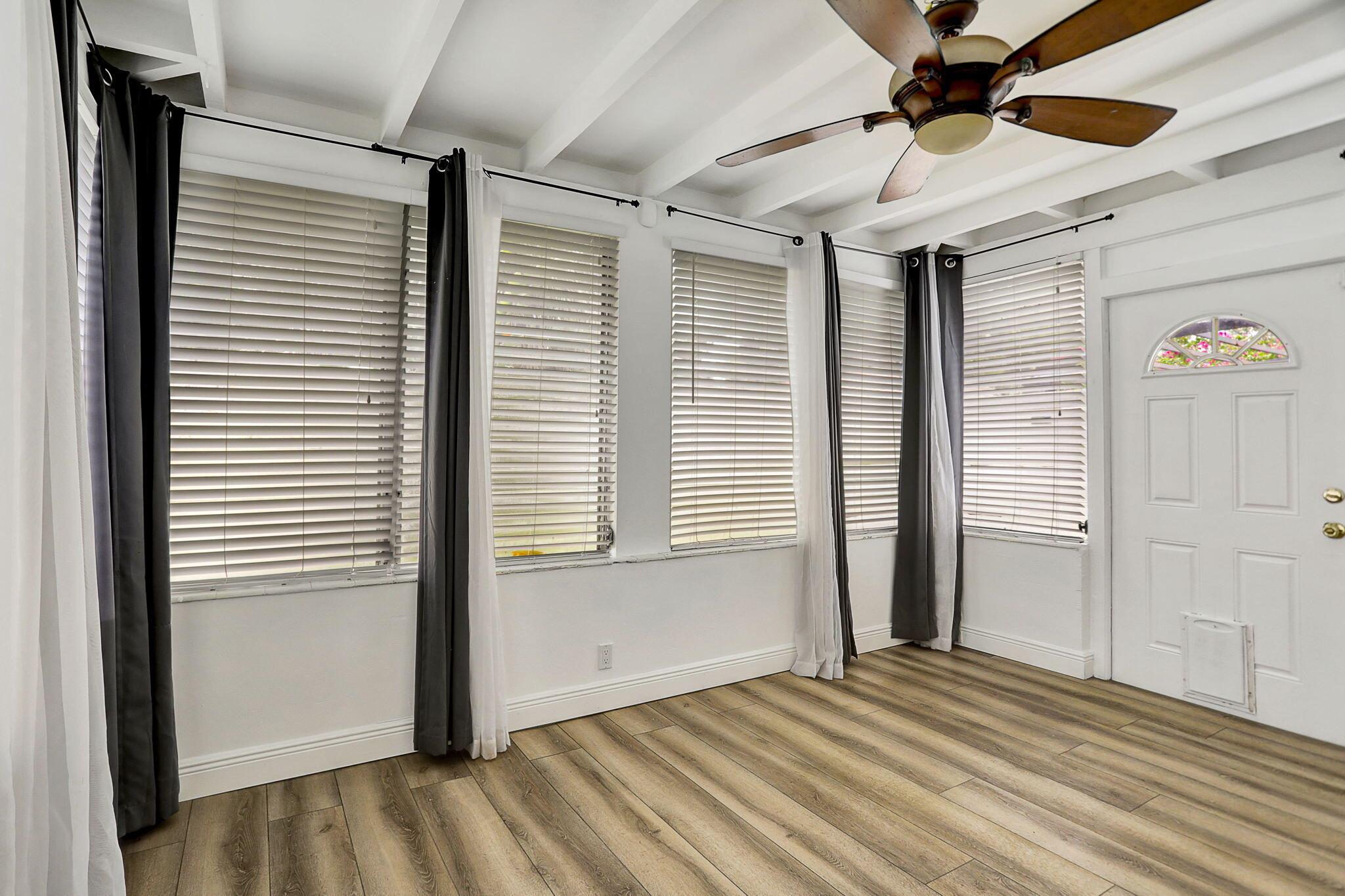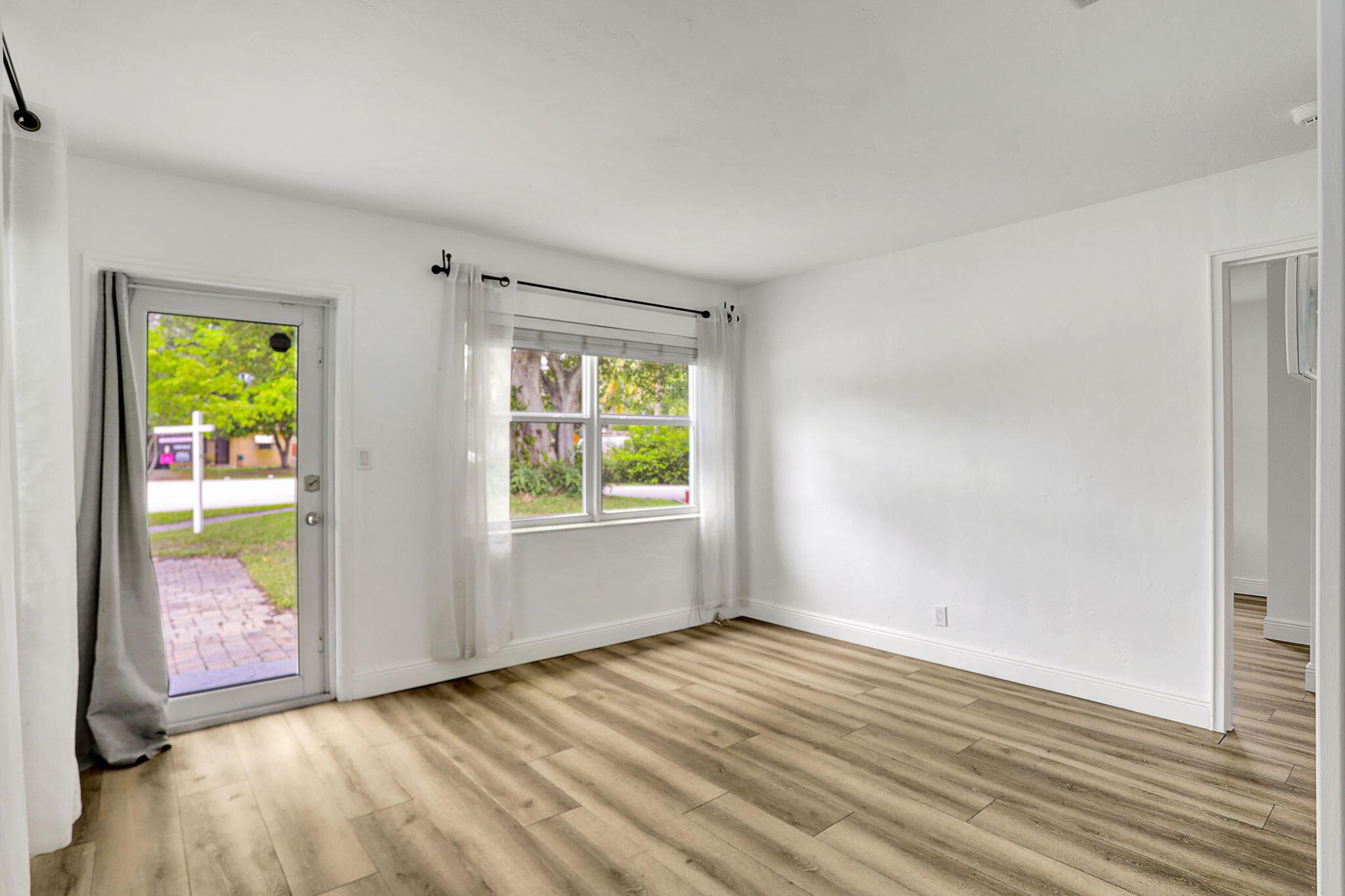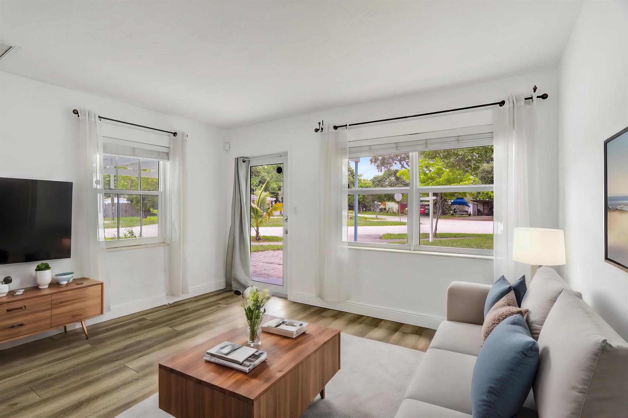 Welcome to this delightful 2-bedroom, 1-bathroom home with a family room, nestled in the Cresthaven neighborhood of Pompano Beach. This residence boasts new modern flooring throughout, fresh white paint, and impact windows and doors, creating a bright and inviting atmosphere. With a newer A/C unit and updated electrical panel, this home offers both comfort and peace of mind. The thoughtful layout seamlessly transitions into cozy living spaces ideal for relaxation and entertaining. The charming corridor kitchen flows effortlessly into the versatile family room, which can also serve as a dining area.