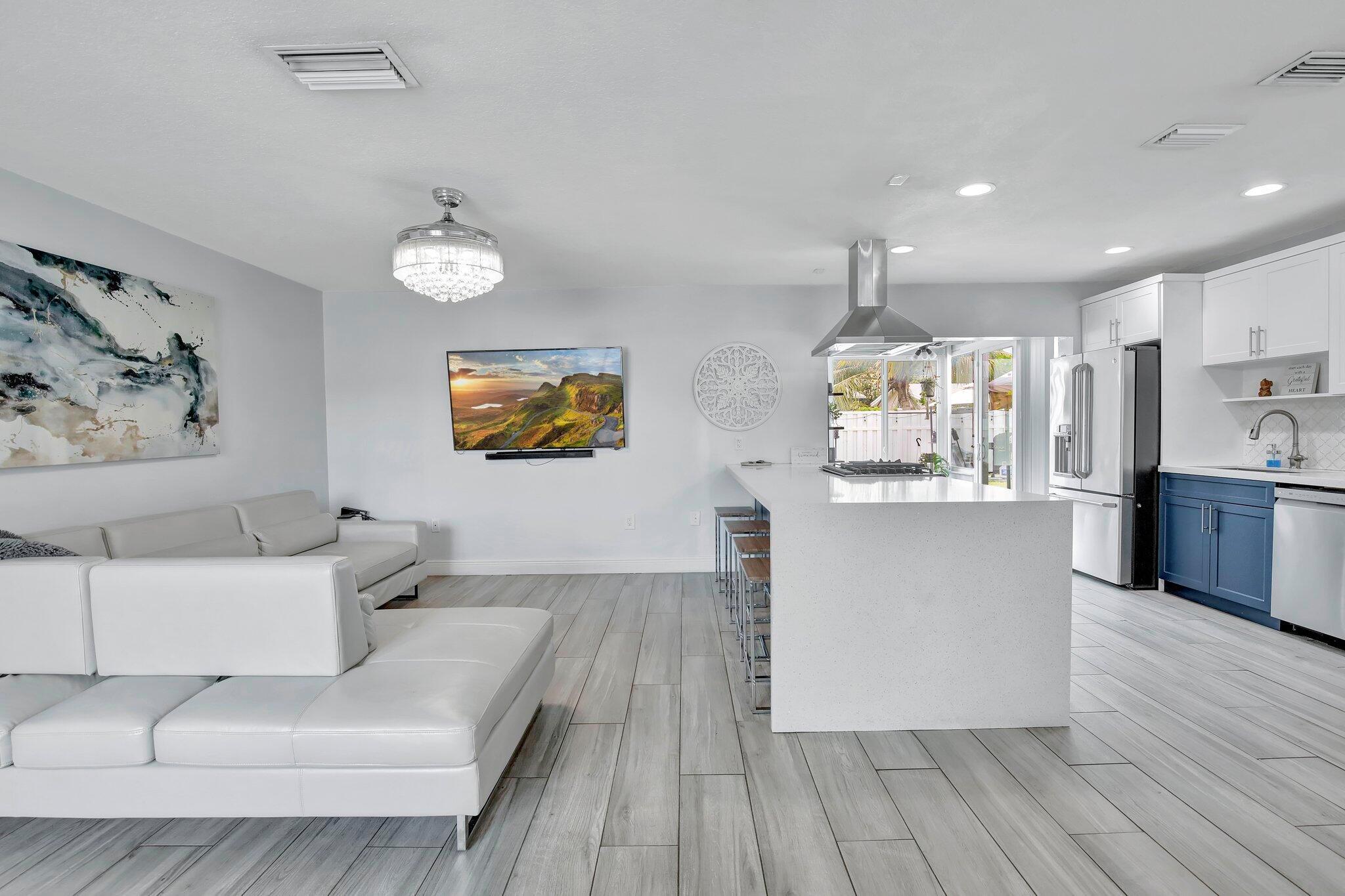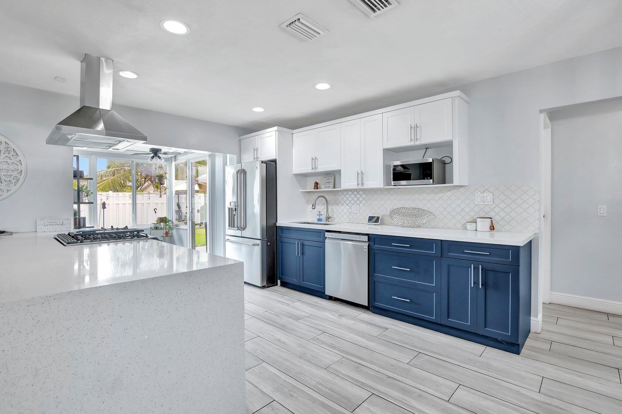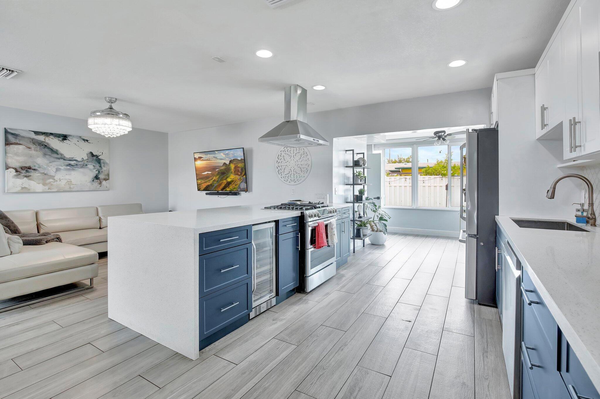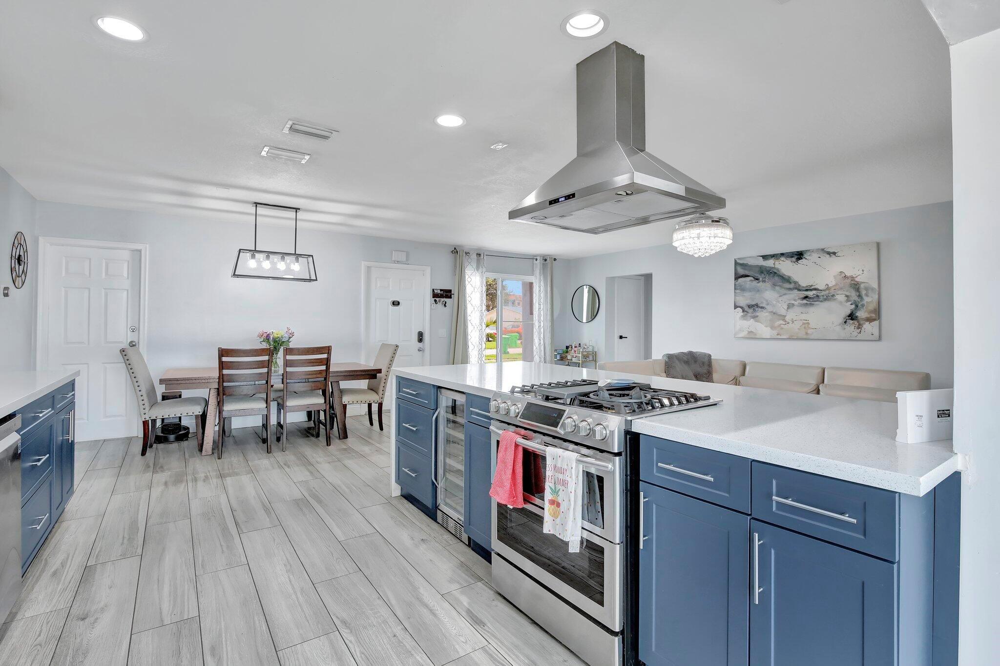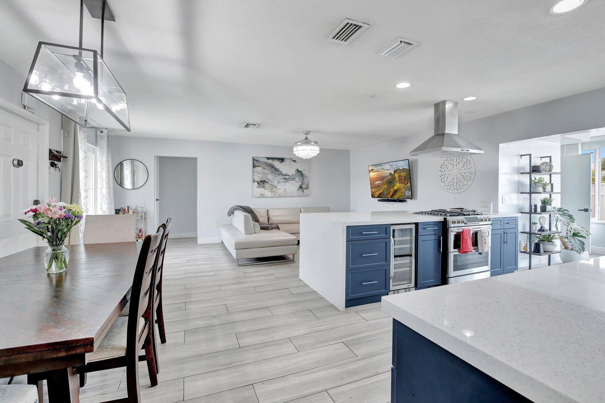 WONDERFUL Single Family Home Remodeled 3 Bedroom, 2 Bath with 1 Car Garage. Impact Windows Including Sliders at Back Patio. No Popcorn Ceilings. Gorgeous Porcelain & Tile Flooring throughout. Remodeled Kitchen w/ Gas Stove, Oversized Kitchen Island w/ Built in Additional Storage, SS Appliances, Built In SS Wine Fridge. Quartz Countertops. GREAT LAYOUT FOR ENTERTAINING! Both Bathrooms Remodeled. Custom Shower in Primary Bathroom, Large Primary Bdrm w/ His & Her Closets. Solar Panels, Fenced Yard for Privacy. Above ground pool w/ pool pump. New Roof 2017, Washer/Dryer 2021, Water Heater 2019. Circular Driveway providing plenty of parking. NO HOA! Park a Boat or RV at YOUR HOME! PETS WELCOME! Pride of Ownership abounds here. Centrally Located with easy access everything. GREAT OPPORTUNITY!!