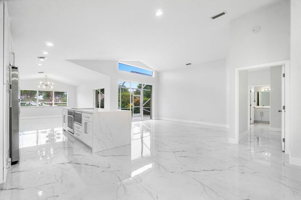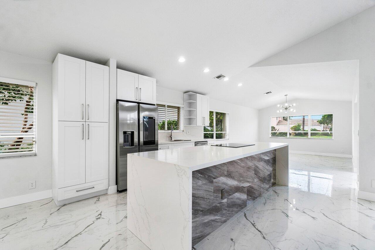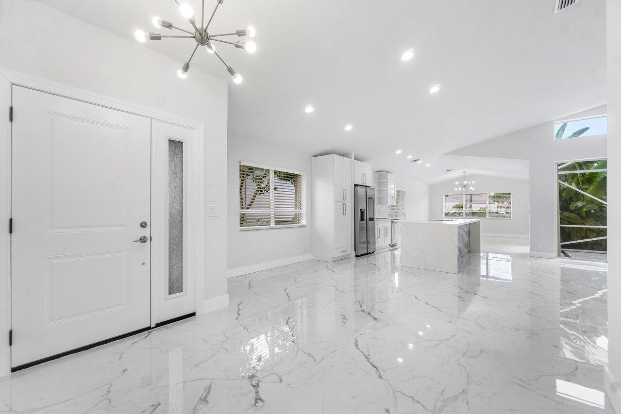 Beautifully remodeled single-story single-family home located in one of Boca Raton's top communities with A-rated schools. The open floor plan seamlessly connects living areas. Features include large format porcelain tile throughout, quartz countertops, new stainless steel appliances, a soaking bathtub, a separate shower, walk-in closets with built-in shelving, high ceilings, waterfront views, a screened patio, and a 2-car garage. Featured with propane whole house generator!