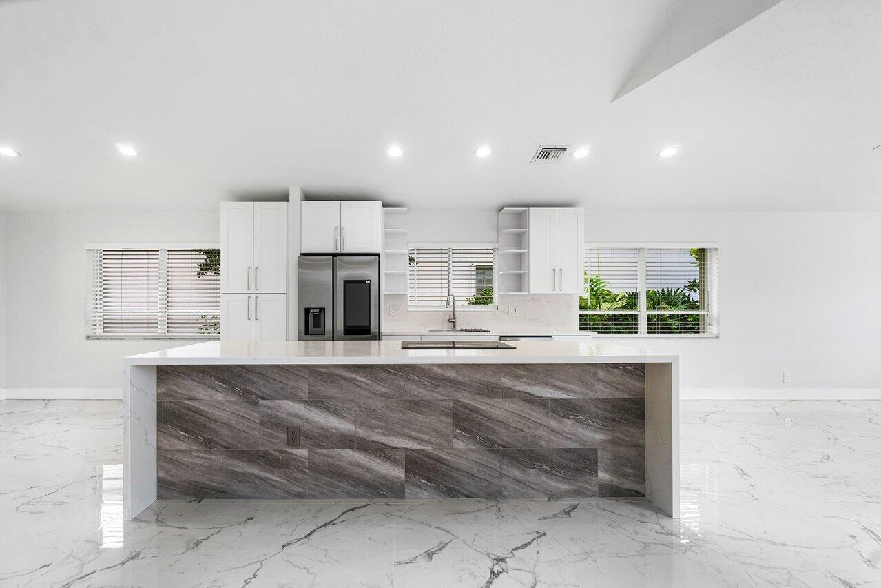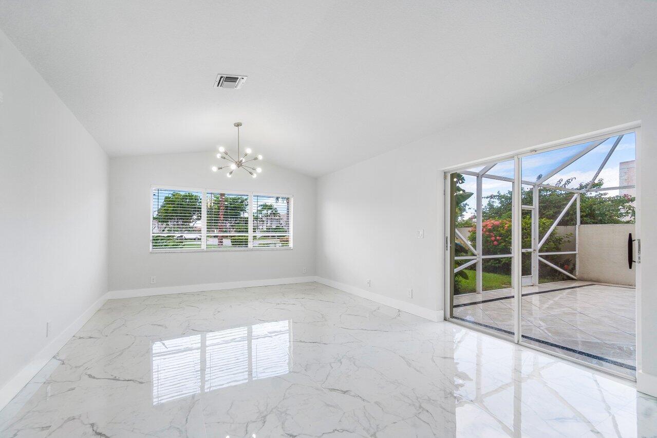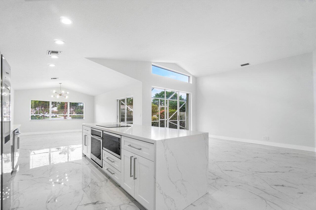 Beautifully remodeled single-story single-family home located in one of Boca Raton's top communities with A-rated schools. The open floor plan seamlessly connects living areas. Features include large format porcelain tile throughout, quartz countertops, new stainless steel appliances, a soaking bathtub, a separate shower, walk-in closets with built-in shelving, high ceilings, waterfront views, a screened patio, and a 2-car garage. Featured with propane whole house generator!