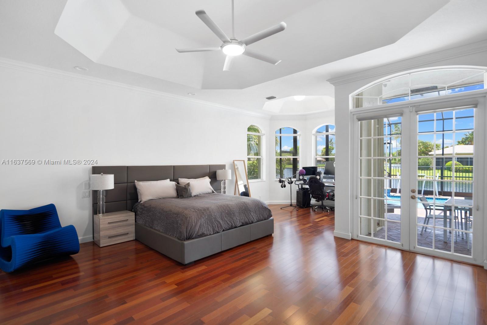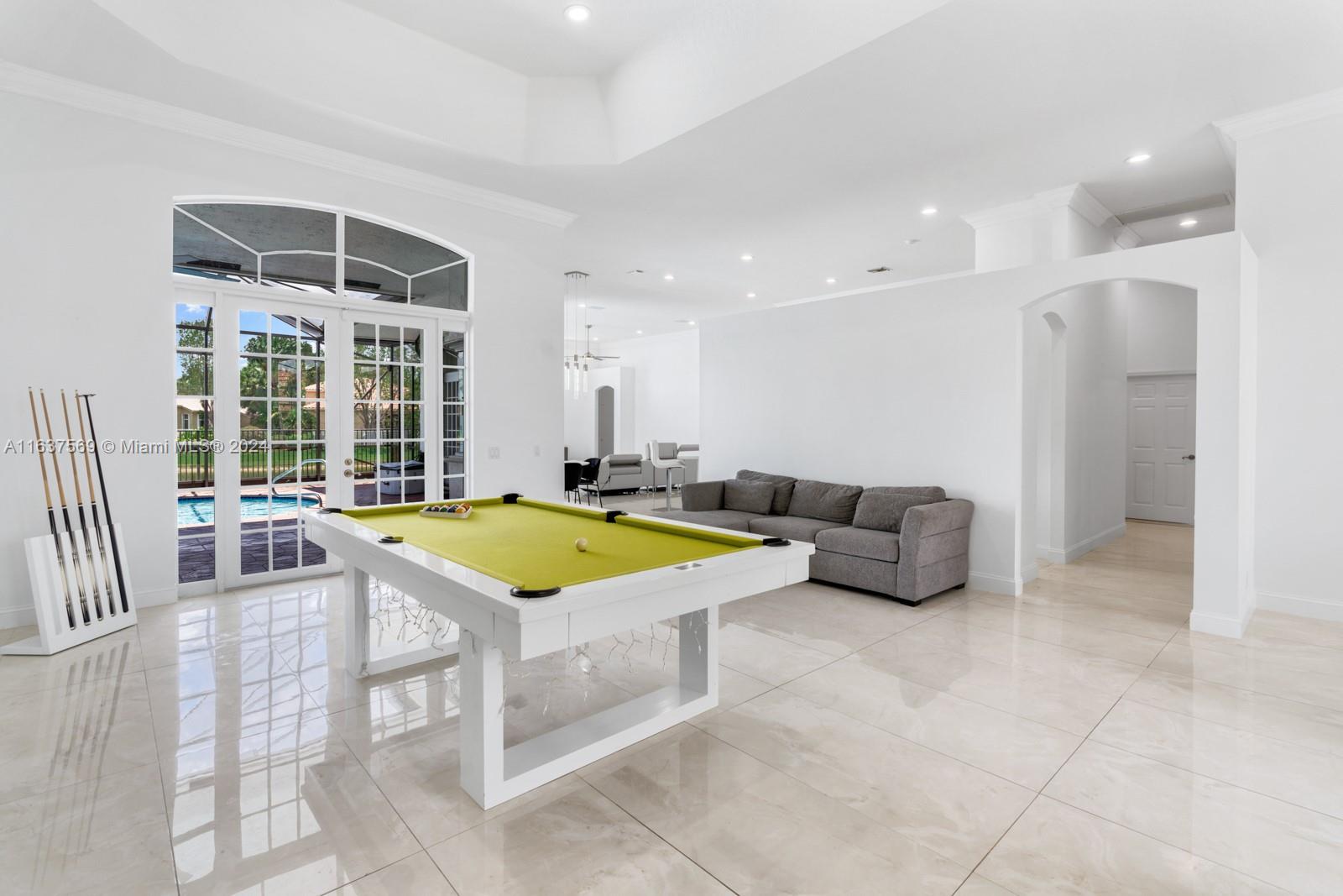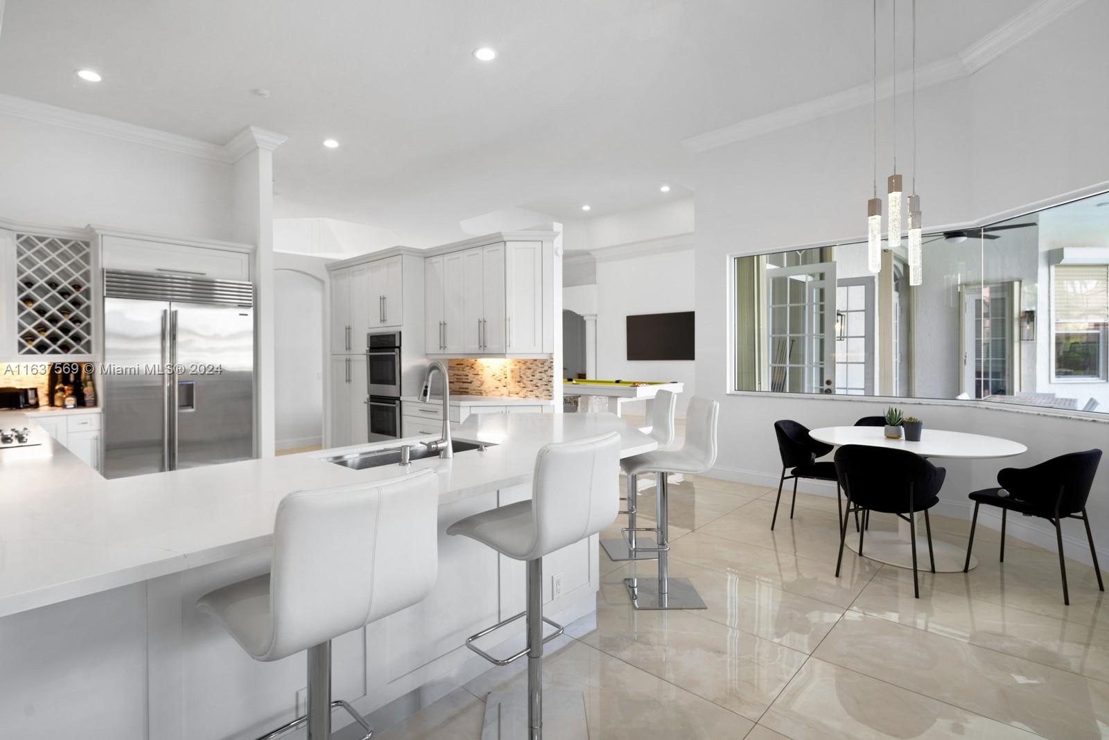 This beautifully renovated lakefront home in Weston Hills offers stunning golf views. With 5 bedrooms, 4.5 bathrooms, an office, and a 3-car garage. Situated on a meticulously landscaped 16,240 sq ft lot, this home showcases vaulted ceilings, new porcelain tiles, and elegant wood flooring. The updated kitchen features quartz countertops, double ovens, a Sub-Zero fridge, a Bosh dishwasher, and a Ruvati stainless sink. The primary suite is a luxurious retreat with a sitting area and walk-in closets. The en suite bathroom boasts a new vessel tub, quartz counters, a rain shower, and chic lighting. All bathrooms have been refreshed with a modern design. Outside, enjoy the screened-in lanai and al fresco patio. This sought-after home offers an exceptional living experience in a prime location.