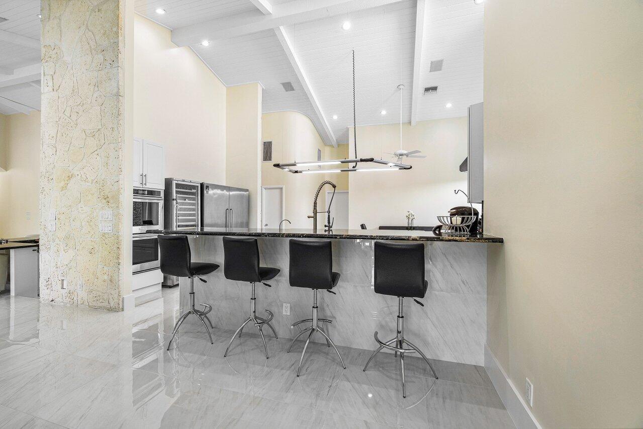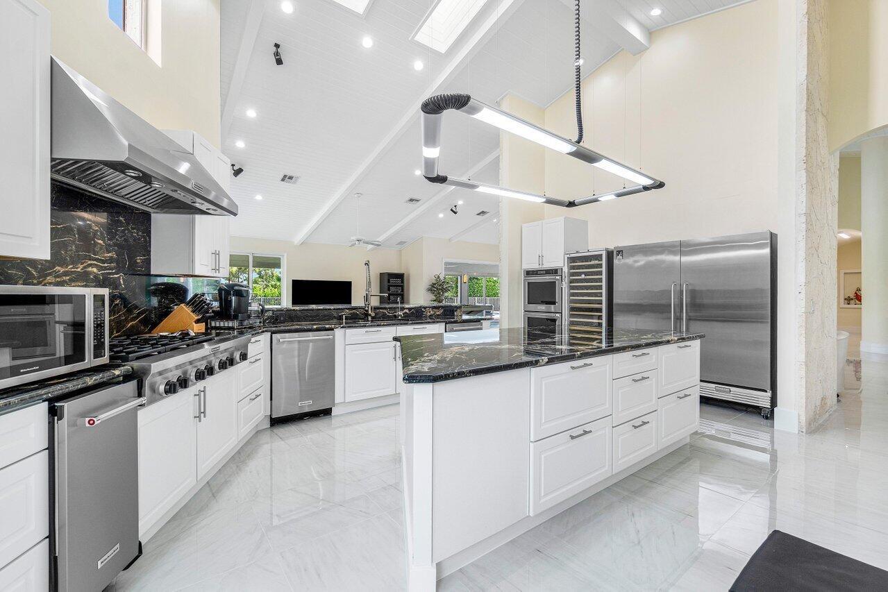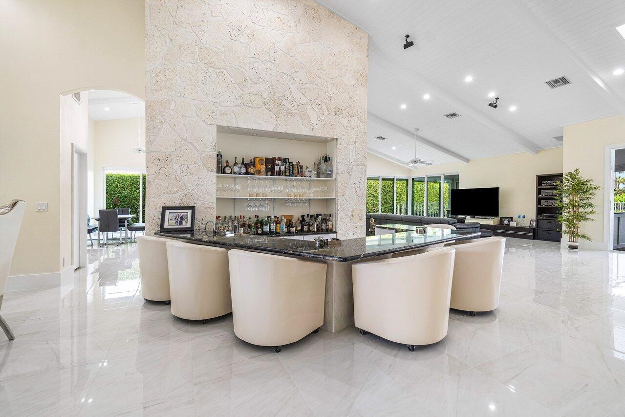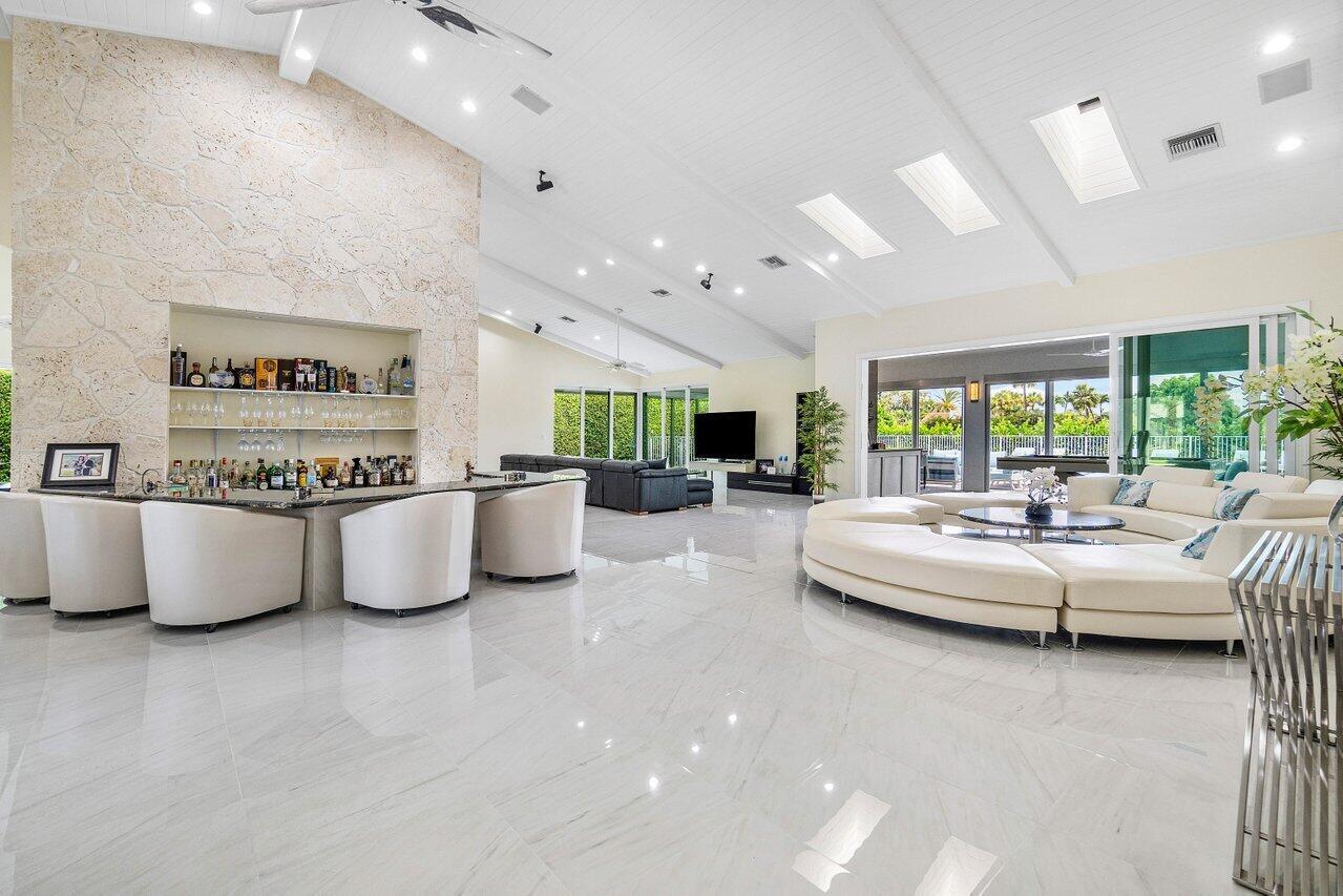 This spacious, contemporary home offers an exceptional living experience! The recent renovation features stunning new white porcelain floors & a chef's kitchen equipped with high-end appliances, including a double fridge, double freezer, two dishwashers, and a GAS stove. The large indoor-outdoor area, complete with a summer kitchen, opens to a private oasis: newly installed: large heated saltwater pool and spa with a sun-shelf, huge patio & even a mini putt--perfect for entertaining! The primary suite boasts his & her bathrooms and a massive walk-in closet. High ceilings throughout, hurricane impact windows with electric shutters, & a whole-house generator ensure full protection. Every detail considered, from the osmosis water system, surround sound inside & out to garage AC! Bocaire