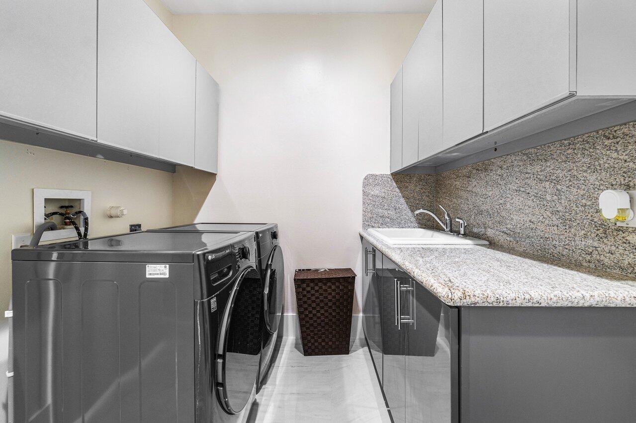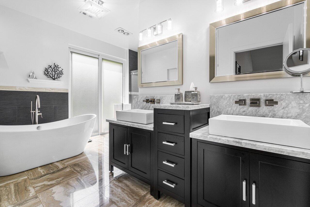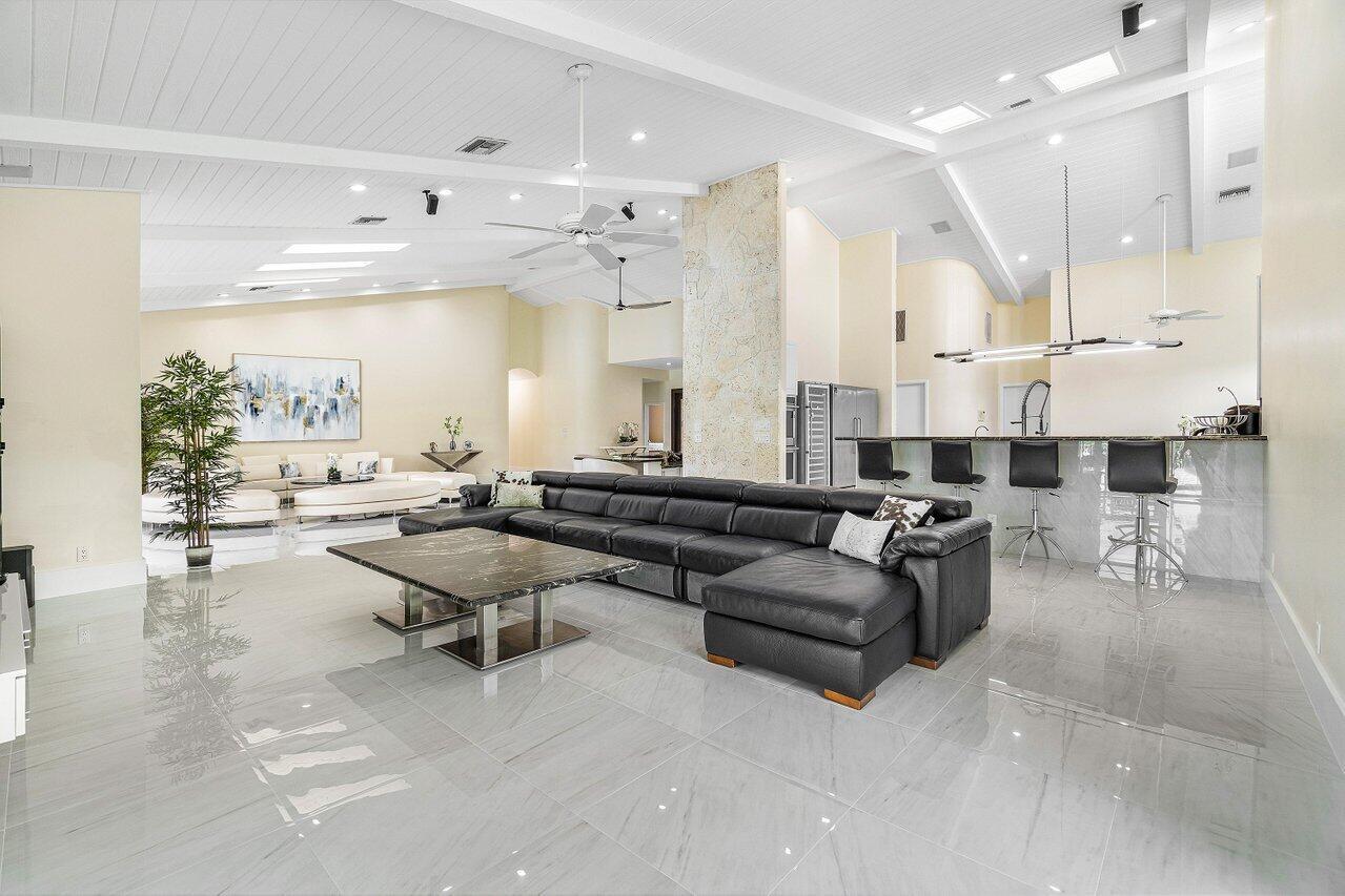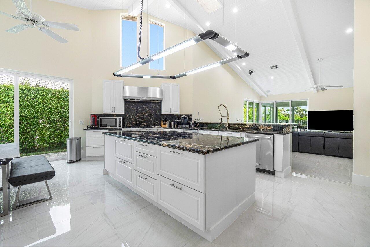 This spacious, contemporary home offers an exceptional living experience! The recent renovation features stunning new white porcelain floors & a chef's kitchen equipped with high-end appliances, including a double fridge, double freezer, two dishwashers, and a GAS stove. The large indoor-outdoor area, complete with a summer kitchen, opens to a private oasis: newly installed: large heated saltwater pool and spa with a sun-shelf, huge patio & even a mini putt--perfect for entertaining! The primary suite boasts his & her bathrooms and a massive walk-in closet. High ceilings throughout, hurricane impact windows with electric shutters, & a whole-house generator ensure full protection. Every detail considered, from the osmosis water system, surround sound inside & out to garage AC! Bocaire