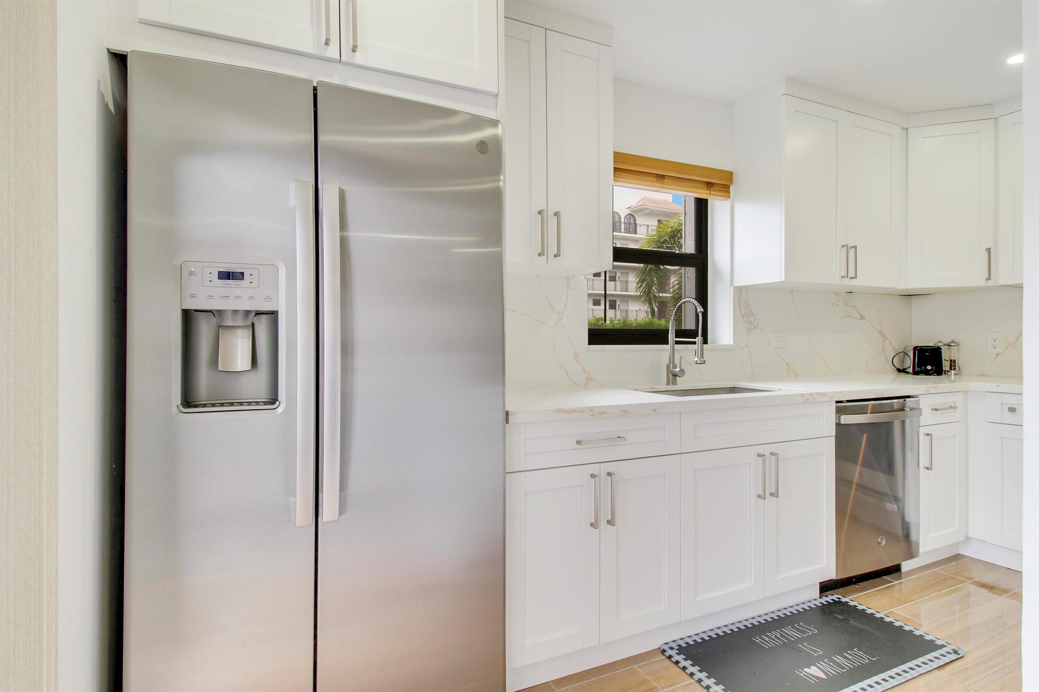 Discover this beautifully renovated townhouse just steps from Downtown Boca Raton! This two-bedroom gem features a spacious open-concept layout, perfect for modern living. Enjoy stylish updates, including ceramic tile floors, marble countertops, and stainless steel appliances.The ground floor offers a convenient half bath and a washer/dryer for added ease. Upstairs, elegantly finished bedrooms and bathrooms provide a touch of luxury. Step outside to your private, lush patio, ideal for relaxation and outdoor gatherings.Located in a boutique community of just 32 units, this home offers tranquility with easy access to Mizner Park, Royal Palm Place, Publix, Trader Joe's, CVS, and is only 1 mile from the beach. Don't miss out on this prime East Boca Raton opportunity!