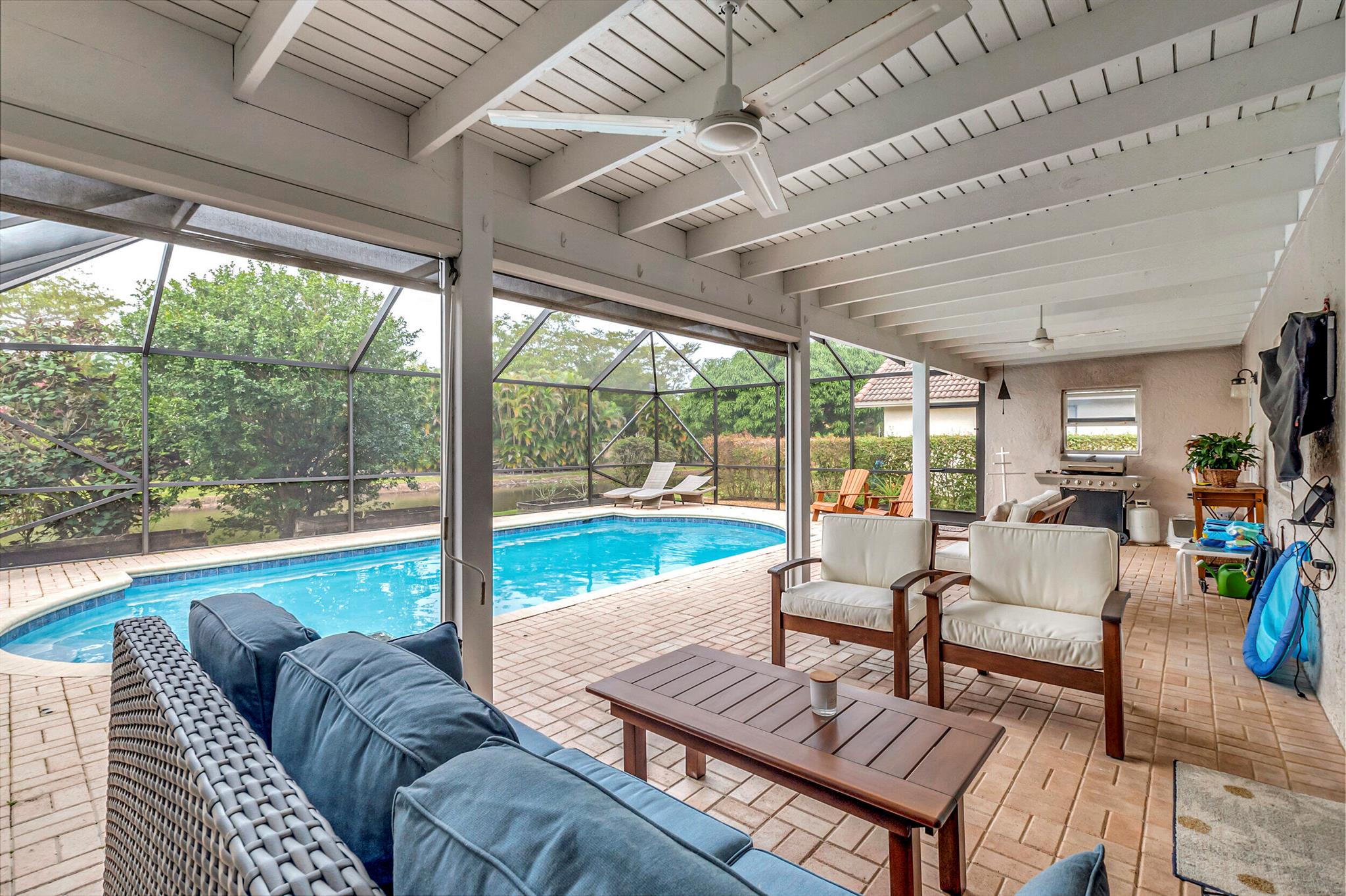 Immaculate, Updated, and Ready for You!This beautifully updated, move-in-ready home offers effortless living in a prime gated community. Featuring a bright open-concept design, large tile floors, wood flooring in the master, and stylishly renovated kitchen and baths -- including a luxurious clawfoot soaking tub -- every detail has been thoughtfully upgraded.Enjoy your private saltwater pool, recently renovated with a newly painted and rescreened pool enclosure, overlooking tranquil water views.Efficiency and security are built in with full impact windows and doors, solar panels (near-zero electric bills), a generator transfer switch, and a whole-home surge protector. The garage even boasts a finished epoxy floor and a second refrigerator.The HOA covers cable and lightning-fast fiber