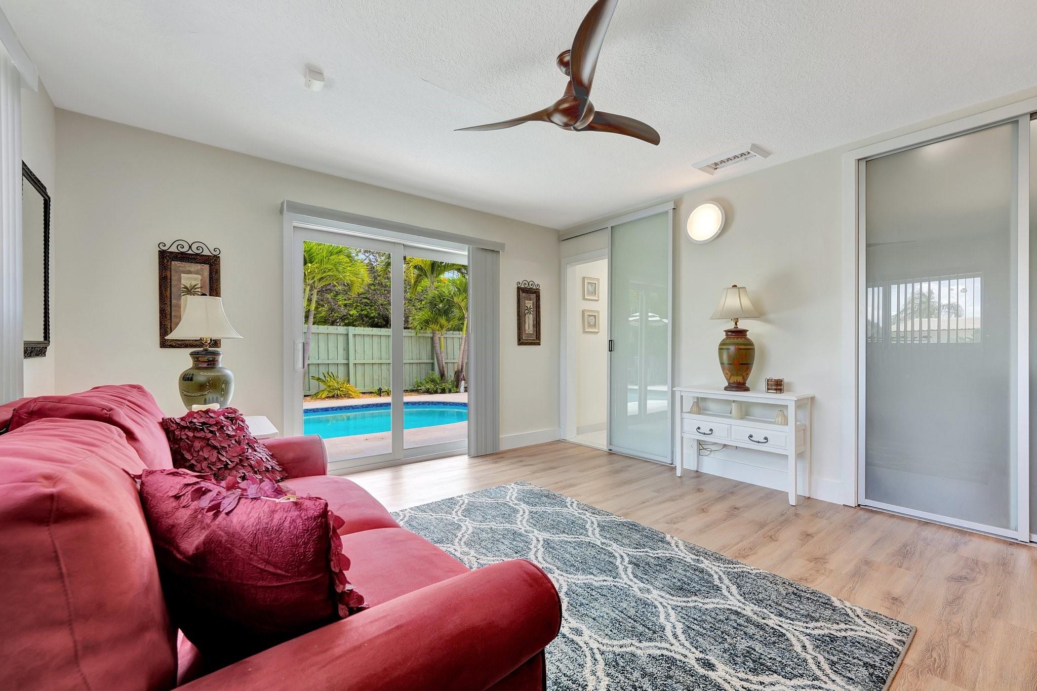 Extremely large 2 bedroom (sf similar to 3 bedrooms) Coral Ridge pool home on rare oversized, private corner property! Garage could be converted to 3rd bedroom! NO Flood Insurance required! Lush landscaping & totally renovated private pool. Move-in ready, impact glass, some electronic shades, new tile floors, totally renovated pool. Open concept living room for space & functionality. Custom Poggenpohl kitchen, Miele appliances, cocktail bar/butler's pantry & refrigerator. Two bright & spacious primary bedrooms & updated custom baths, sliders open to pool area, separate spa & outdoor shower. Outdoor entertaining oasis, retractable power awning over outdoor living & dining area. Solar panels. New marble drive way & path. Bayview School District.