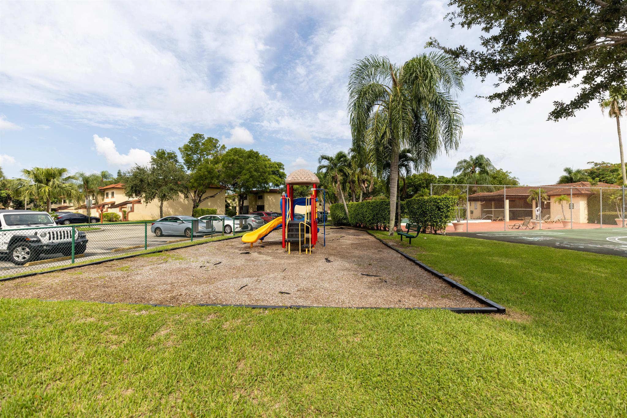 Just a wonderful Opportunity and Location for an owner Occupant or an investor wanting a decent size home nicely updated and well cared for by their owners!! Flooring all wood/Laminate finish carpet in master bedroom only. Appliances in great condition and wooden Kitchen cabinets.You must come and see this home close to the pool and basketball common areas and a great location with so many restaurants and supermarkets nearby. Roof redone/replaced by association in 2020 and all assessments have been paid. Air condition was replaced in 2020. Travertine tiles in second bedroom. Master bathroom was done about 4 years ago. No Pop corn in ceilings!!!Do Not wait this one out rare to find a property that has been given so much love over the years!! Washer and Dryer do not convey