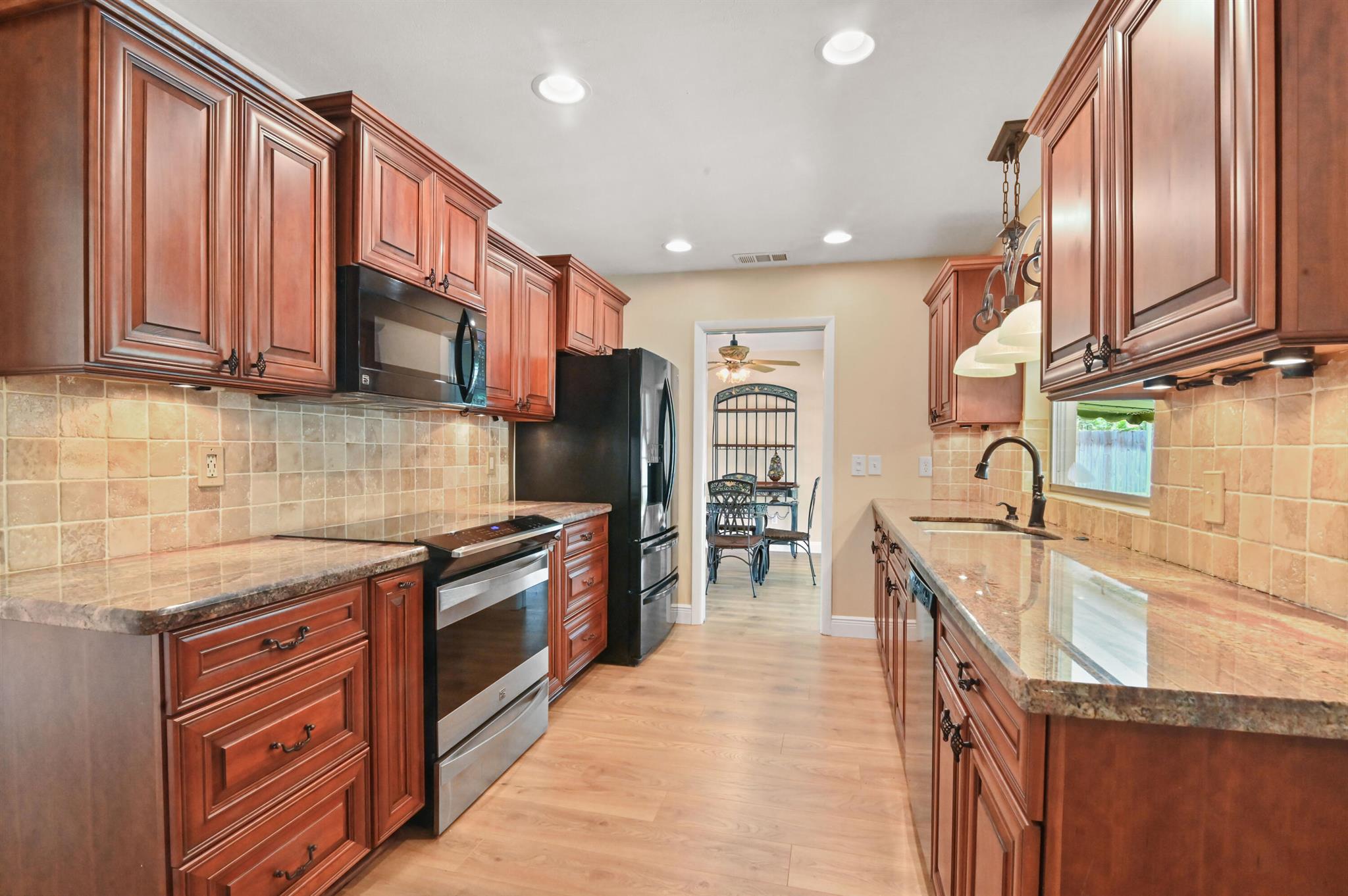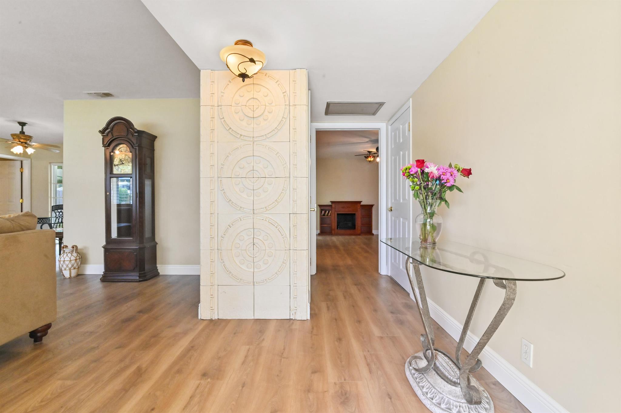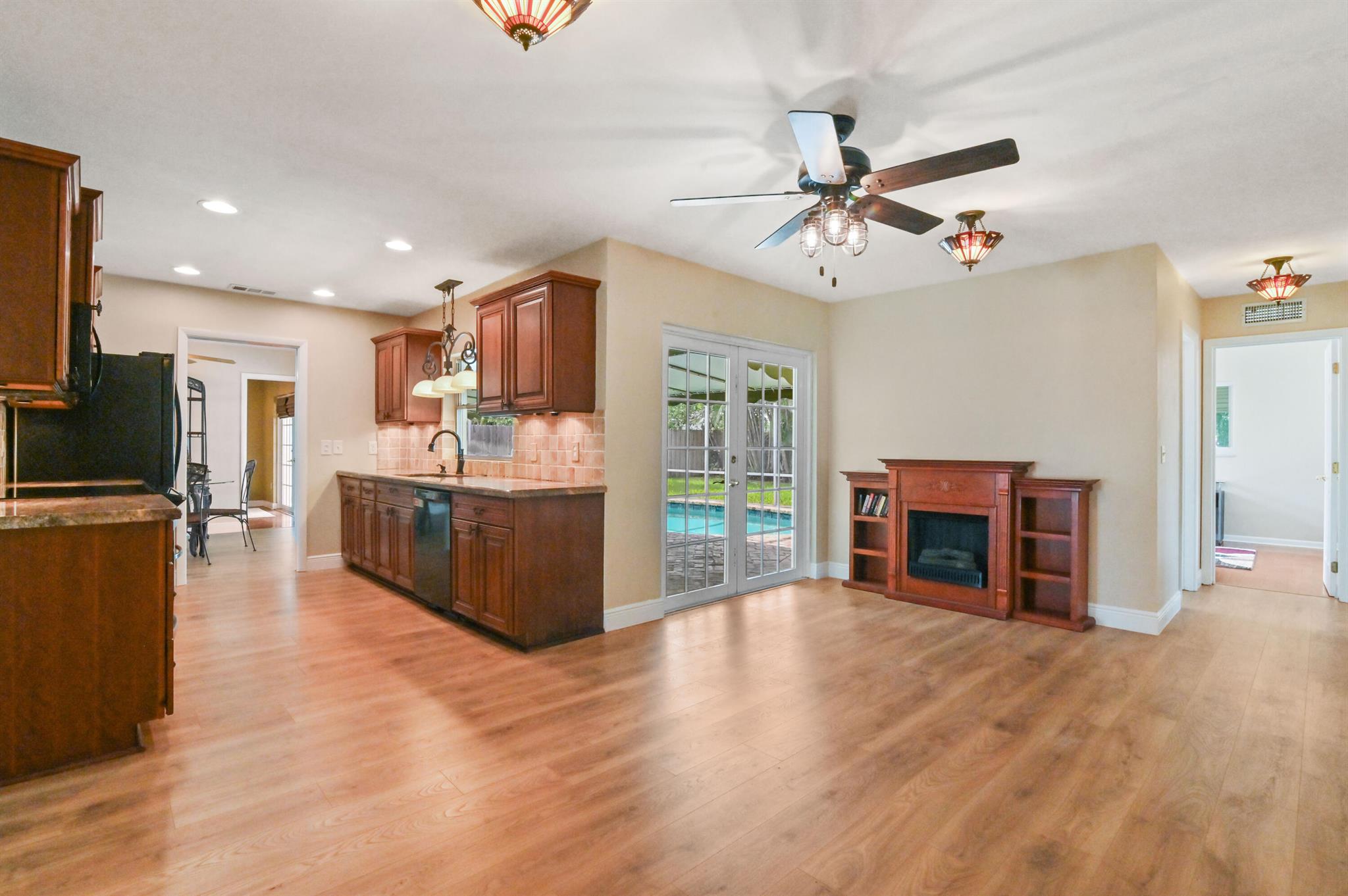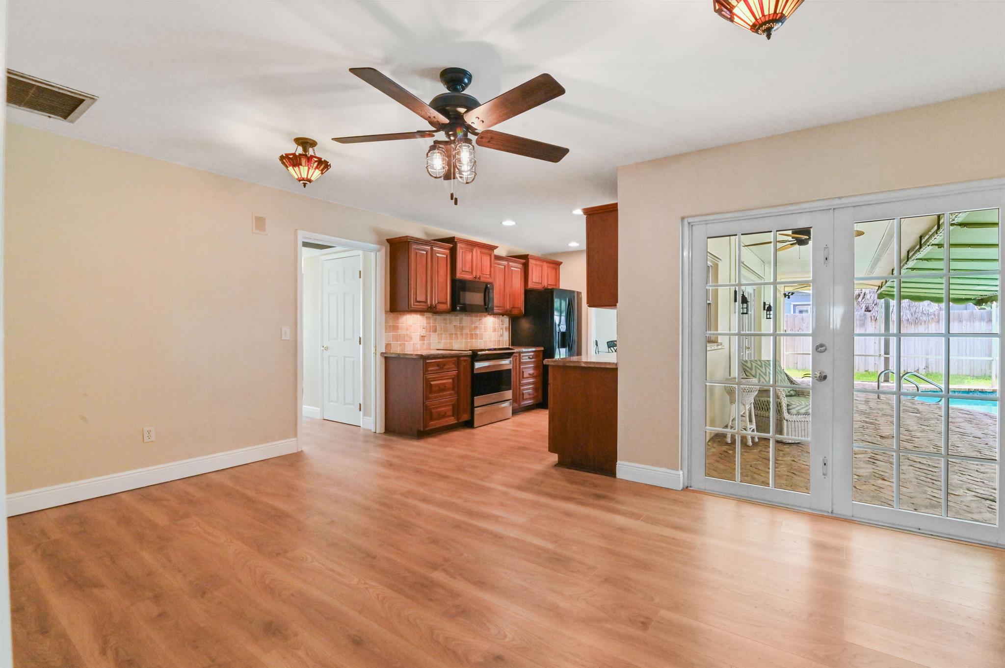 Welcome to your dream home in the highly sought-after, non-HOA community of Boca Raton Square! This immaculate single-story pool home boasts 4 spacious bedrooms and 3 pristine bathrooms, perfectly designed for comfortable family living. The charming front porch invites you into a bright and airy open living and dining area, with elegant French doors leading directly to a stunning patio and pool. The galley-style kitchen is a chef's delight, featuring gorgeous granite countertops, custom cabinets with pull out shelving, a stylish tiled backsplash, and seamless connectivity to the cozy family room.
