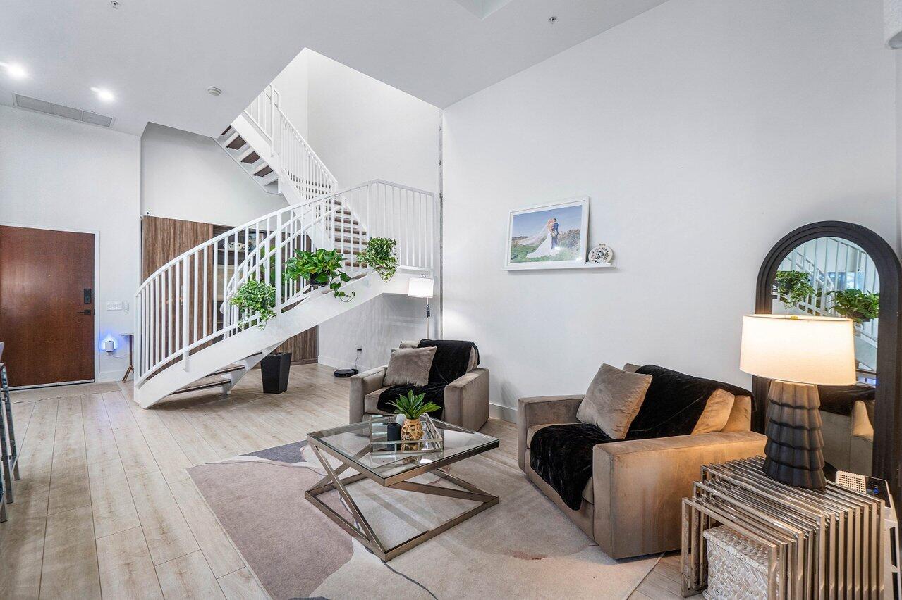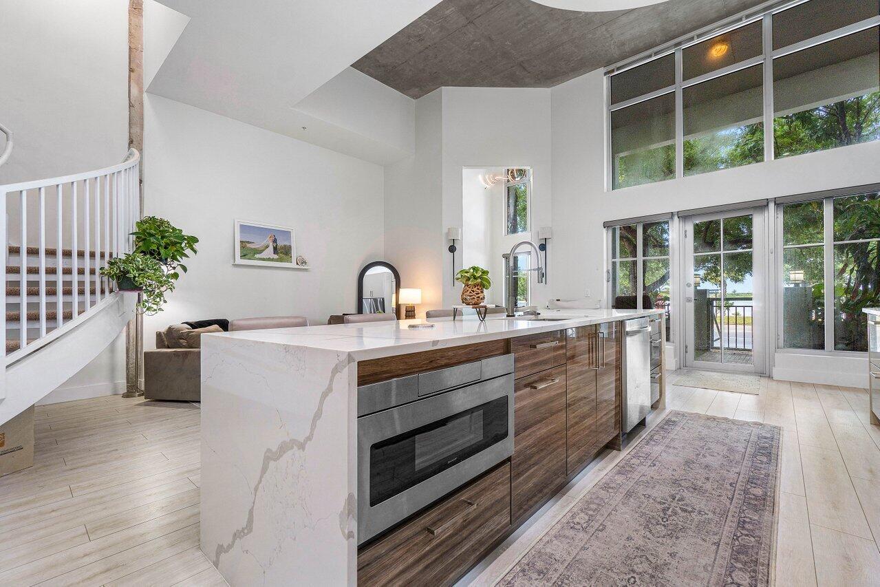 STUNNINGLY RENOVATED FROM TOP TO BOTTOM. 2 BEDROOM, 2.5 BATH TOWNHOME WITH LOFT PLUS DEN/OFFICE! VOLUME CEILINGS. ONLY 8 TOWNHOMES IN ENTIRE COMMUNITY. SEPARATE REAR ENTRANCE TO UNIT. OPEN & AIRY 16 FOOT CEILINGS. VERY UNIQUE SET UP. EXCELLENT INVESTMENT. CAN RENT IMMEDIATELY UP TO 12 TIMES PER YEAR! HUGE CENTER ISLAND WITH TOUCH FAUCET. QUARTZ WATERFALL COUNTER TOPS, NEW STAINESS SMART APPLIANCES. REFRIGERATOR W/WATER IN DOOR. COFFEE BAR. LED CUSTOM LIGHT FIXTURES. UNDER CABINET LIGHTING & ELECTRIC. ELECTRIC BLINDS. SMART LOCK & THERMOSTAT. DUAL SINKS IN MASTER BATH. FULL TIME FRONT DESK ATTENDANT. PRIME GARAGE PARKING SPACE. HURRICANE DOORS & WINDOWS. VERY PET FRIENDLY COMMUNITY. BRAND NEW DOG PARK COMING SOON. RESORT STYLE AMENITIES.