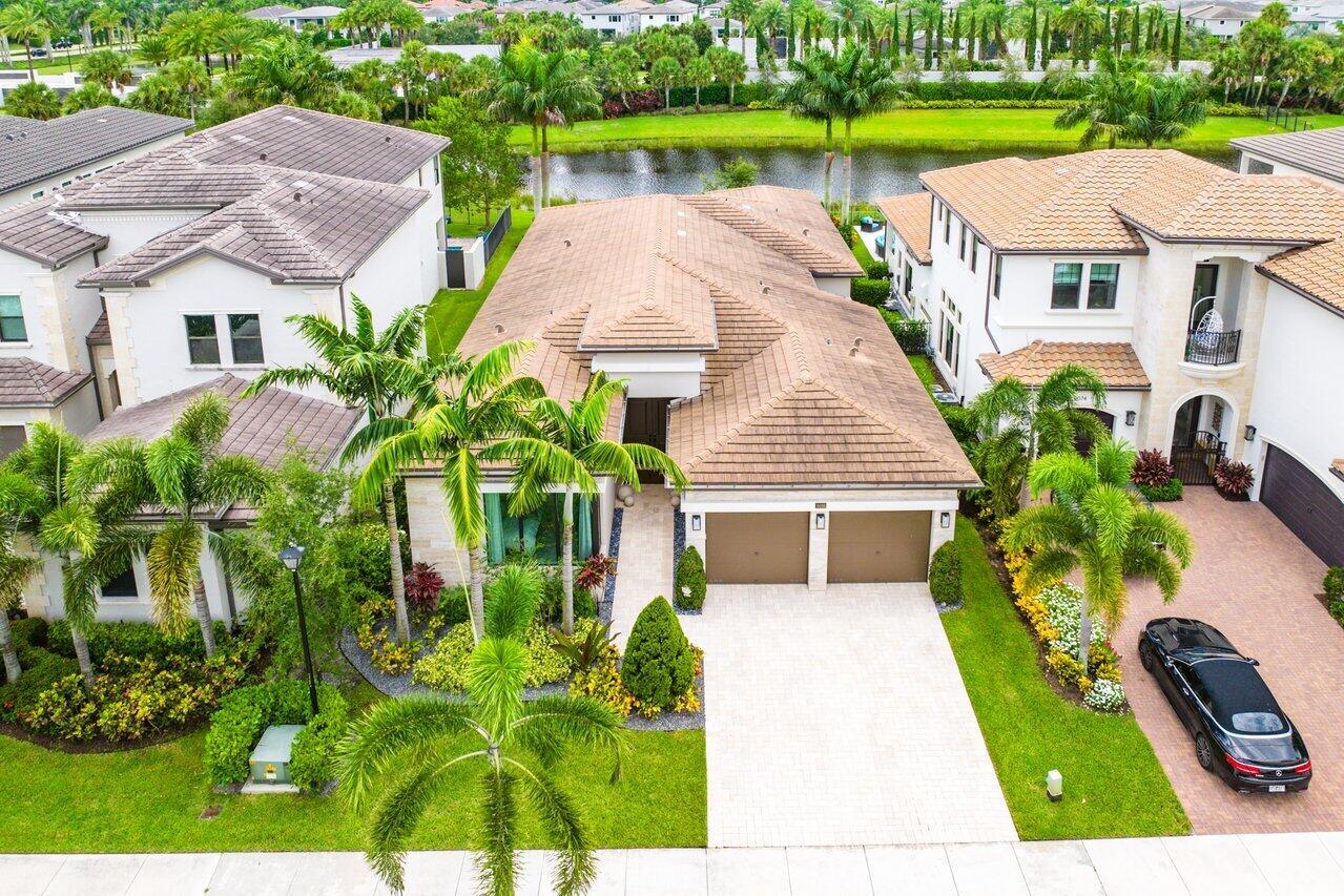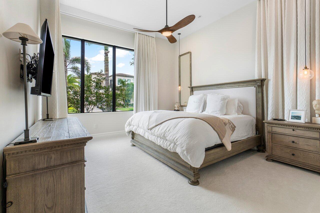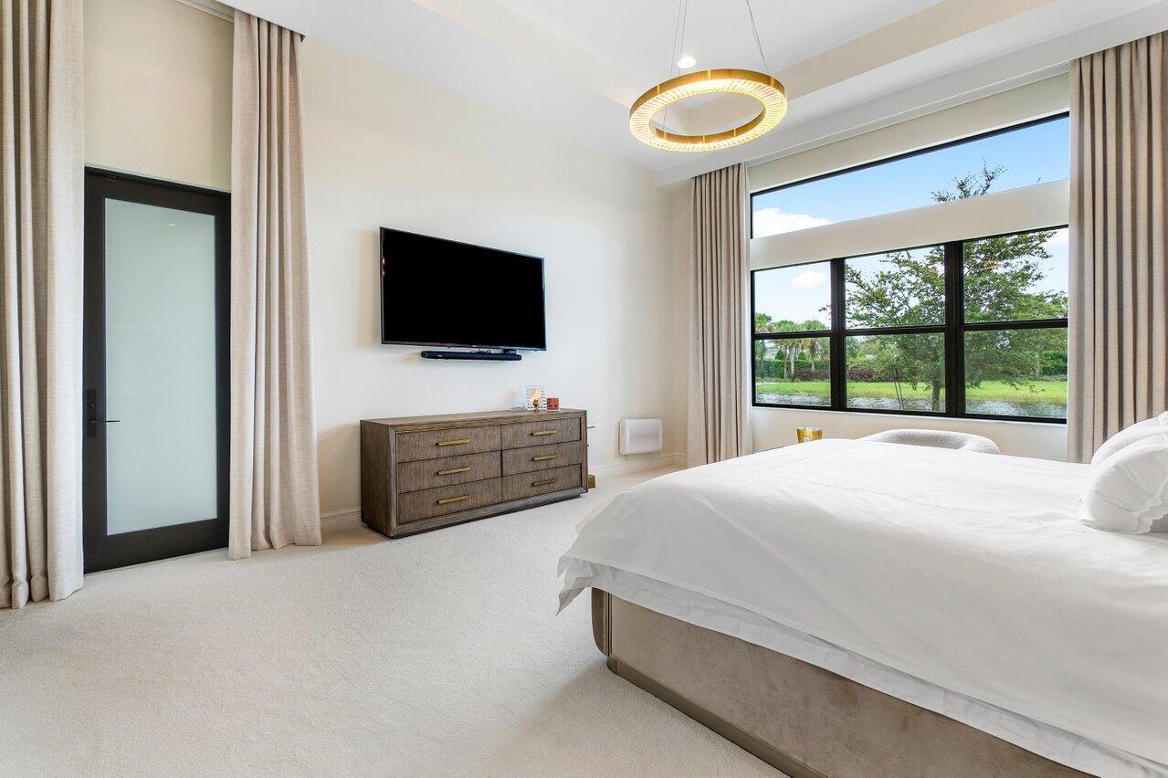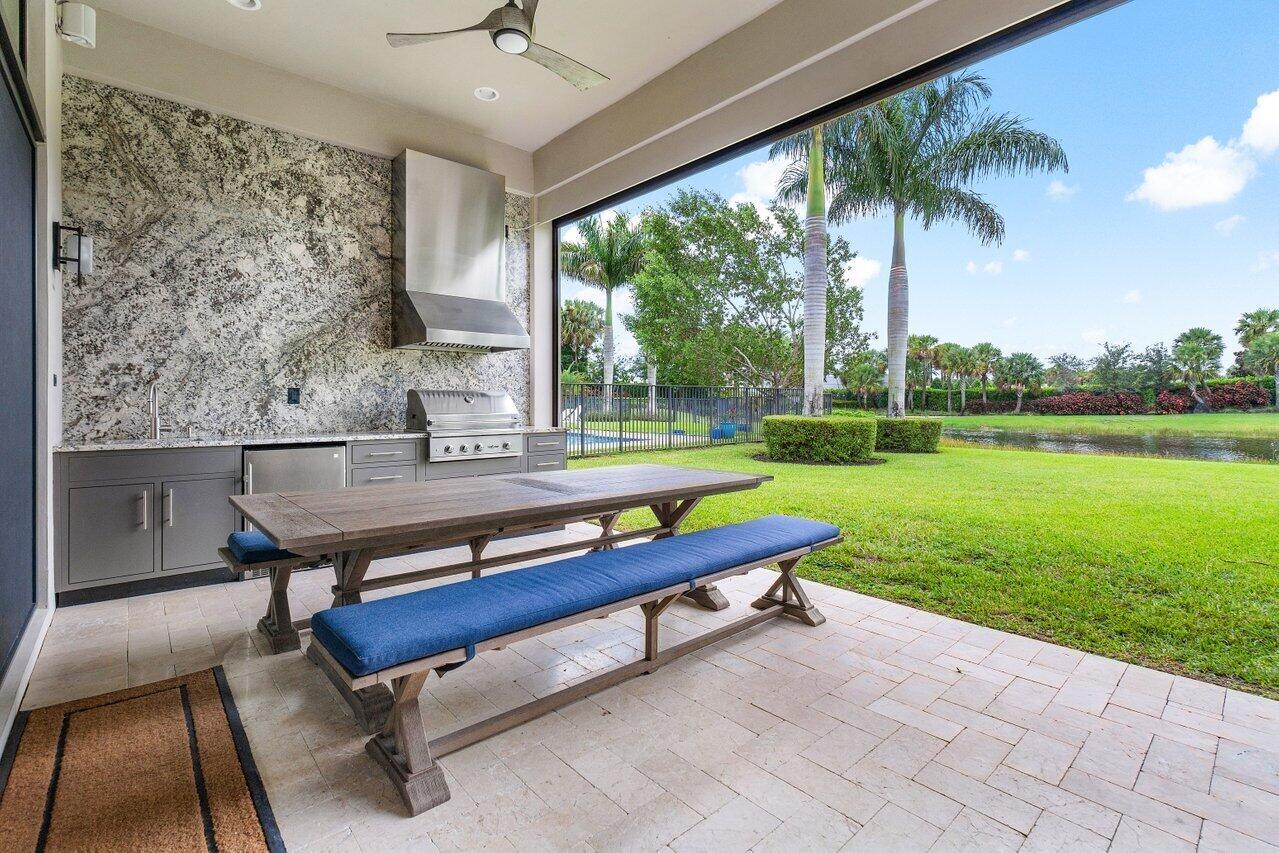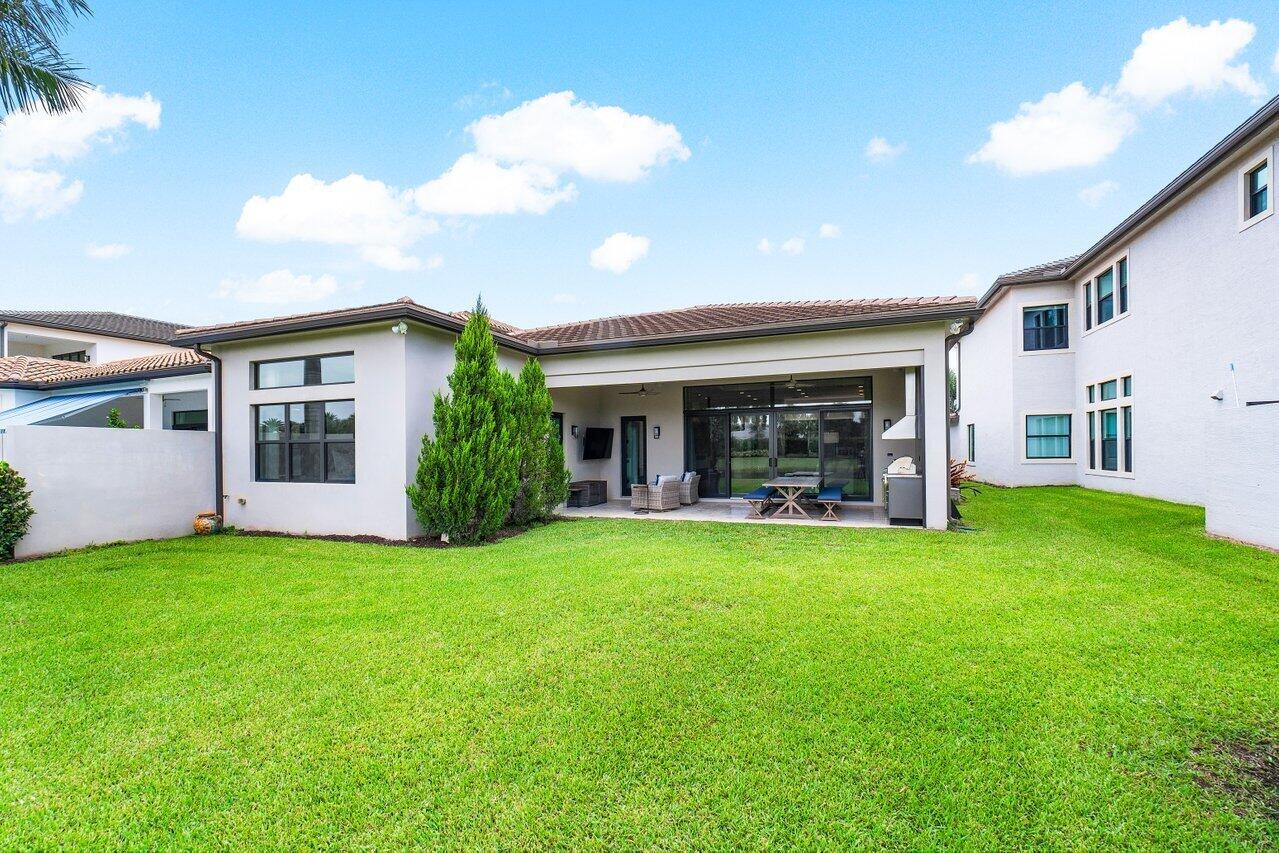 Modern elegance begins before you even enter the home! The contemporary exterior elevation sets the tone for this one-story Seville model in coveted Boca Bridges. Original owner spends half the year in Italy, this property feels brand new. Every inch of this home is upgraded including: gourmet kitchen with upgraded wood cabinetry, oversized waterfall quartz island, Generac generator, AC in garage, custom outdoor kitchen with vented hood, fridge and sink, motorized retractable outdoor screen, custom built-ins, moldings and electronic curtains/shades, full water filtration. This 3 bed (4th optional bedroom currently office) 3.5 bath home is lakefront with views of Italian cypress trees, no rear neighbors! Oversized lot, space for pool and extra land. Boca bridges offers top tier amenities!