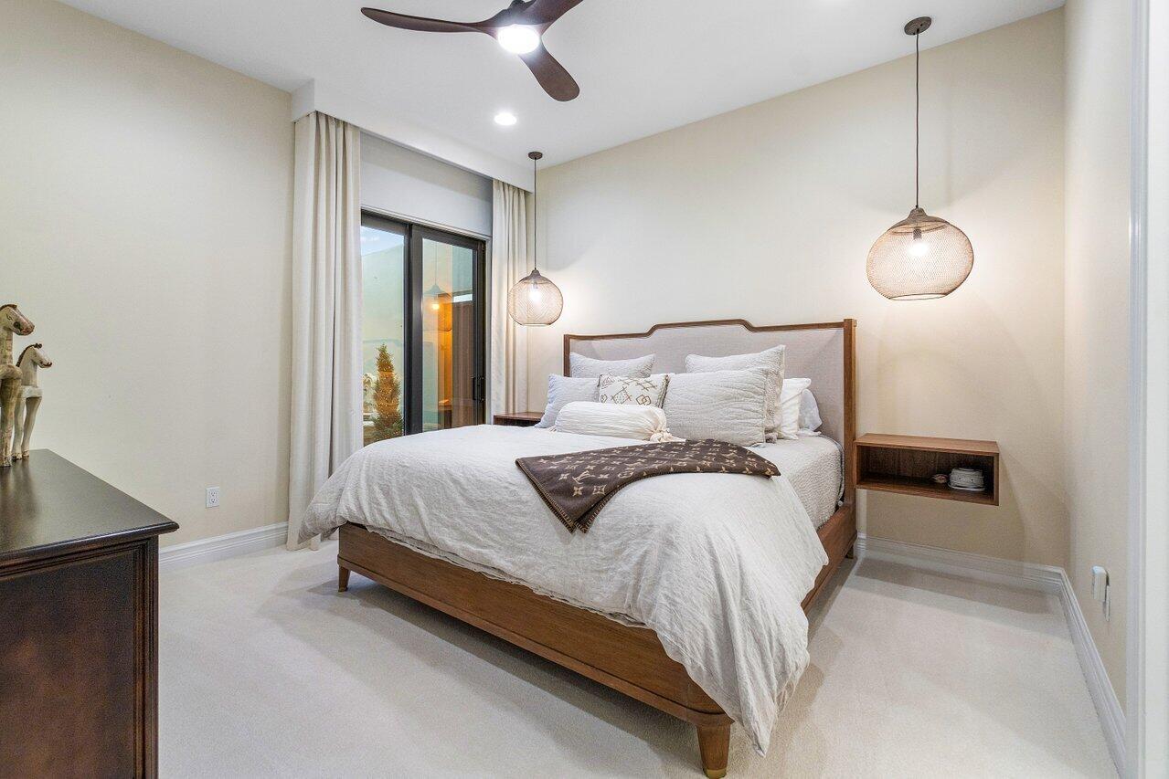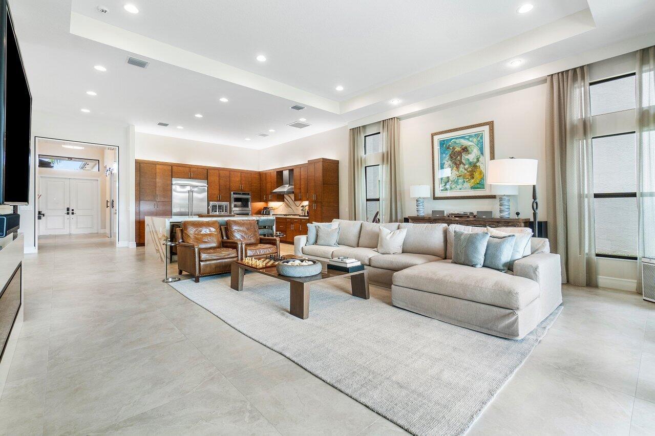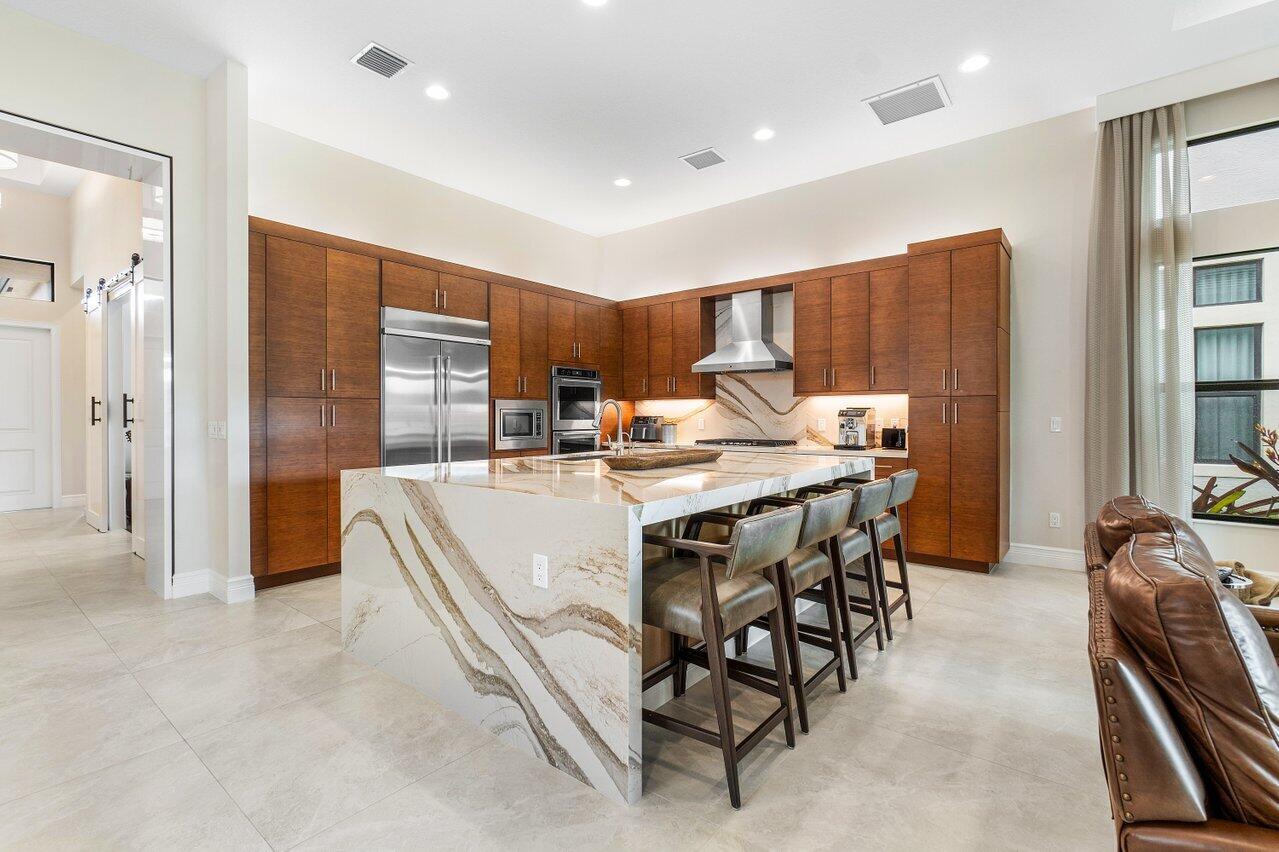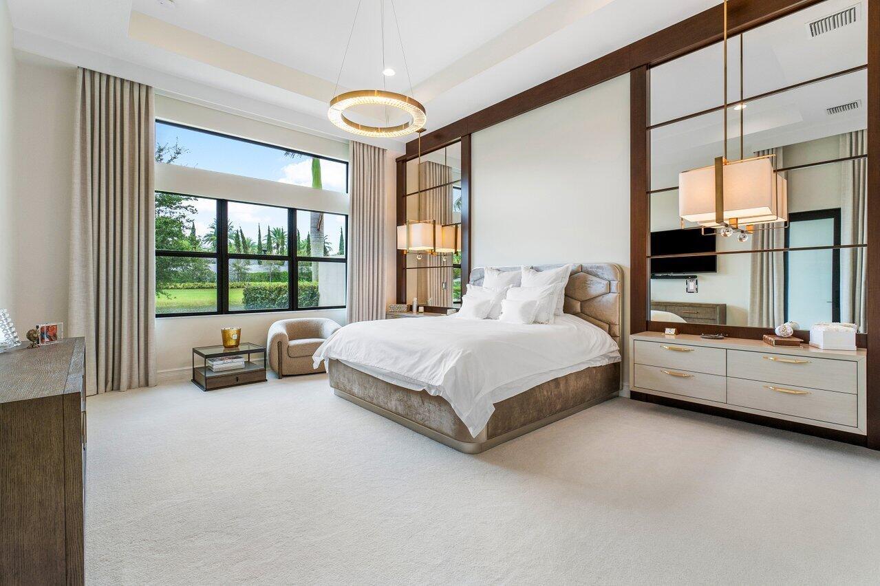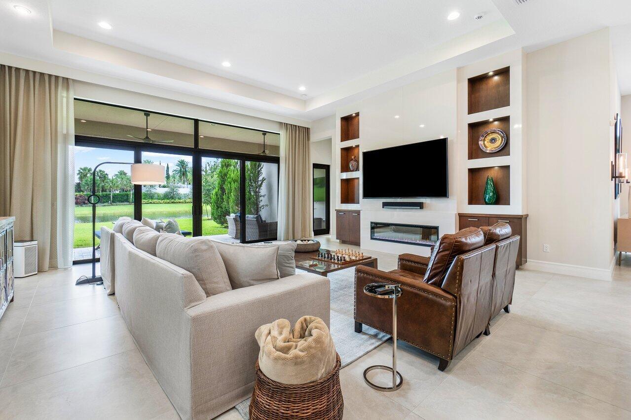 Modern elegance begins before you even enter the home! The contemporary exterior elevation sets the tone for this one-story Seville model in coveted Boca Bridges. Original owner spends half the year in Italy, this property feels brand new. Every inch of this home is upgraded including: gourmet kitchen with upgraded wood cabinetry, oversized waterfall quartz island, Generac generator, AC in garage, custom outdoor kitchen with vented hood, fridge and sink, motorized retractable outdoor screen, custom built-ins, moldings and electronic curtains/shades, full water filtration. This 3 bed (4th optional bedroom currently office) 3.5 bath home is lakefront with views of Italian cypress trees, no rear neighbors! Oversized lot, space for pool and extra land. Boca bridges offers top tier amenities!