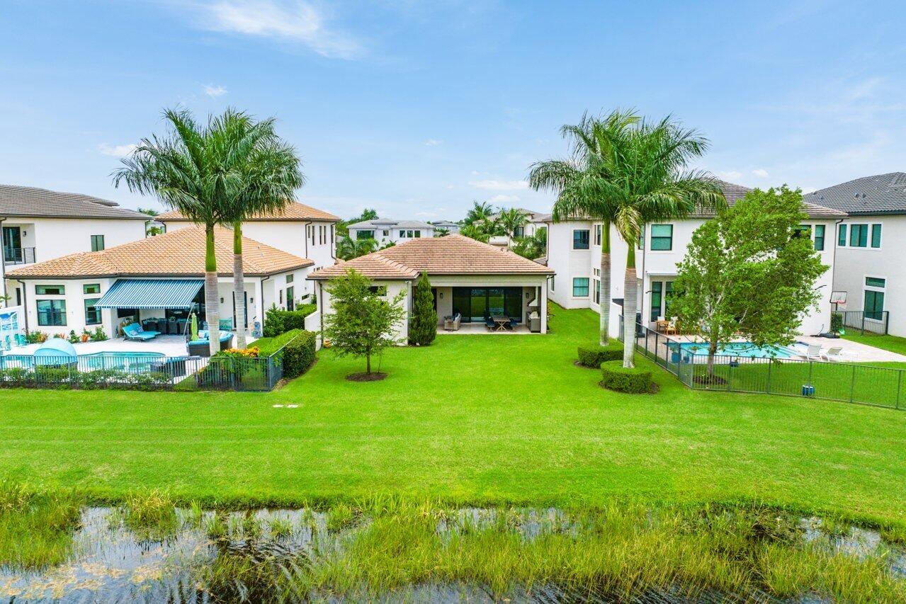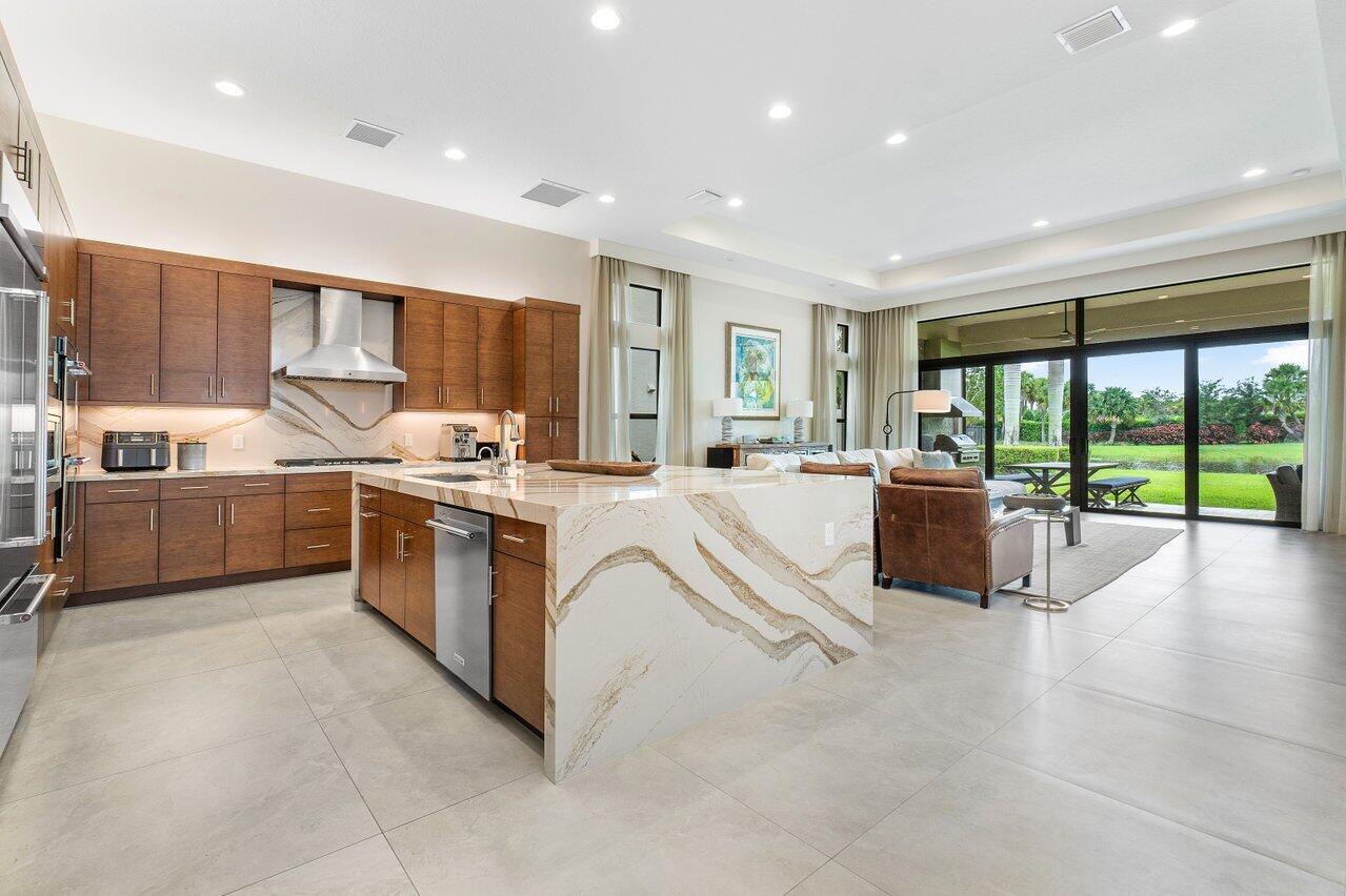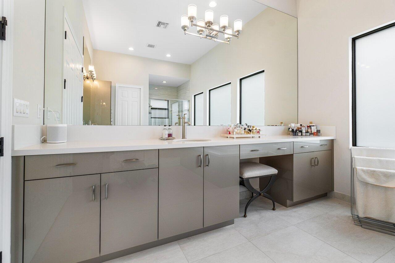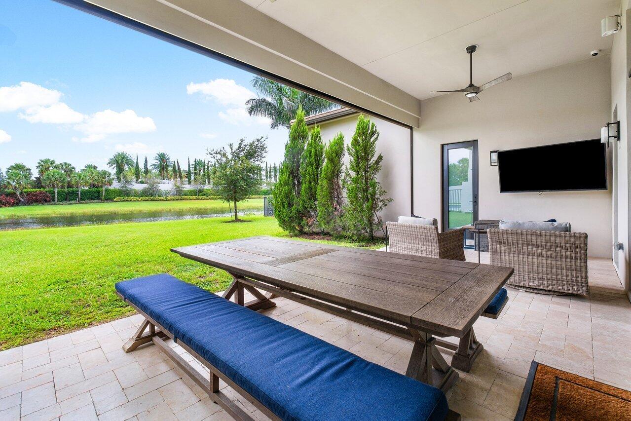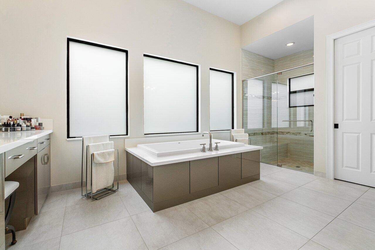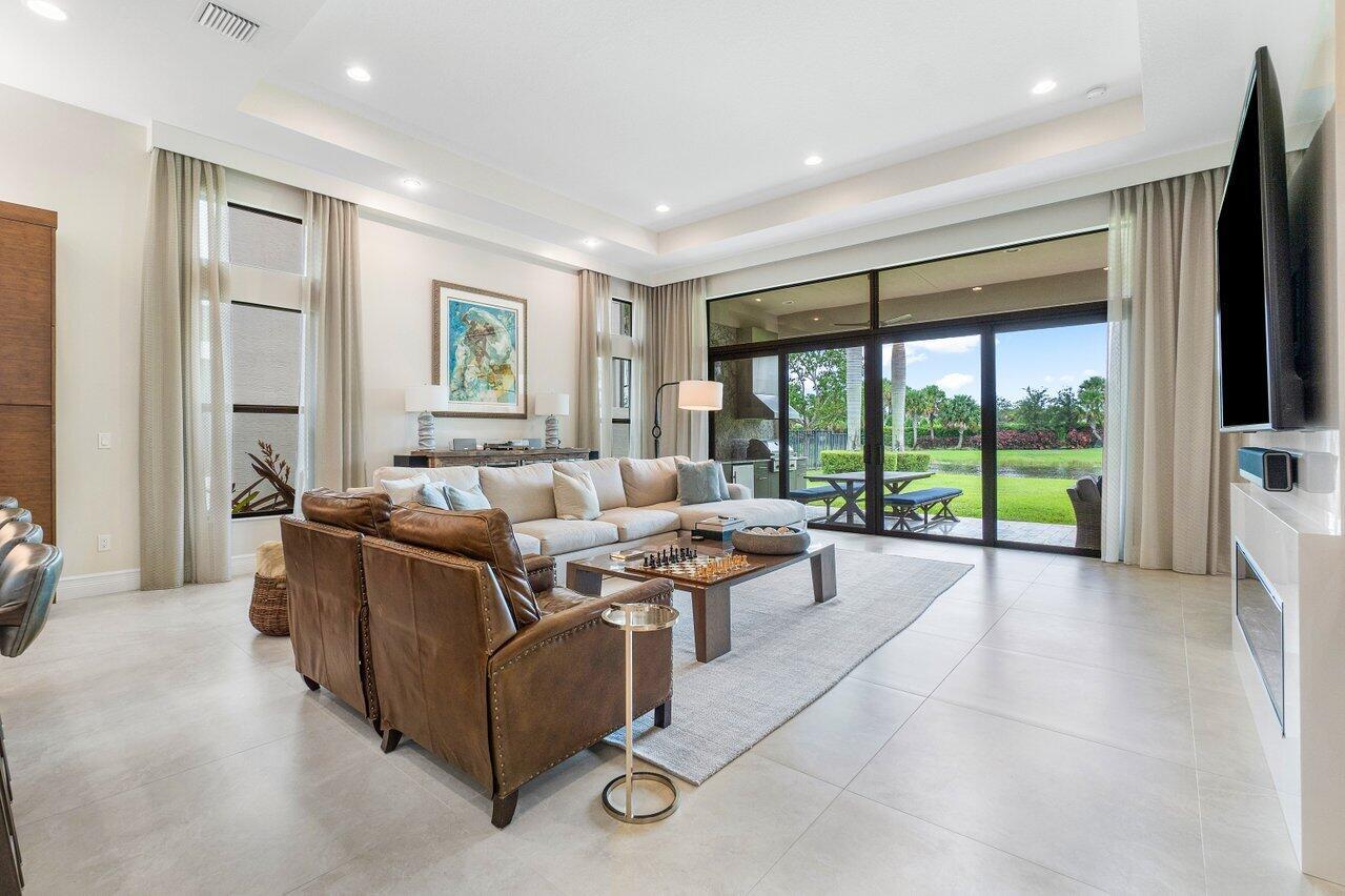 Modern elegance begins before you even enter the home! The contemporary exterior elevation sets the tone for this one-story Seville model in coveted Boca Bridges. Original owner spends half the year in Italy, this property feels brand new. Every inch of this home is upgraded including: gourmet kitchen with upgraded wood cabinetry, oversized waterfall quartz island, Generac generator, AC in garage, custom outdoor kitchen with vented hood, fridge and sink, motorized retractable outdoor screen, custom built-ins, moldings and electronic curtains/shades, full water filtration. This 3 bed (4th optional bedroom currently office) 3.5 bath home is lakefront with views of Italian cypress trees, no rear neighbors! Oversized lot, space for pool and extra land. Boca bridges offers top tier amenities!