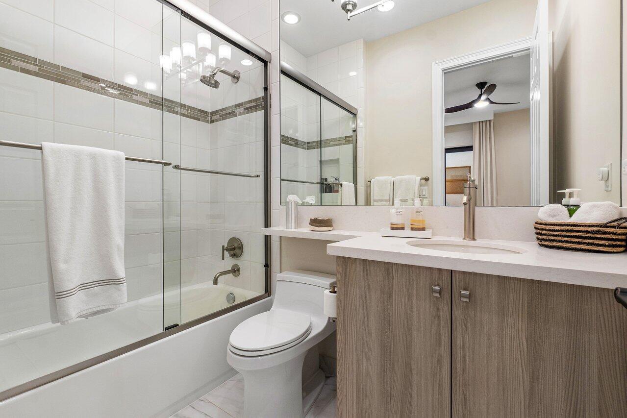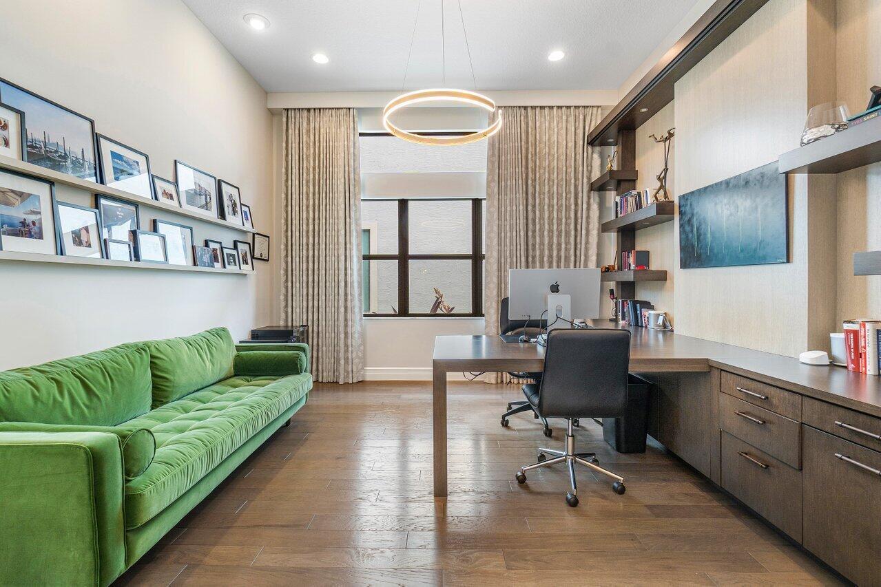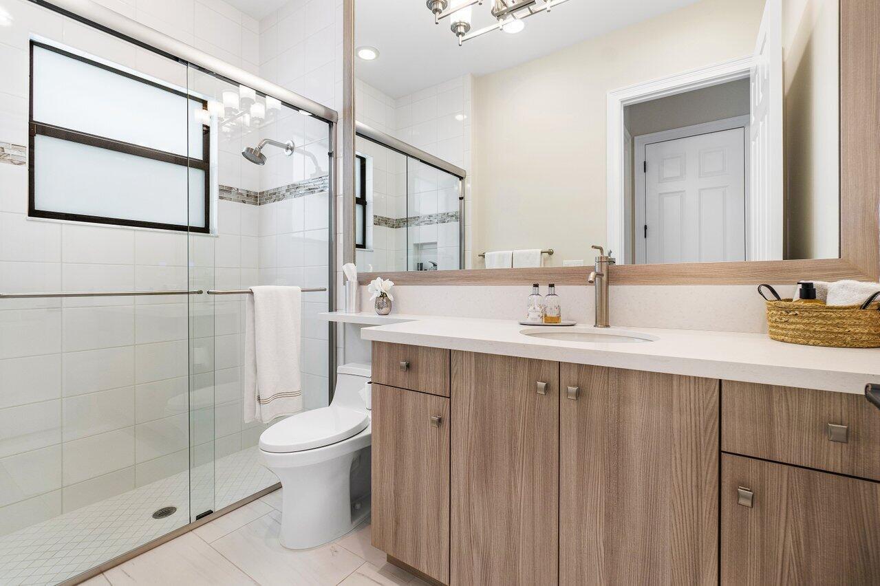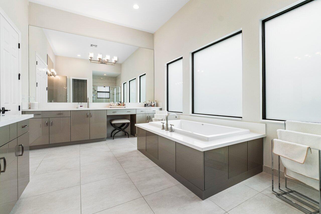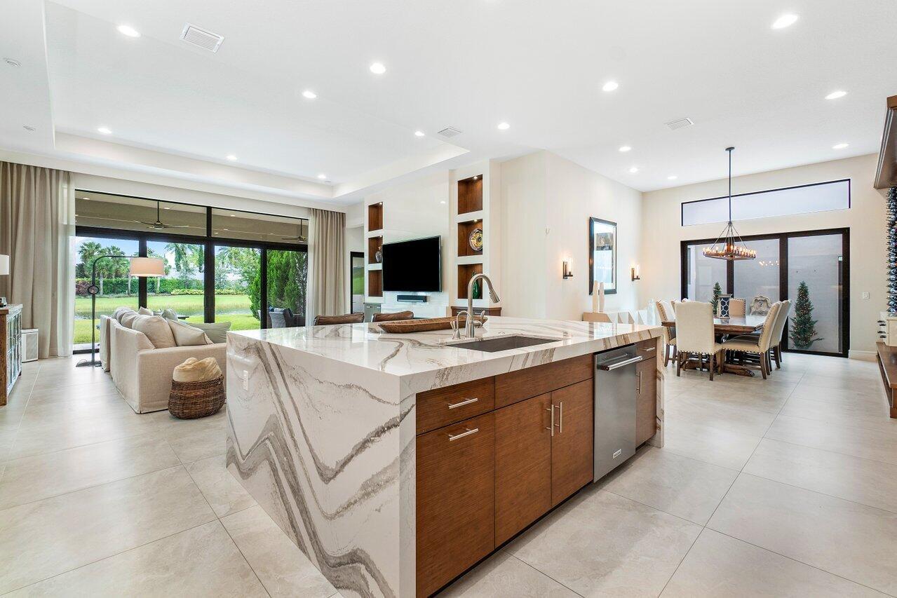 Modern elegance begins before you even enter the home! The contemporary exterior elevation sets the tone for this one-story Seville model in coveted Boca Bridges. Original owner spends half the year in Italy, this property feels brand new. Every inch of this home is upgraded including: gourmet kitchen with upgraded wood cabinetry, oversized waterfall quartz island, Generac generator, AC in garage, custom outdoor kitchen with vented hood, fridge and sink, motorized retractable outdoor screen, custom built-ins, moldings and electronic curtains/shades, full water filtration. This 3 bed (4th optional bedroom currently office) 3.5 bath home is lakefront with views of Italian cypress trees, no rear neighbors! Oversized lot, space for pool and extra land. Boca bridges offers top tier amenities!