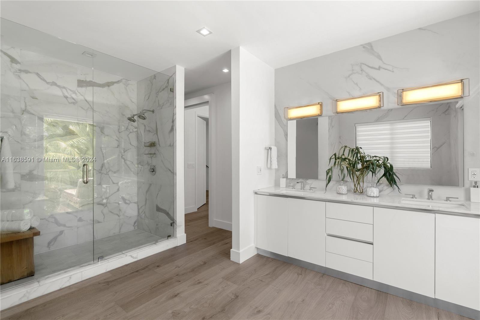 Welcome to your dream home in Miami Beach, where modern luxury meets serene privacy. This recently built modern masterpiece boasts an impressive 3,867 SF of living space, designed to maximize natural light and create an inviting atmosphere. With a perfect open floor plan, this home is an entertainer's paradise, seamlessly blending indoor and outdoor living, highlighted by a large pool, complete outdoor kitchen, and dining area. With 3 spacious bedrooms upstairs and 2 downstairs, this home is designed for both comfort and elegance. The primary suite is a retreat unto itself, offering a luxurious sitting area, a spa-like bathroom, and an expansive walk-in closet. Situated on a beautifully landscaped and secluded st, this gated property combines sophisticated design with unparalleled privacy.