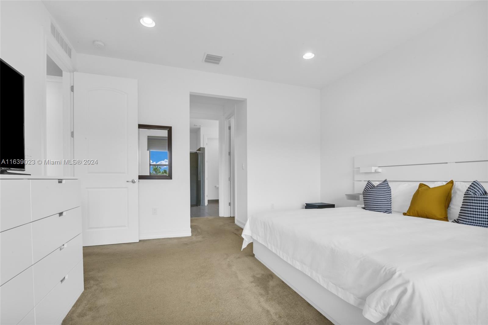 Stunning Townhouse with lake and golf course view. This luxurious and modern property is located in the prestigious gated community of Enclave at Boca Dunes. The home features an open concept with integrated dining and living areas, with high ceilings. 3 bedrooms, plus bonus room and 2.5 bathrooms. Gorgeous gourmet kitchen, walk-in closets in every bedroom, main room with his and hers walk-in closets. Hurricane impact windows. LOW HOA. Two car garage, Oversized Driveway, A+ Schools. No weight restrictions for 2 pets. Great amenities included in the clubhouse. Pool, Spa, Fitness center, Playground, walking paths.