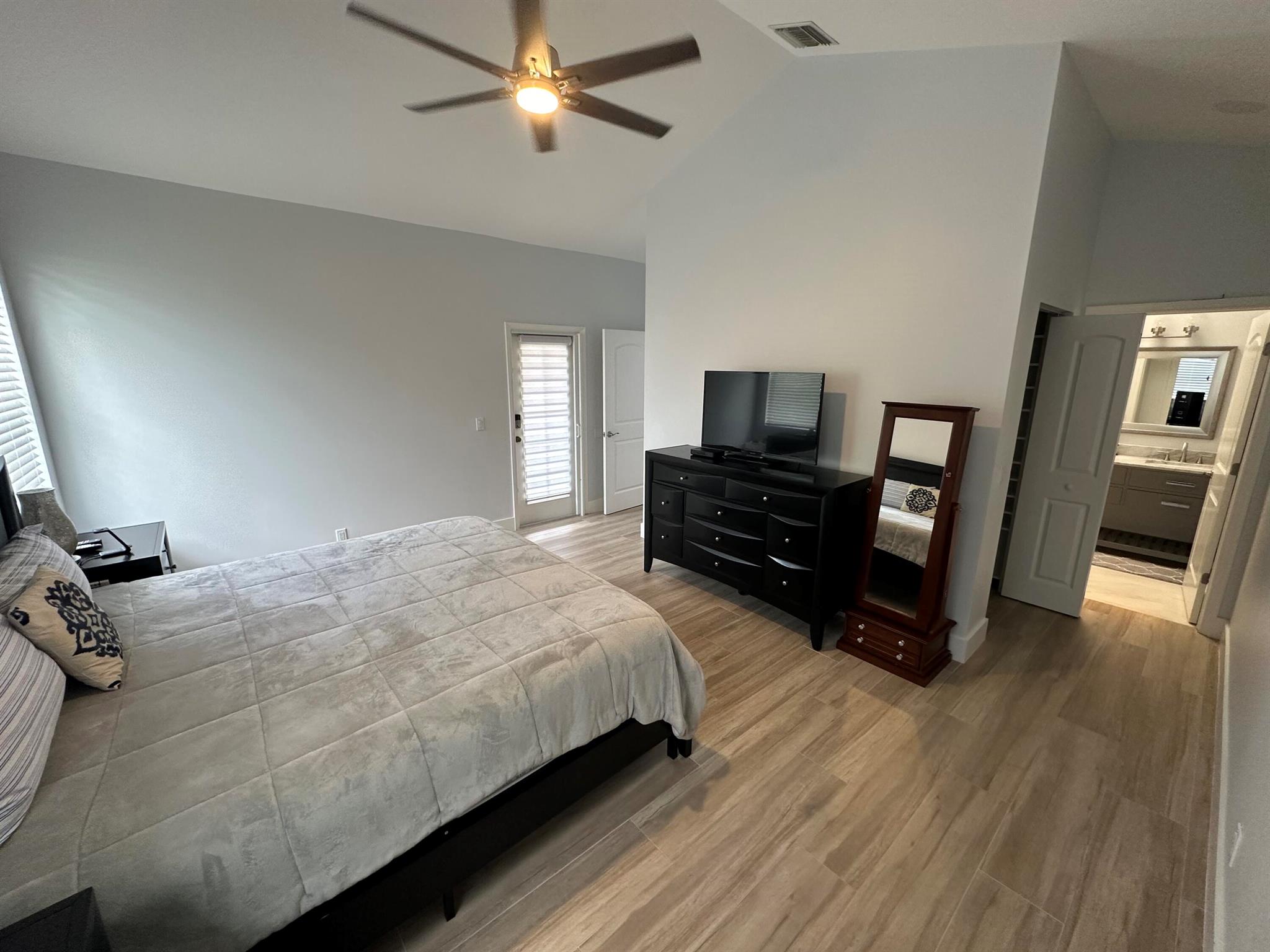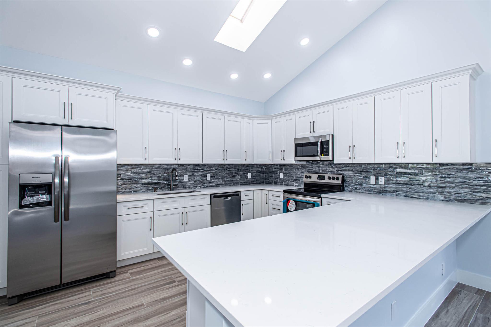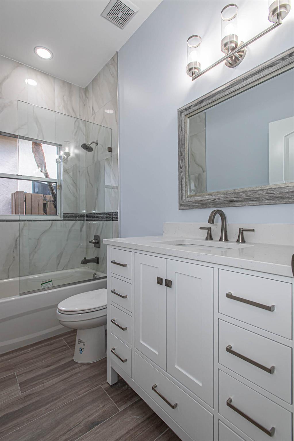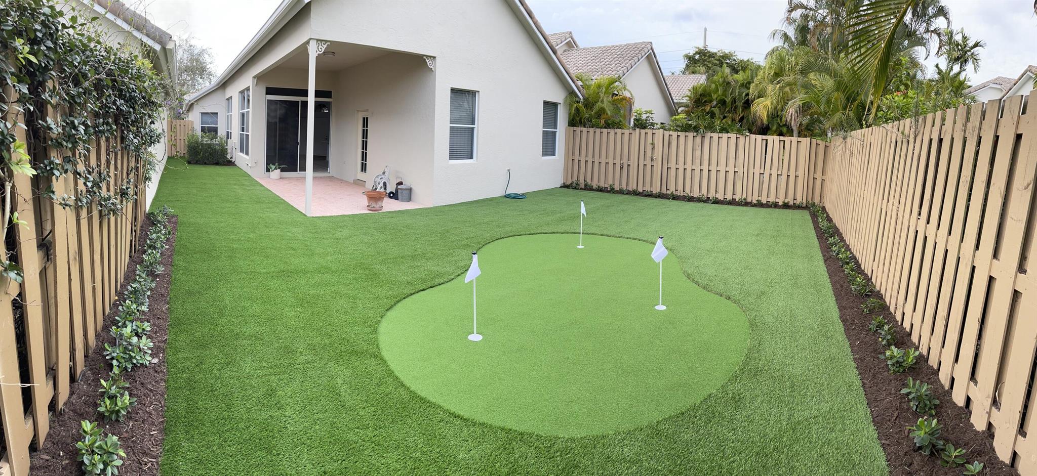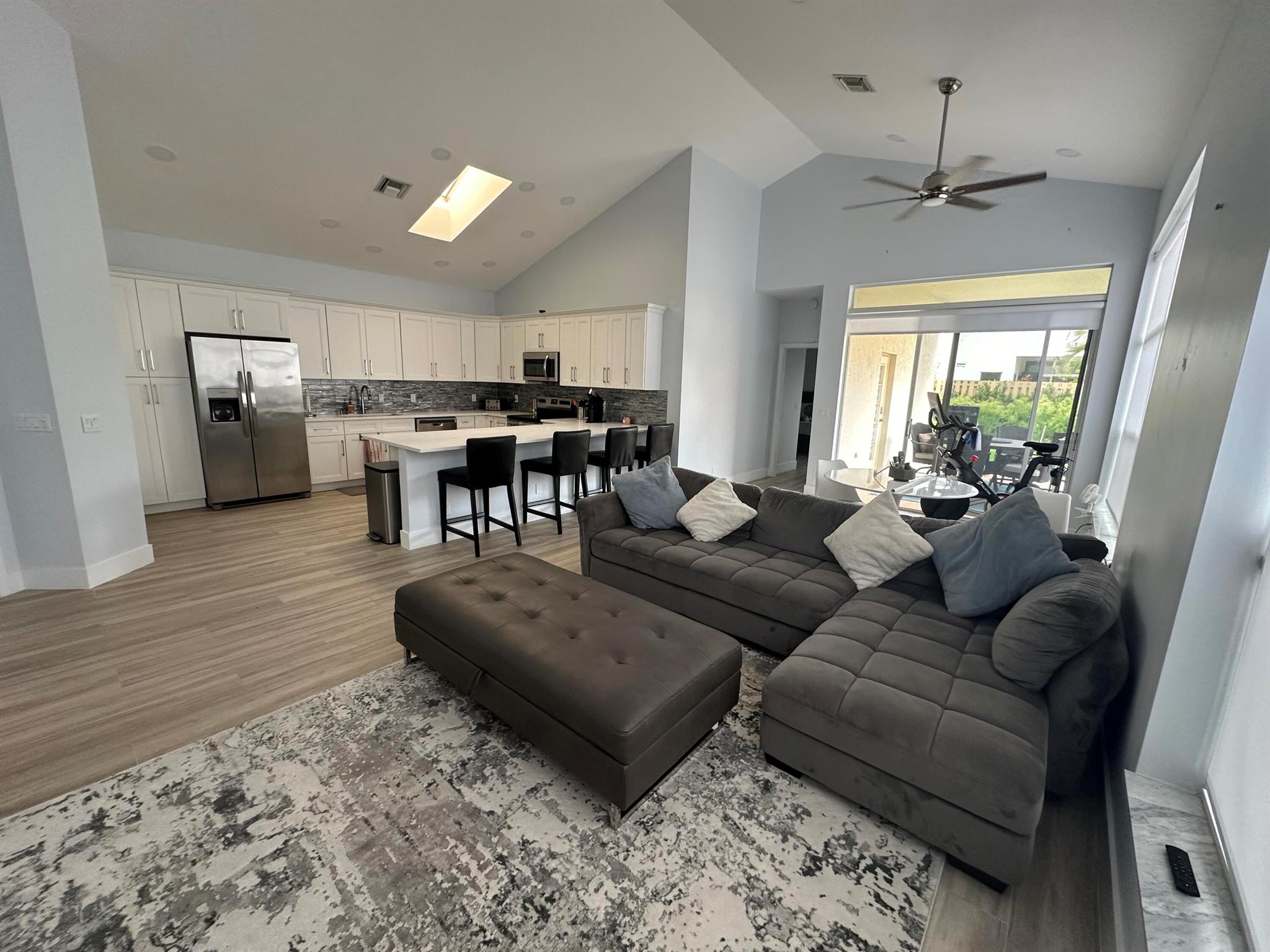 Located in Broken Sound Club ; minimum $110,000 non refundable. Perfect and pristine as a year-round or winter retreat, this stunningly chic newly renovated three-bedroom, two-bathroom home has been thoughtfully designed to showcase a modern aesthetic, neutral color palette, high ceilings, and natural light you'll enjoy from first light in the morning through sunset. Every detail of this single-family home has been carefully considered and executed, ensuring a truly luxurious living experience. The open concept chef-inspired kitchen includes stainless steel appliances, a magnificent bespoke backsplash, seating at the counter for four, and seamless integration into the spacious living and dining room areas. Additional highlights include impressive, spa-like baths and split bedrooms