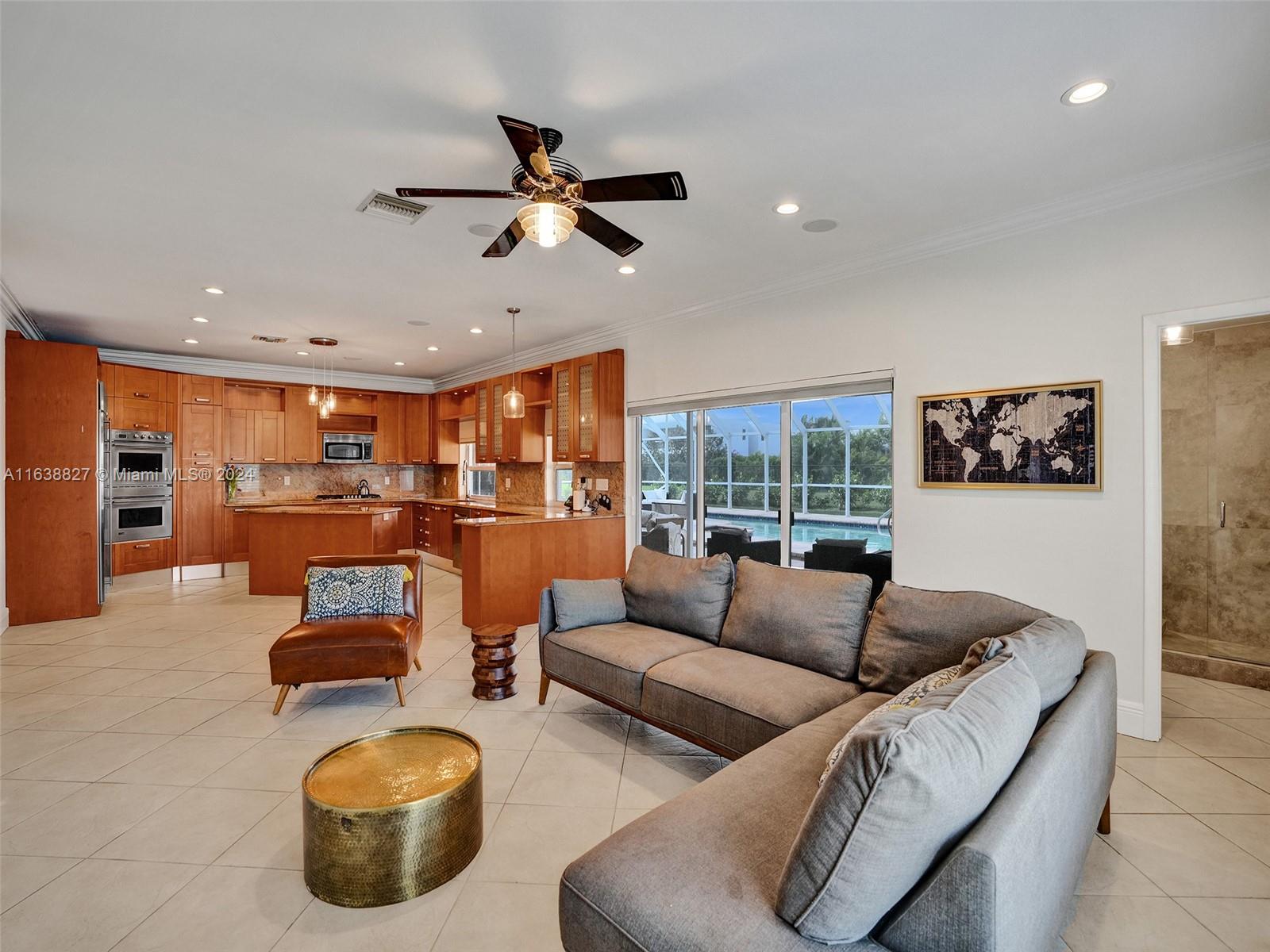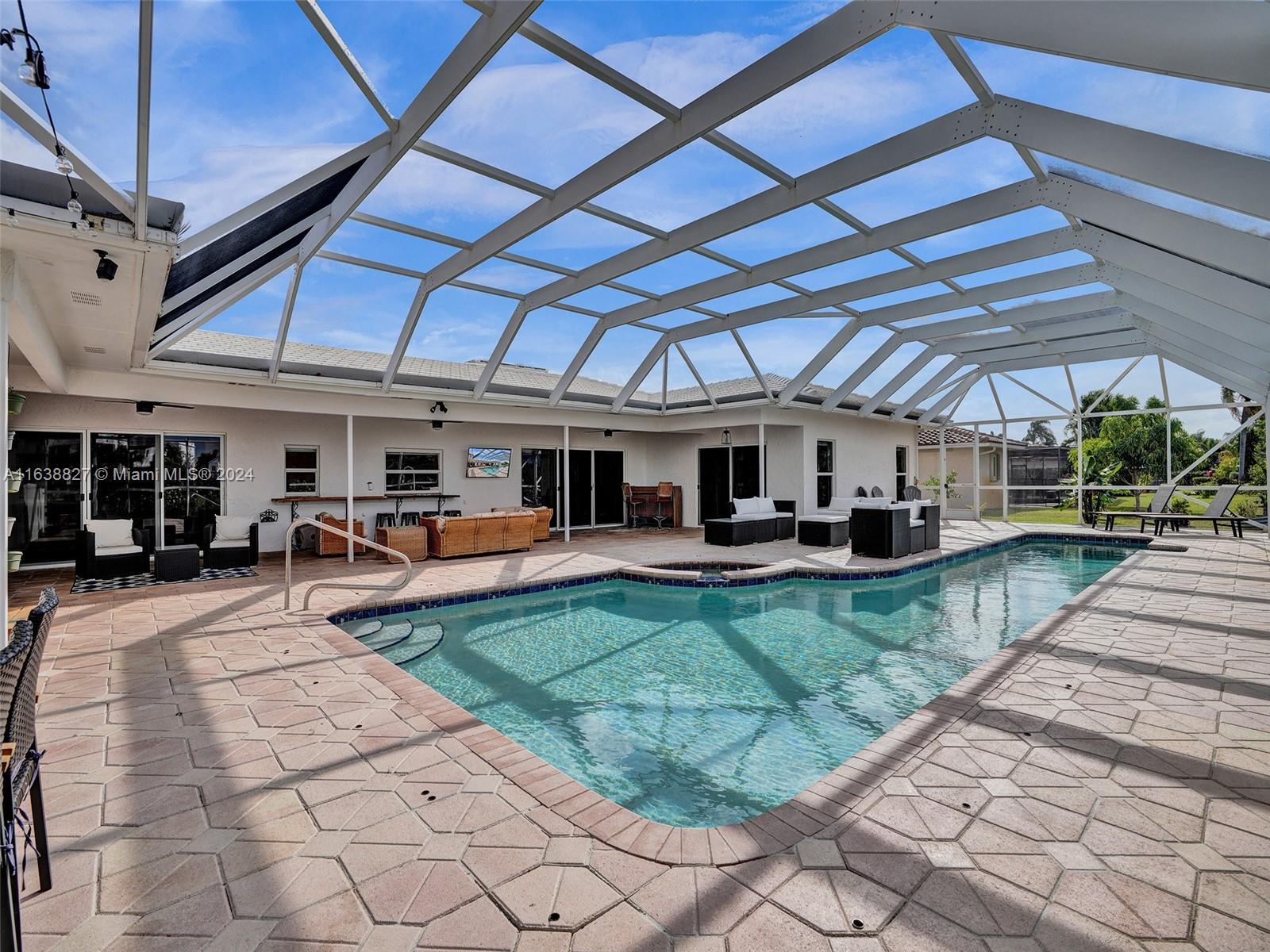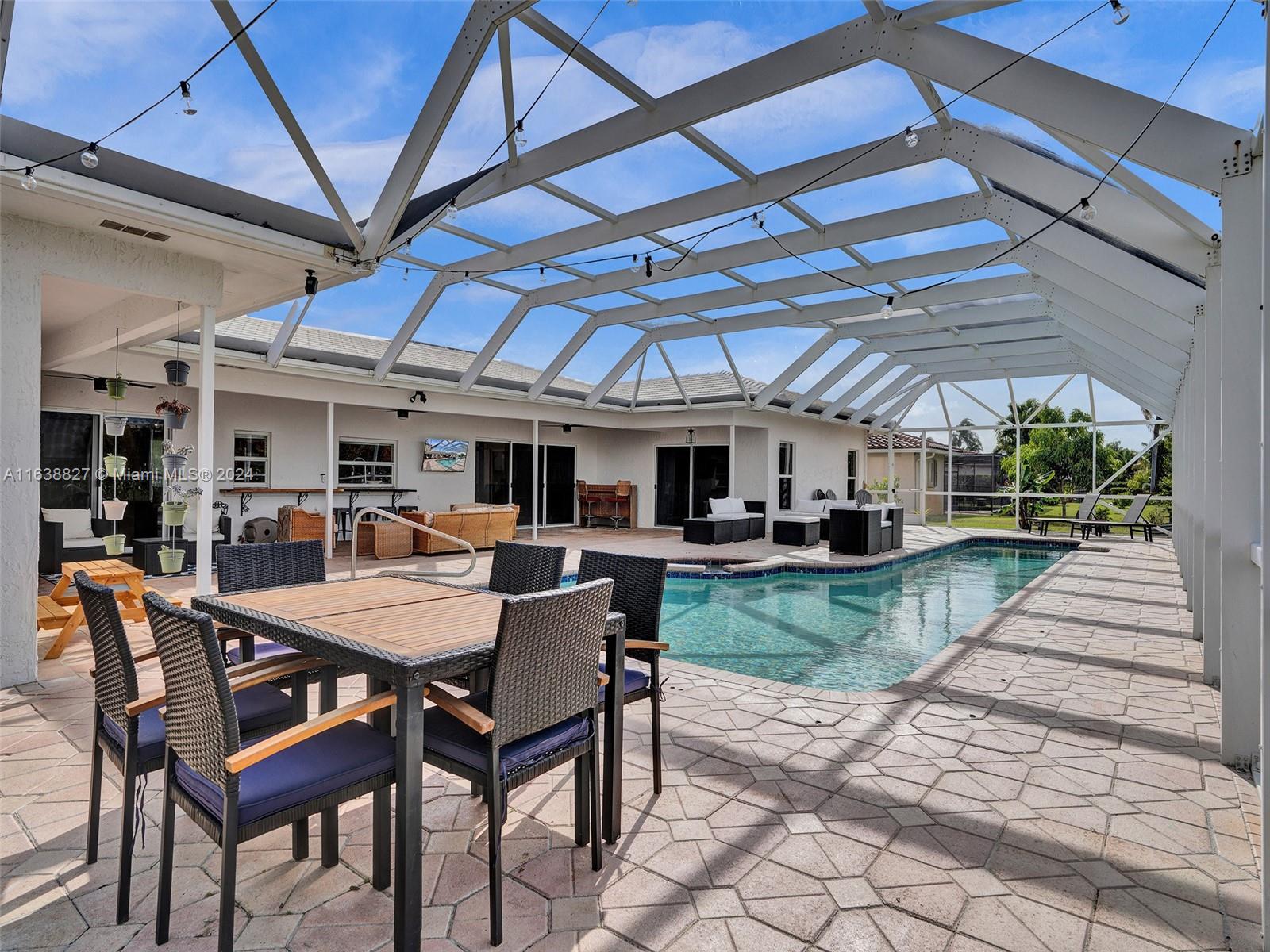 Boasting a vast living space, this 4/4 pool home sits on a corner cul de sac in desirable Weston. Oversized lot and spacious living space for ideal Florida living. Featuring a sunlit atrium this home offers multiple living and entertaining spaces in an inviting layout. Including an office/den that can be converted into a 5th bedroom. Large bedrooms with primary tucked away. Oversized eat in kitchen with a gas stove, double oven, stainless steel appliances, new wine cooler, all overlooking your outdoor entertainment area. Enjoy your screened in pool with a removable safety net offering year round entertainment. Two car garage with extra storage, an outdoor storage/workshop attached. GE generator. Two brand new AC units with nest learning thermostats installed May 2024.