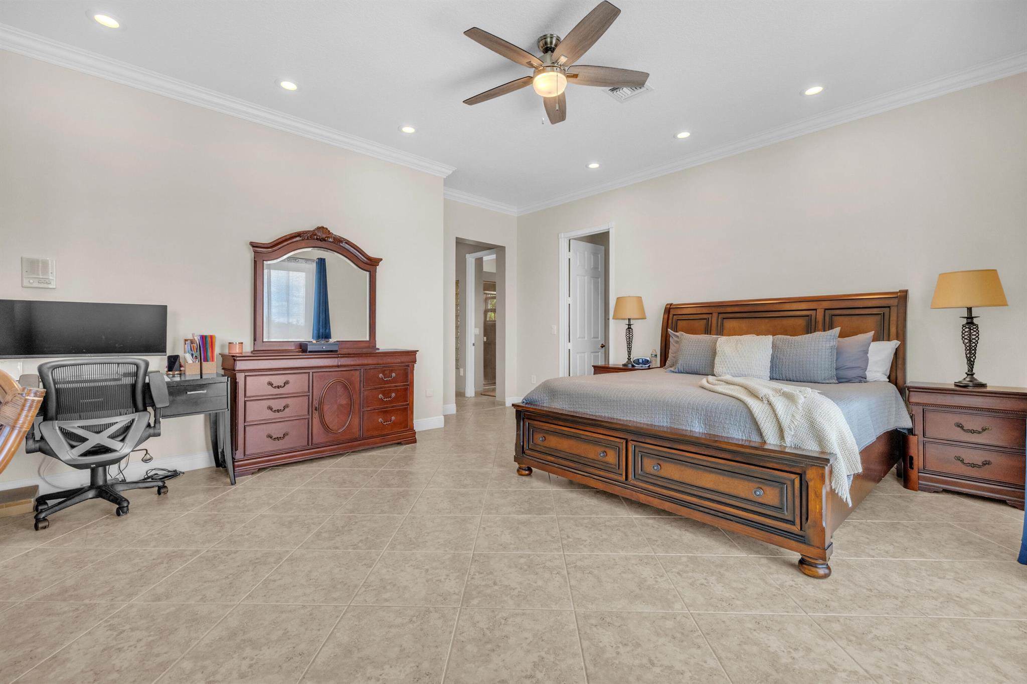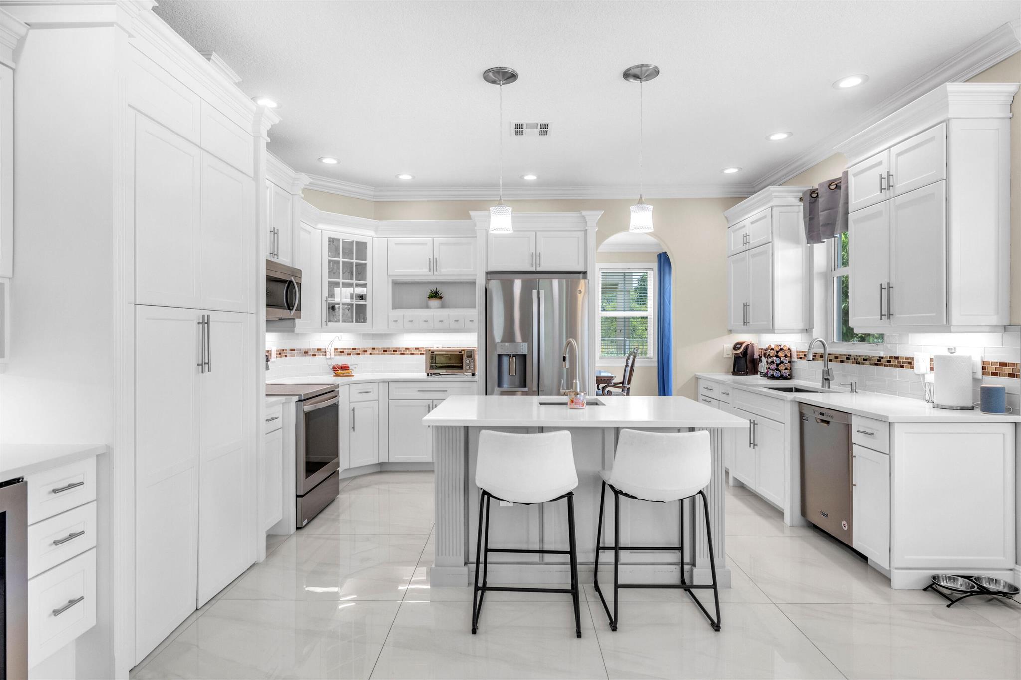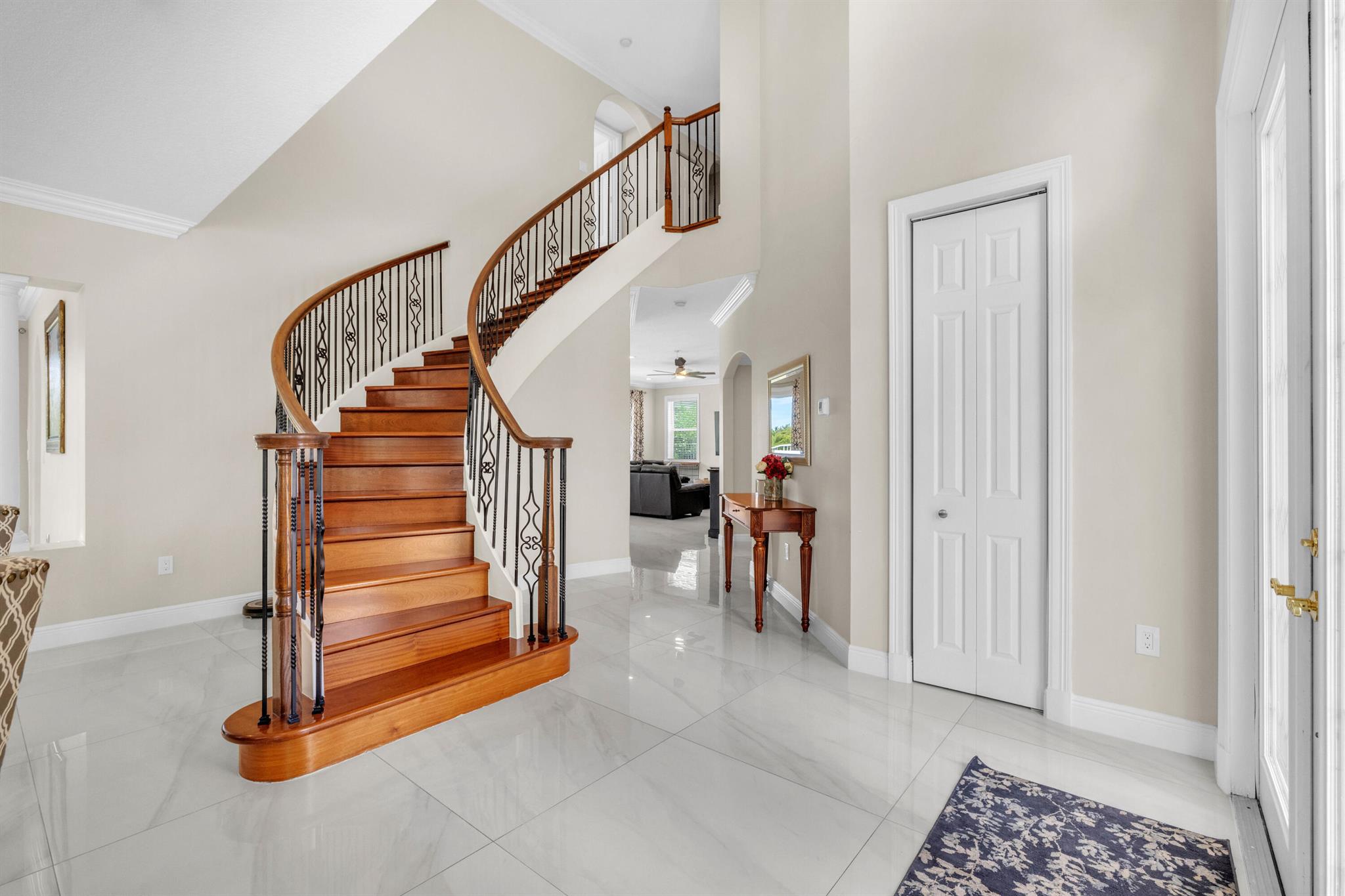 Welcome to this beautifully remodeled 6-bedroom, 4-bathroom home in Wellington's prestigious Olympia community. The open floor plan features stunning new tile flooring and a gorgeous staircase. The modern kitchen includes new appliances, elegant finishes, and a spacious walk-in pantry. The master suite offers a private balcony overlooking a fenced-in yard with a pool and serene garden view, ensuring privacy with no homes behind due to a preserve. The home also boasts a three-car garage. Rest easy during storm season with all new impact windows. Enjoy resort-style amenities like pools, a gorgeous clubhouse, and more in this family-friendly community with top-rated schools. Offering home warranty as well. This is a MUST SEE!
