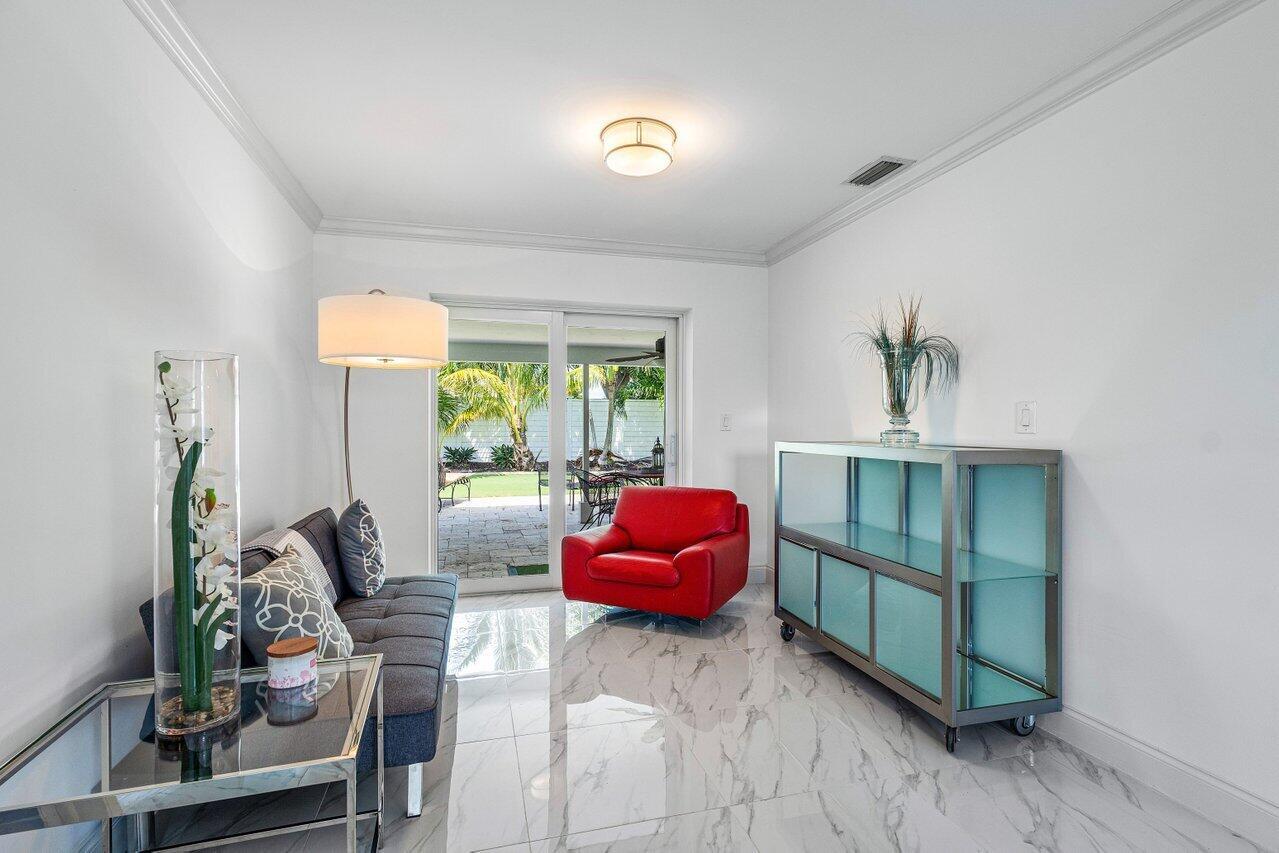Why choose between the benefits of Boca Raton and Delray Beach when you can enjoy both from the comfort of one of South Florida's best hidden-gem neighborhoods? Located in Northeast Boca Raton just south of the city's border with Delray Beach, this Boca Harbour residence offers the incredible opportunity to own a property surrounded by 7-figure homes in a prosperous neighborhood. Comprising 3 bedrooms and 2 bathrooms across 1,835 square feet, the turnkey home at 7001 NE 7th Avenue is newly renovated and perfect for enjoying the best of southern Palm Beach County. After being greeted by a meticulously landscaped front yard and making one's way inside through the home's covered entryway, visitors are greeted by a spacious family room that's bathed in natural light from the front of