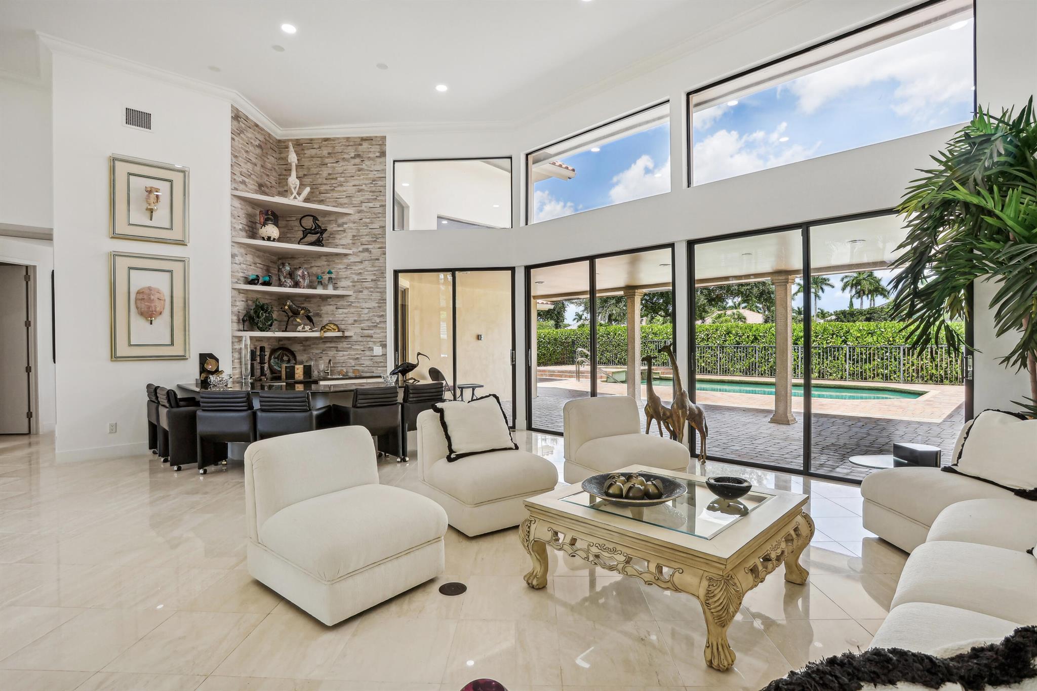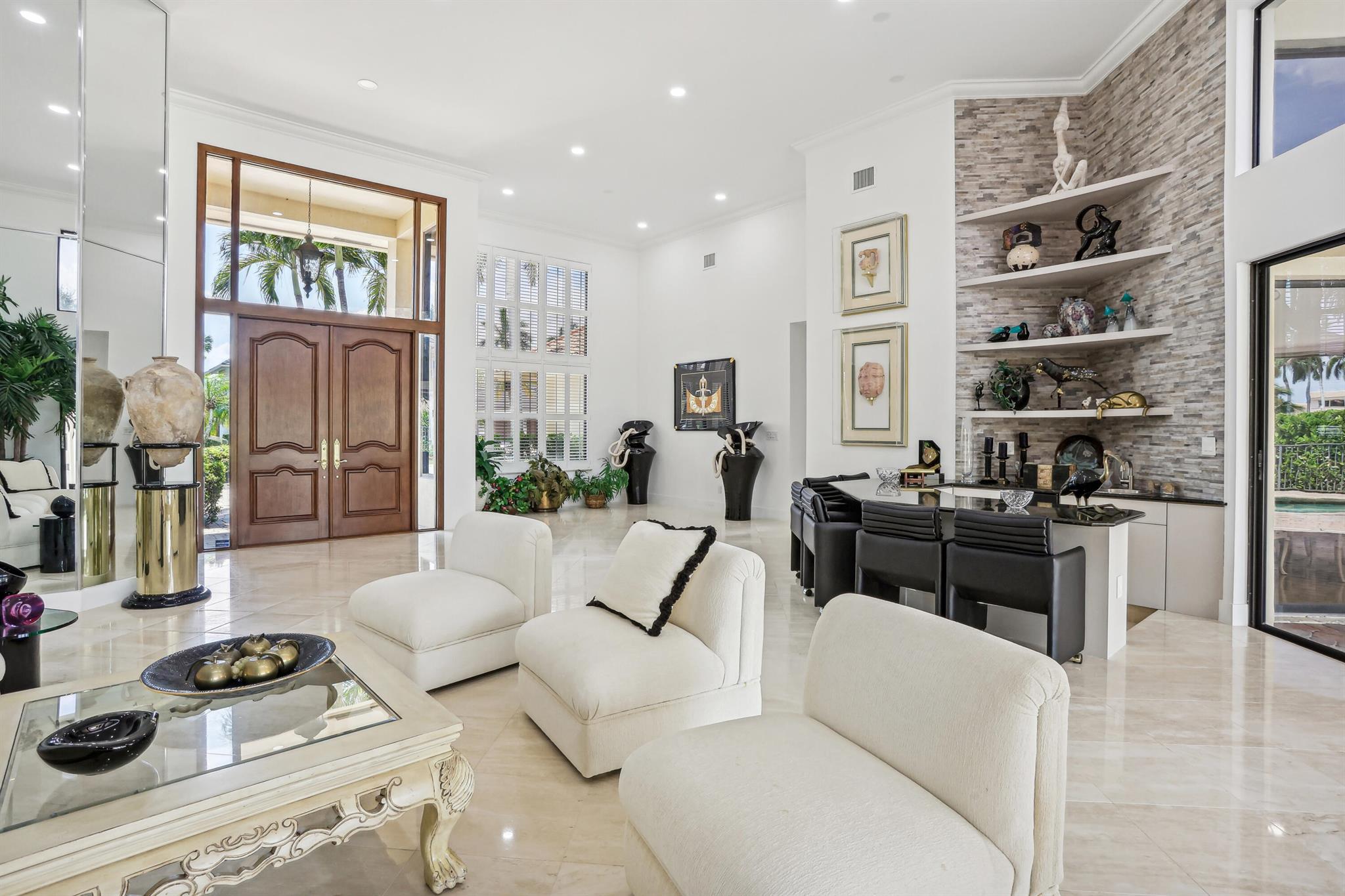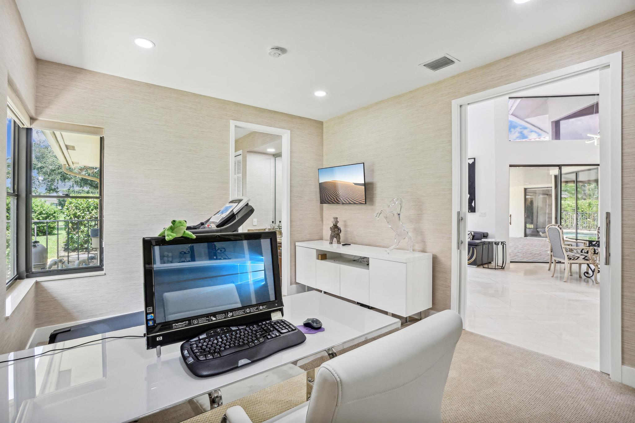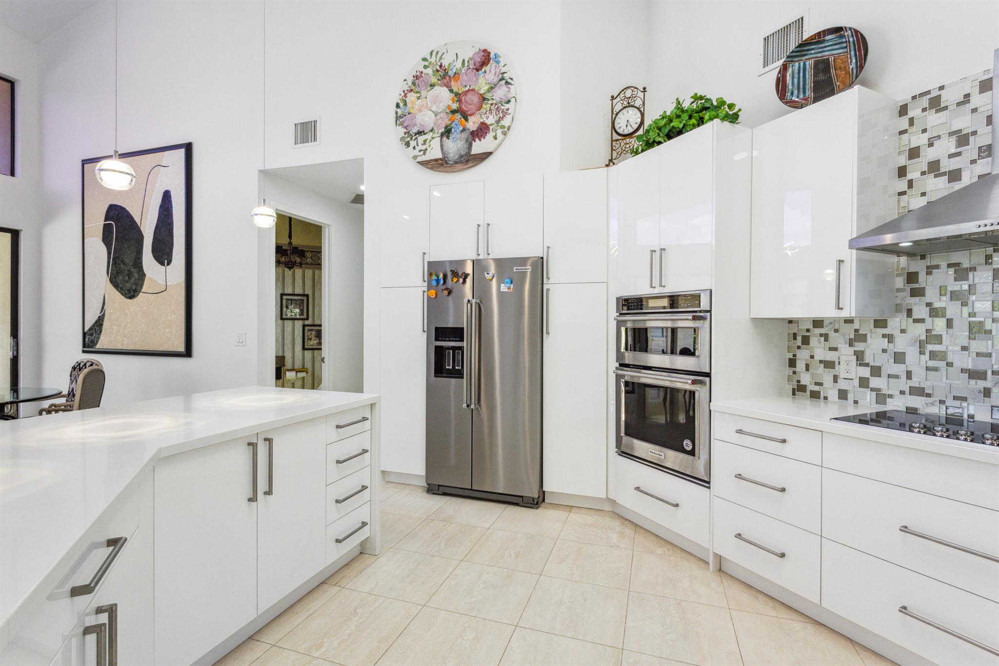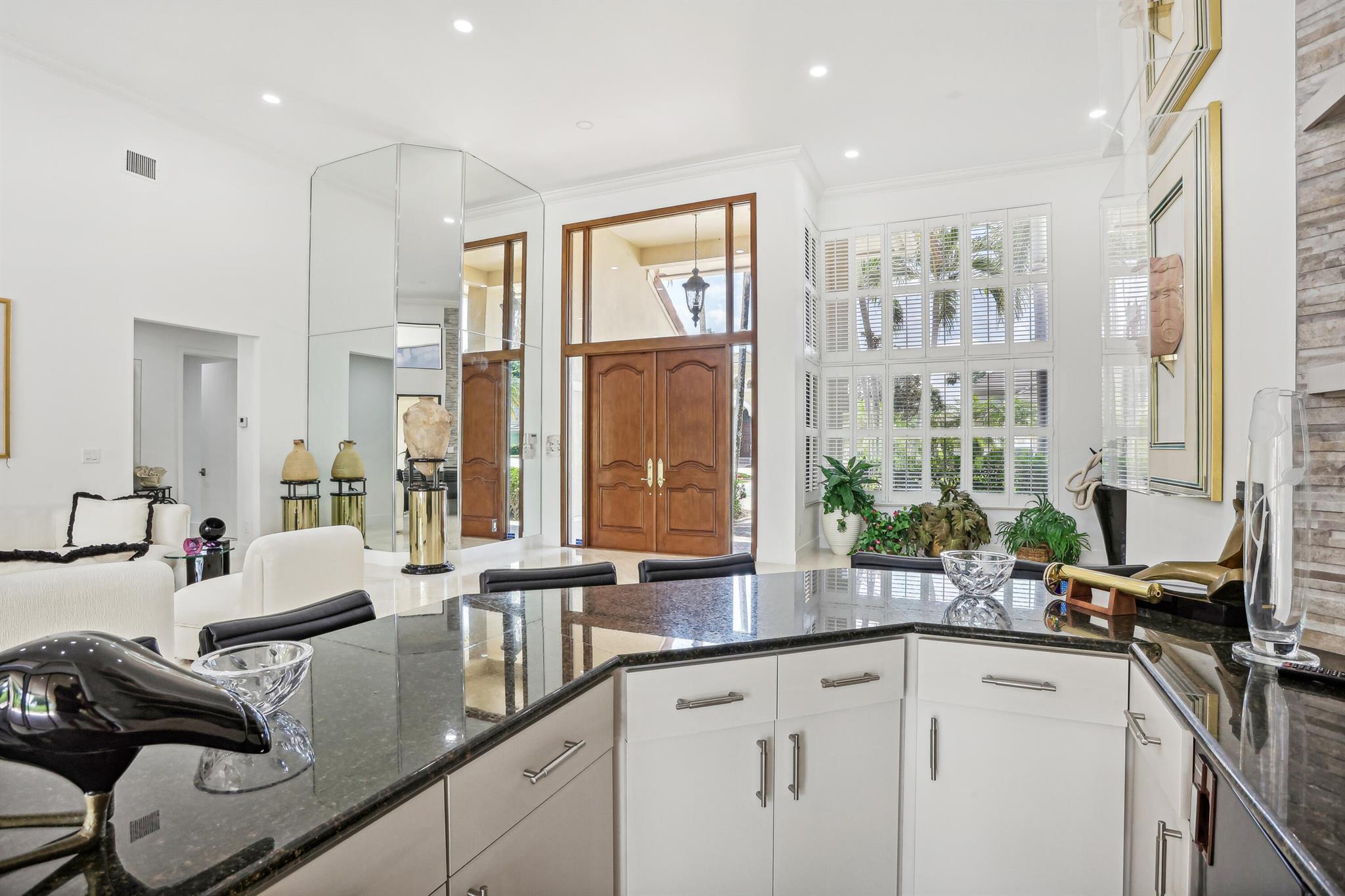 This one-story gem in St. Andrews Country Club offers a unique opportunity to enjoy serene living in a prime location, far from road noises. The home is beautifully and partially renovated, featuring a modern kitchen, a luxurious primary bathroom with separate sinks and commodes, and a stylish wet bar in the living room for entertaining. With no steps to worry about, accessibility is a breeze. The covered patio provides a perfect spot to relax and take in the stunning views of the pool, spa, golf course, and lake. Spanning approximately 3,400 sq ft, with high ceilings and 8ft doors both interior and exterior, the residence includes 3 bedrooms, 3.5 bathrooms, an office, large utility room , a 2-car garage, and a golf cart.